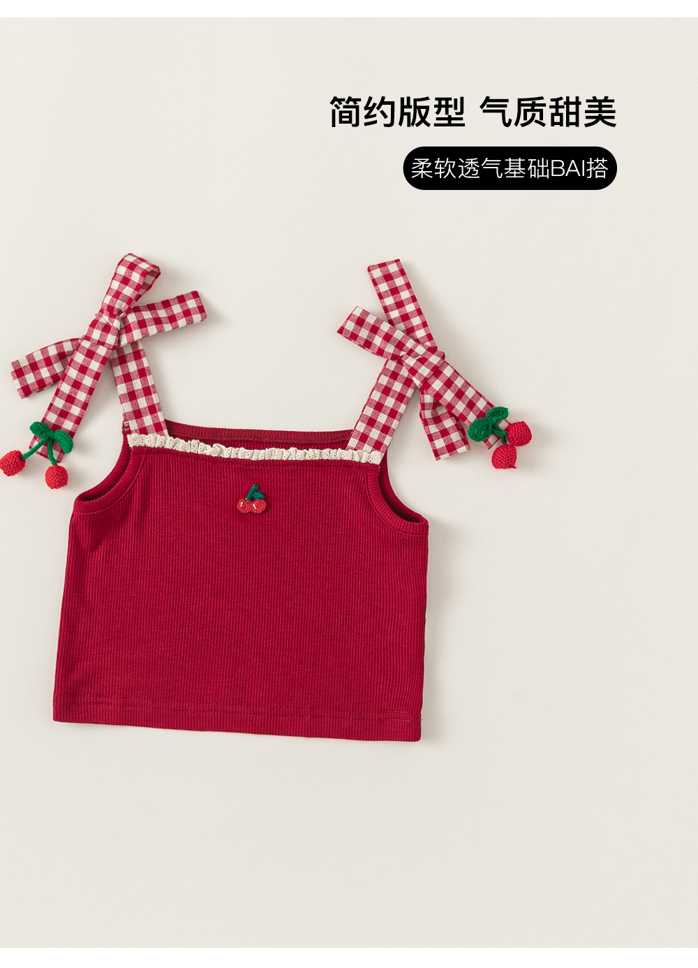 유바오 아동복 여름 소녀 카미솔 달콤한 어린이 조끼 아동복 소매 탑 외부 착용 유행 XY24006