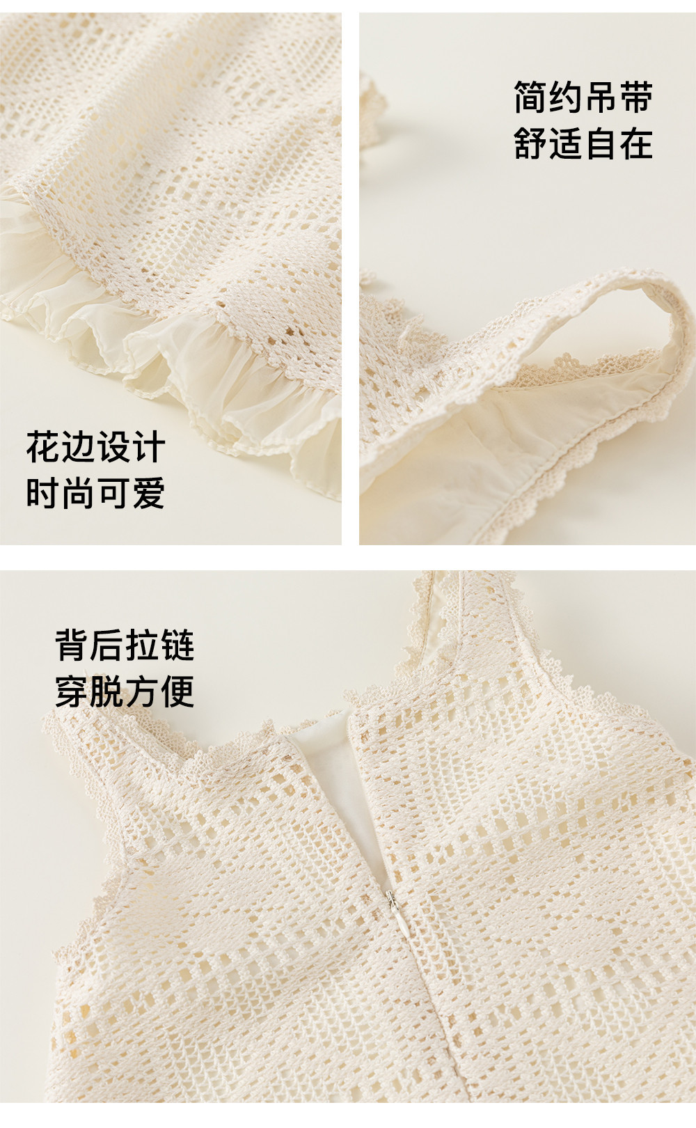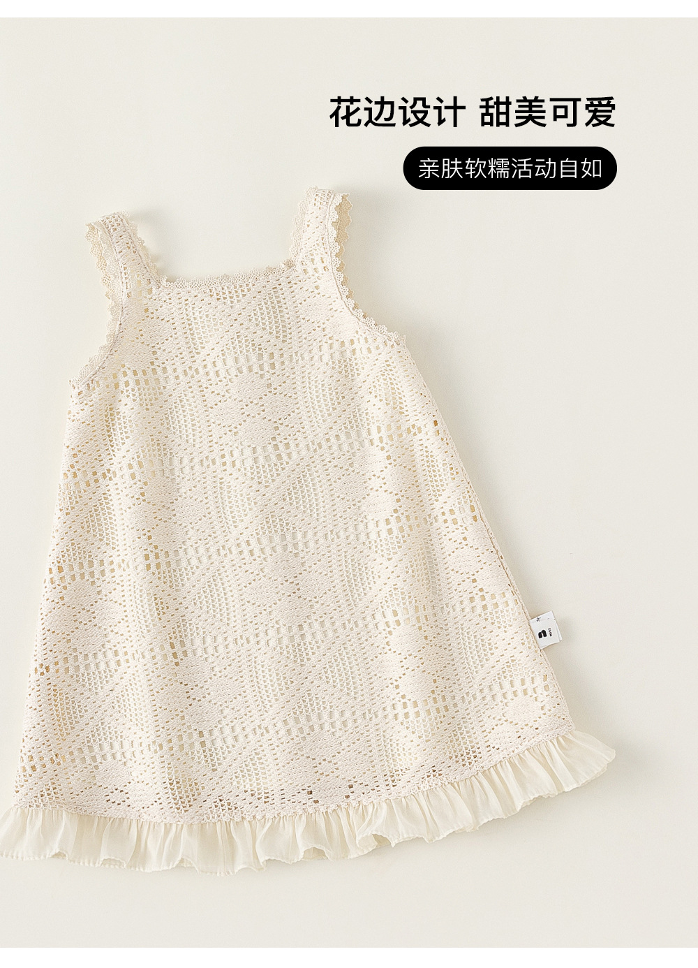 유바오 아동복, 숲풍 아동 원피스, 여름 휴가 스타일, 속이 비치는 가벼운 원피스, 여아 레이스 멜빵 원피스