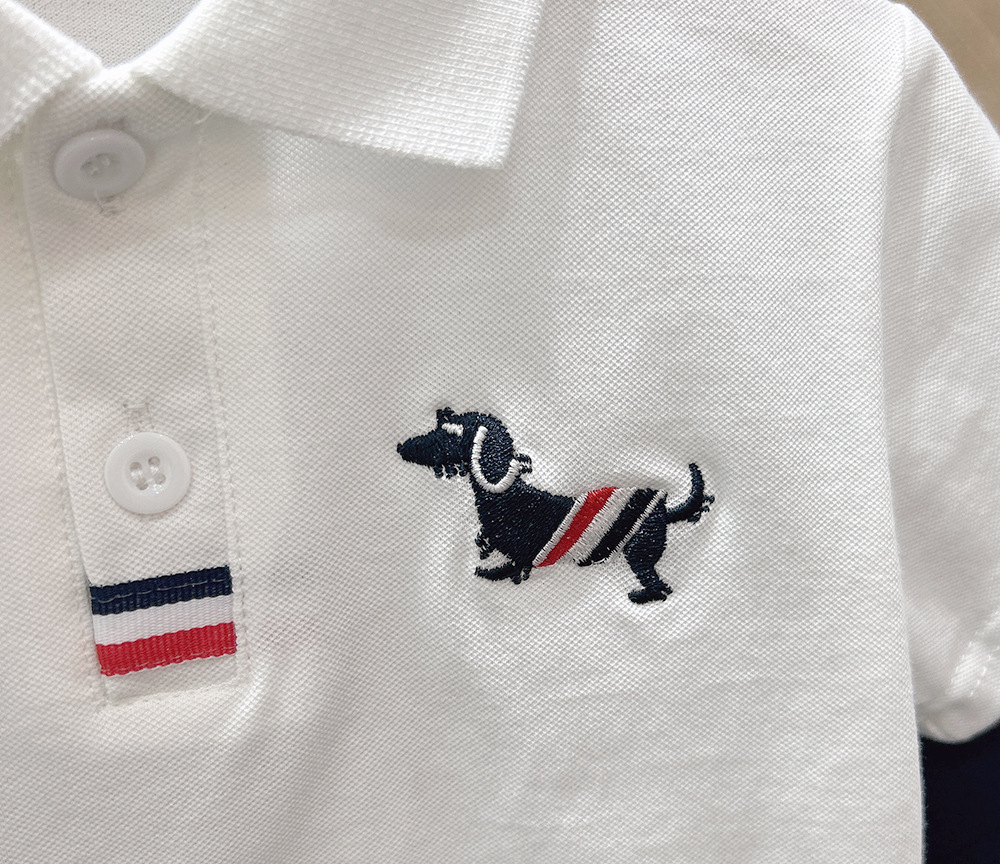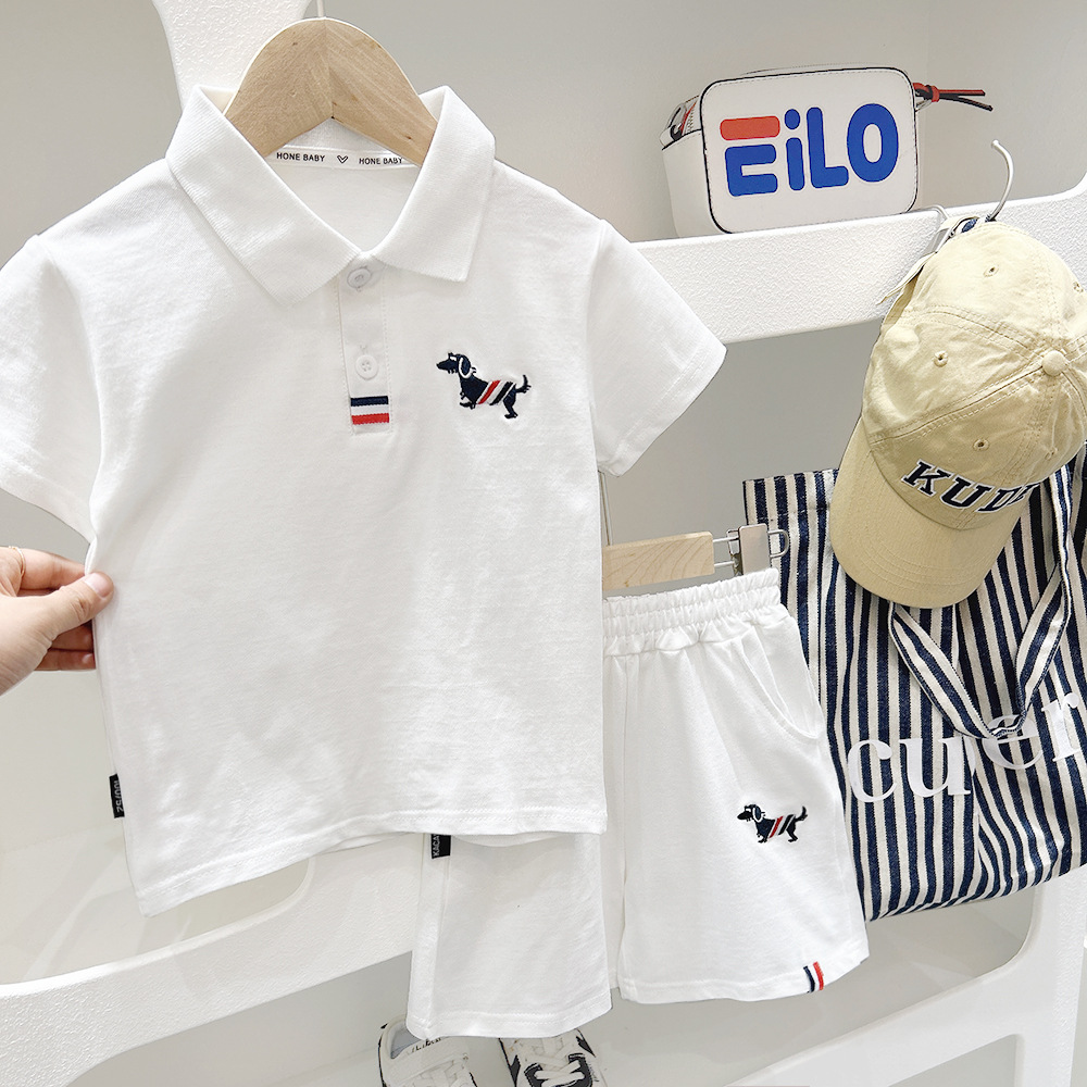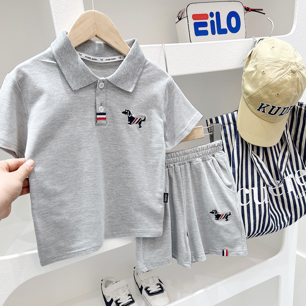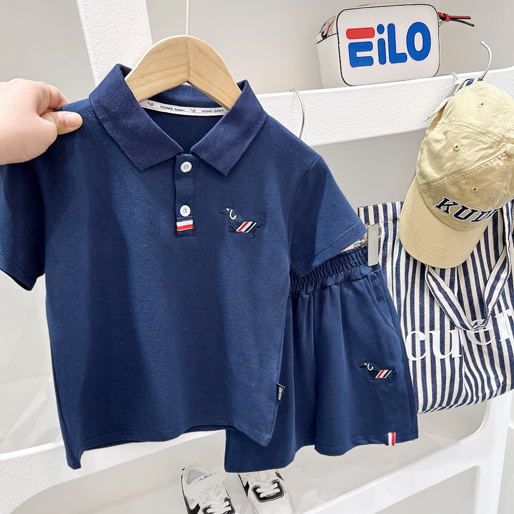 소년 여름 정장 2025 새로운 중대형 어린이 반바지 어린이 자수 스포츠 반팔 폴로 캐주얼 투피스 세트