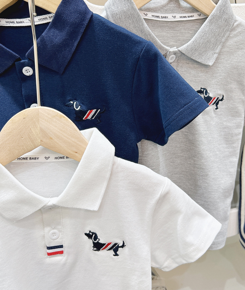 소년 여름 정장 2025 새로운 중대형 어린이 반바지 어린이 자수 스포츠 반팔 폴로 캐주얼 투피스 세트스토어 가기