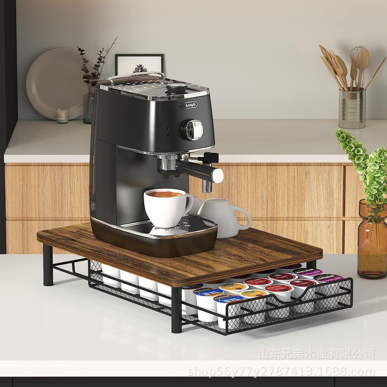 수납 선반 바 카페 머신 캡슐 커피 보관 선반 가정용 데스크탑 정리 목재 보관함스토어 가기