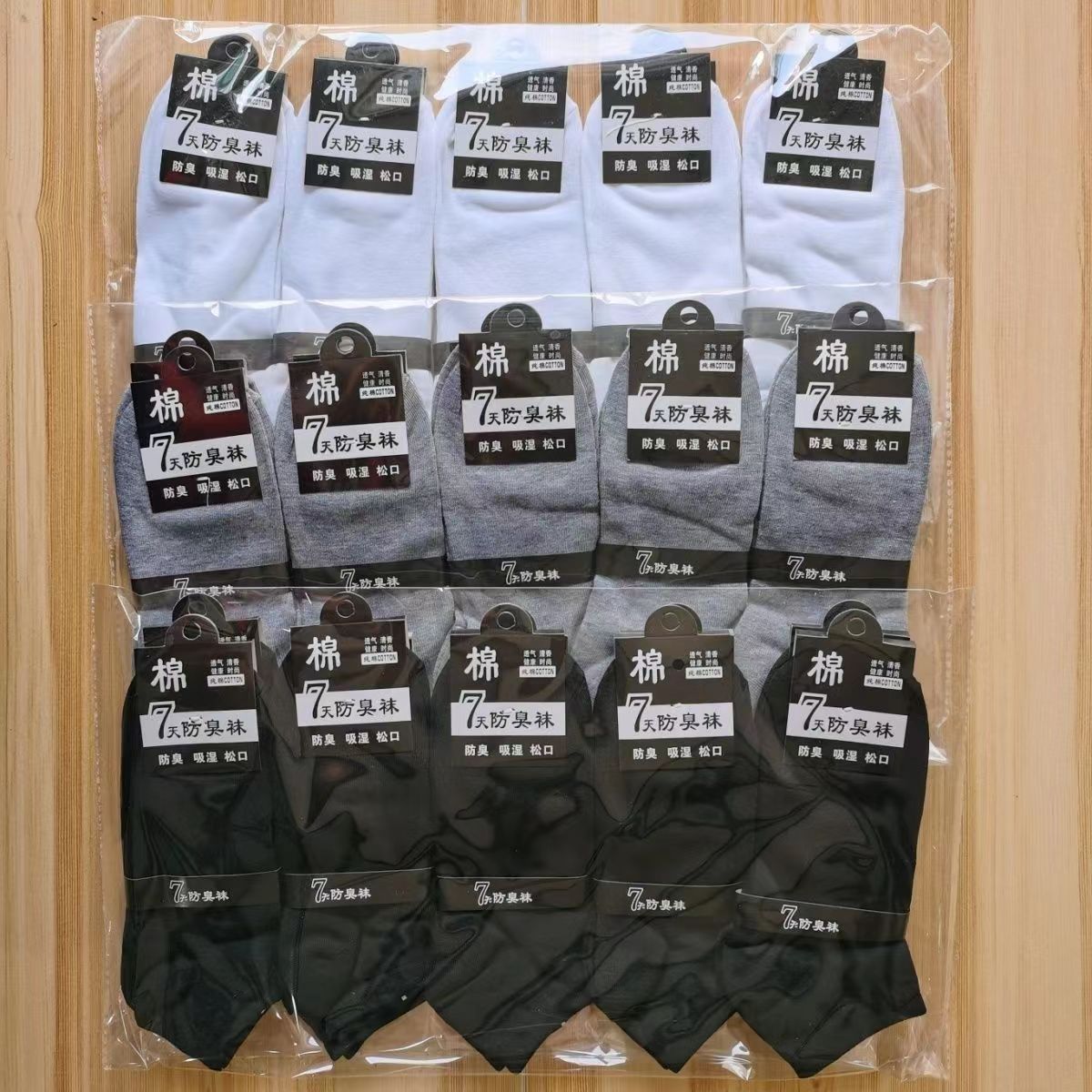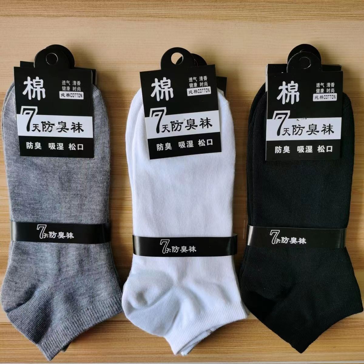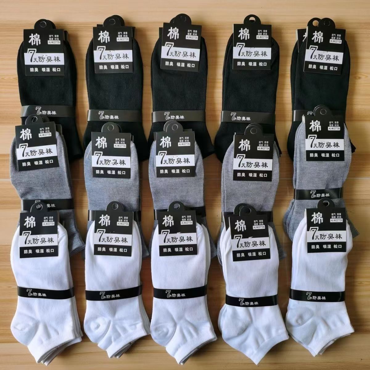 양말 도매, 남성용 7일 냄새 방지 로우 웨이스트 양말, 검정, 흰색, 회색 짧은 양말, 비즈니스 면 땀 흡수 탄성 양말