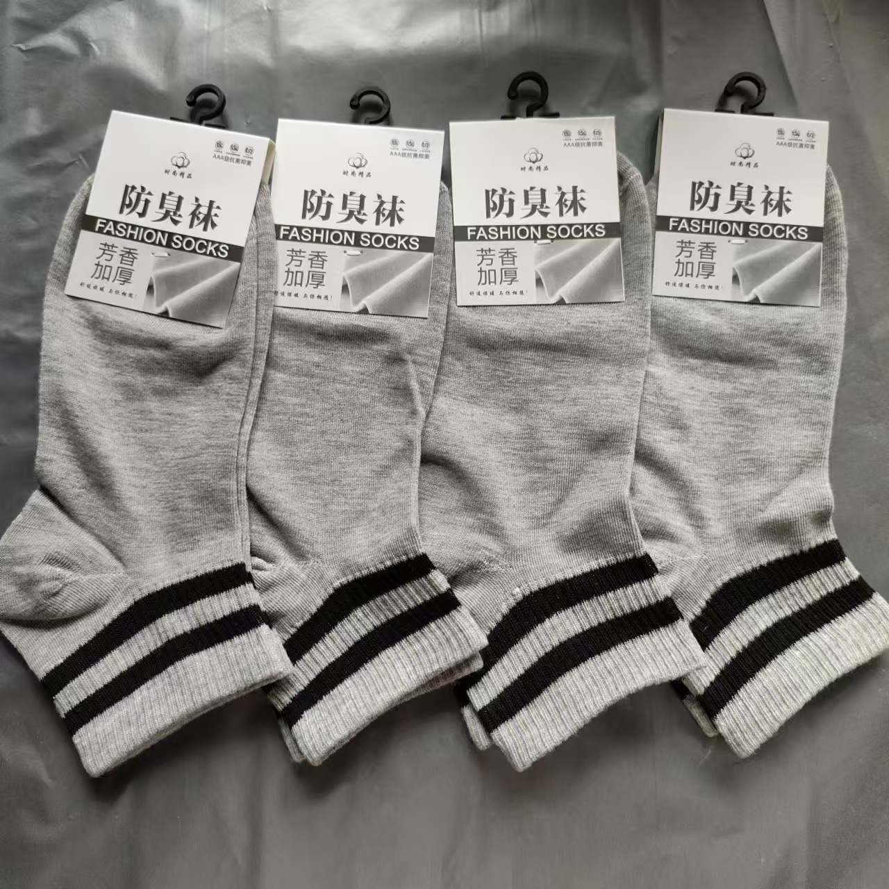 양말 도매, 남성용 7일 냄새 방지 로우 웨이스트 양말, 검정, 흰색, 회색 짧은 양말, 비즈니스 면 땀 흡수 탄성 양말스토어 가기