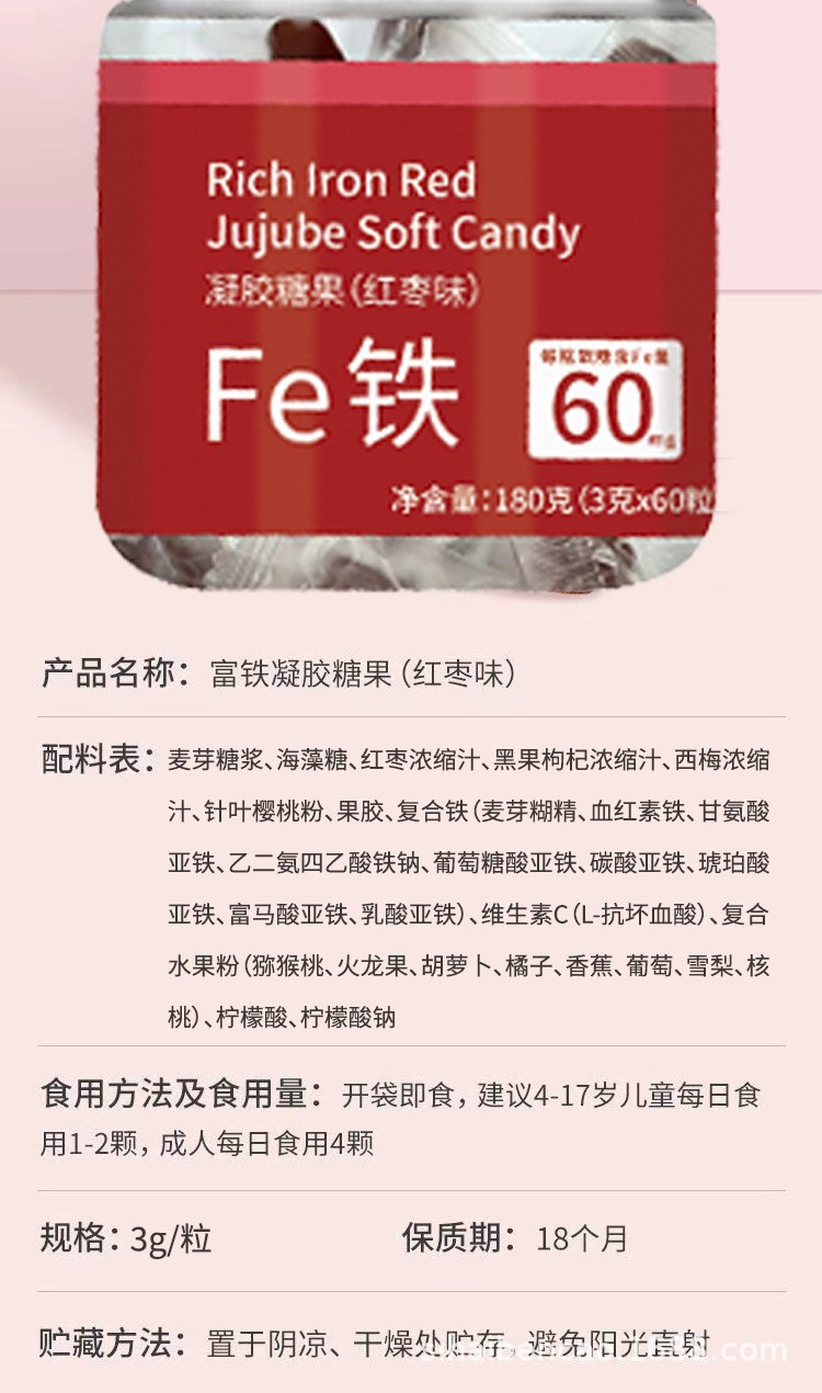 • 철분이 풍부한 붉은 대추 젤리 180g (3g x 60개)