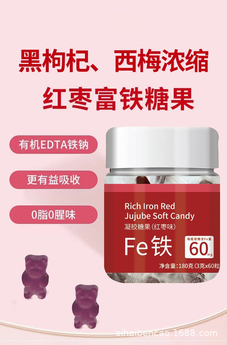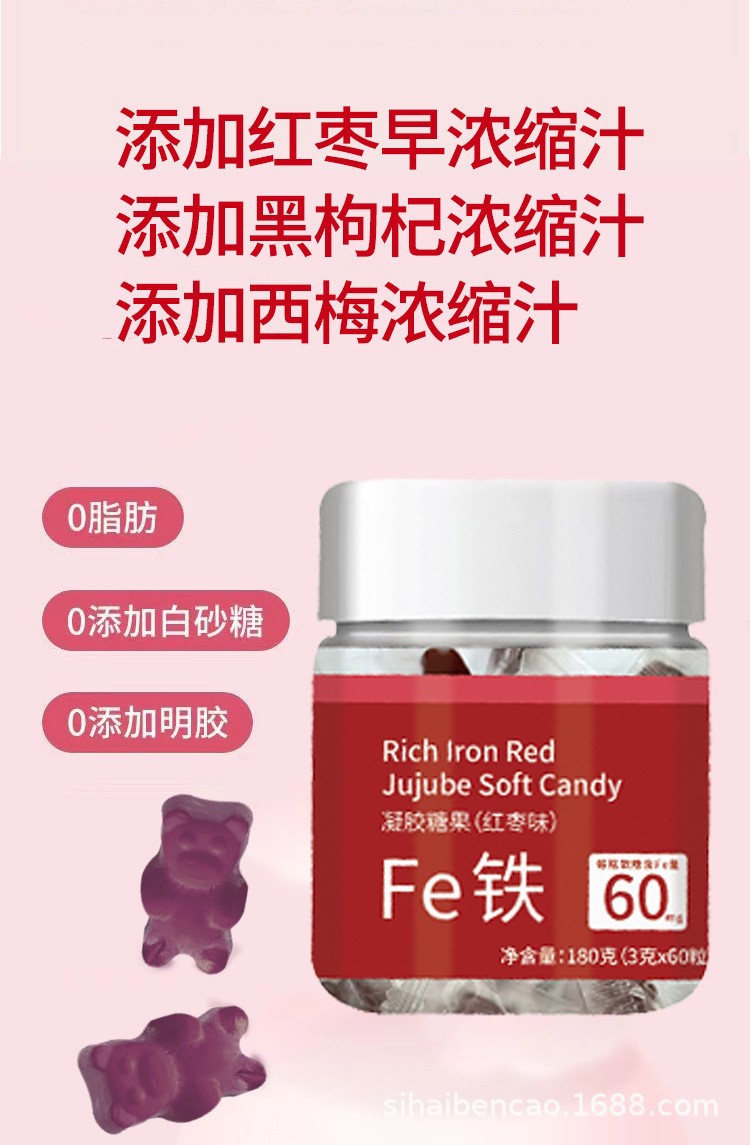 국경을 넘어 인기 있는 사과식초 젤리 비타민 캔디 곰돌이 어린이용 철분이 풍부한 대추 젤리 인기 병입 공장 도매