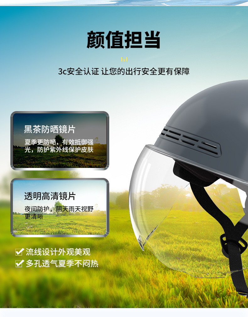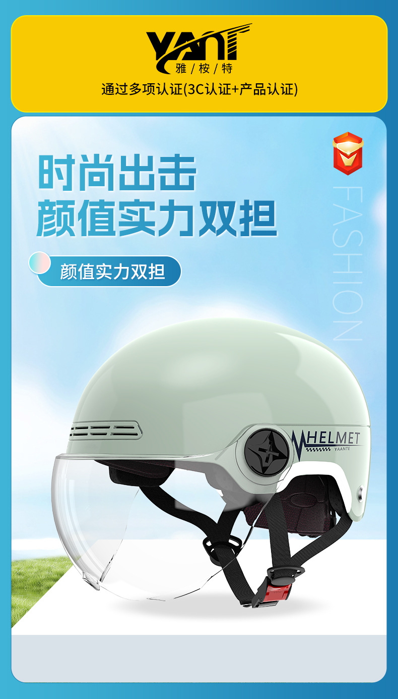 Yaleucalyptus 전기 자동차 헬멧 3C 인증 남녀 사계절 유니버설 하프 헬멧 배터리 오토바이 승마 헬멧