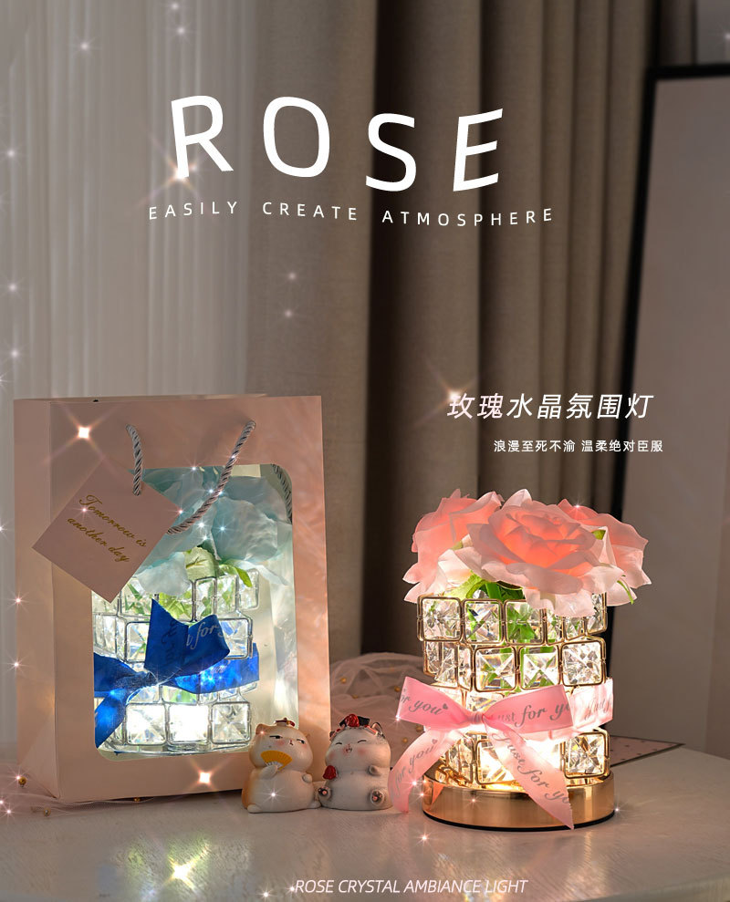 새로운 루빅스 큐브 LED 로즈 나이트 라이트 장식 테이블 램프 랜턴 발렌타인 데이 생일 선물 꽃다발 장식