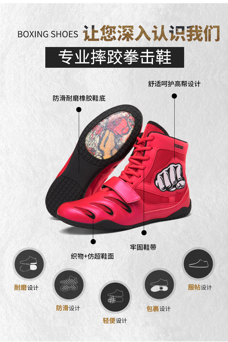 어린이 복싱 신발 Sanda 실내 훈련 신발 프로 레슬링 경쟁 신발 미끄럼 방지 경량 남녀 운동화스토어 가기