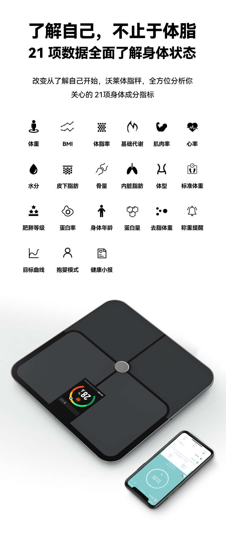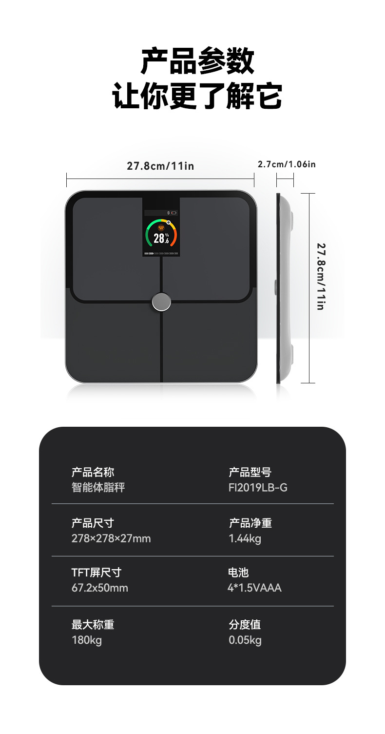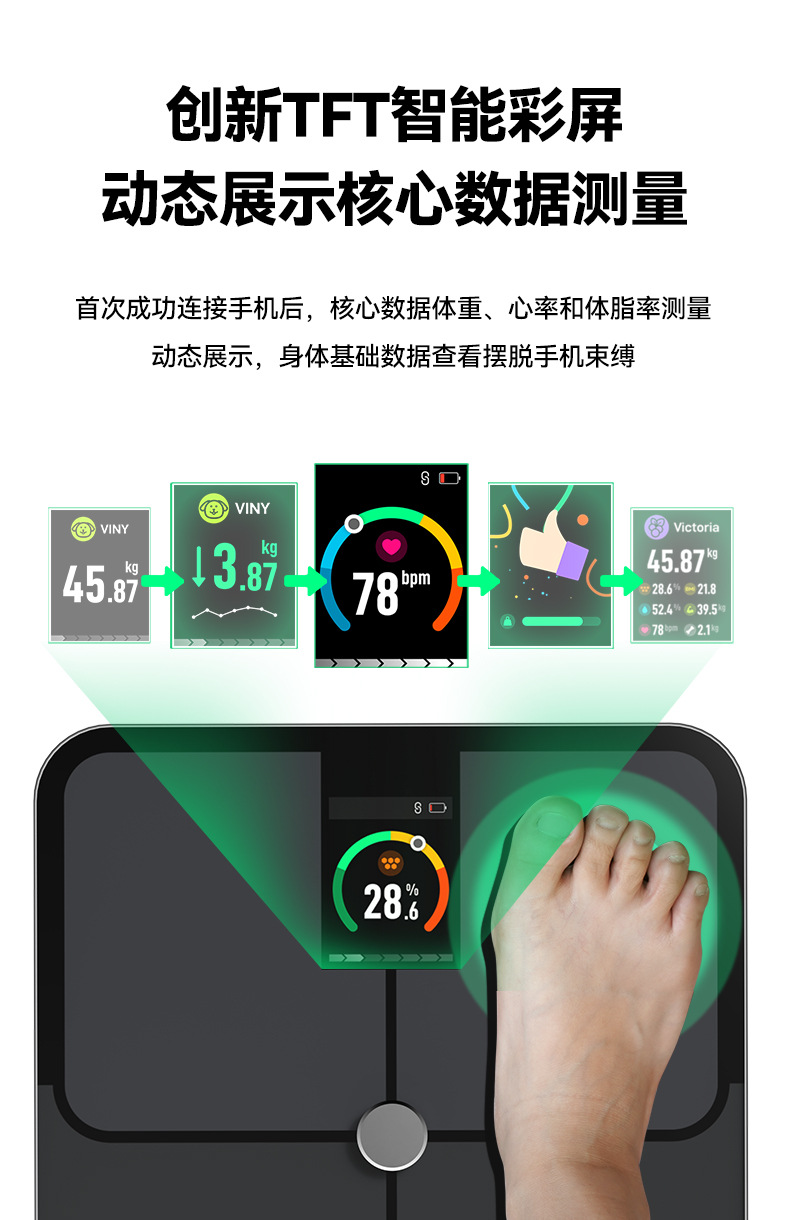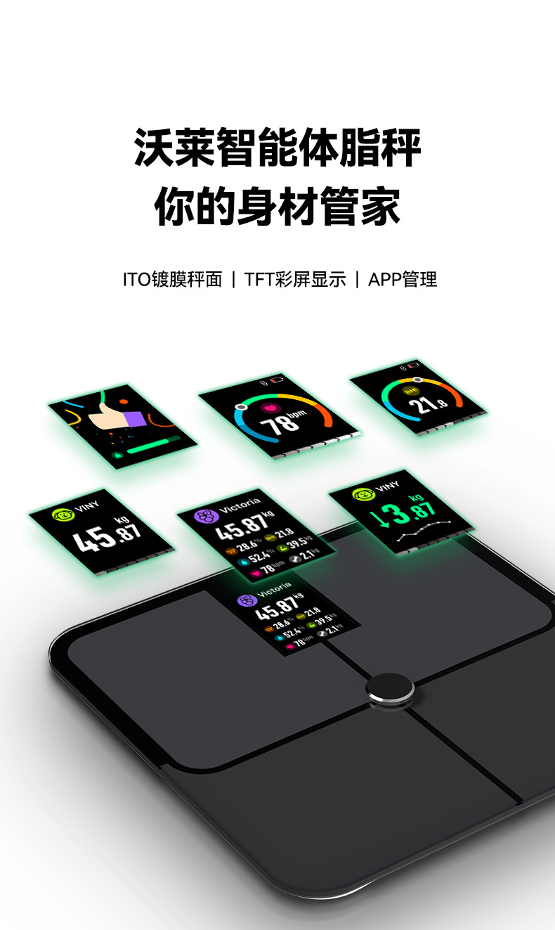 국경을 넘는 새로운 스마트 블루투스 체지방 규모 관리자 VA 컬러 스크린 가정용 체지방 규모 대외 무역 인간 규모 지방 규모스토어 가기