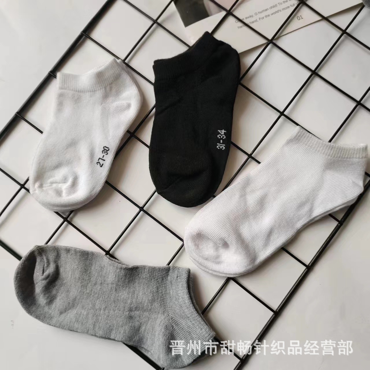 어린이용 짧은 양말 흑백 회색 단색 캐주얼 통기성 보트 양말 학생 양말 도매 짧은 통기성 땀 흡수 양말