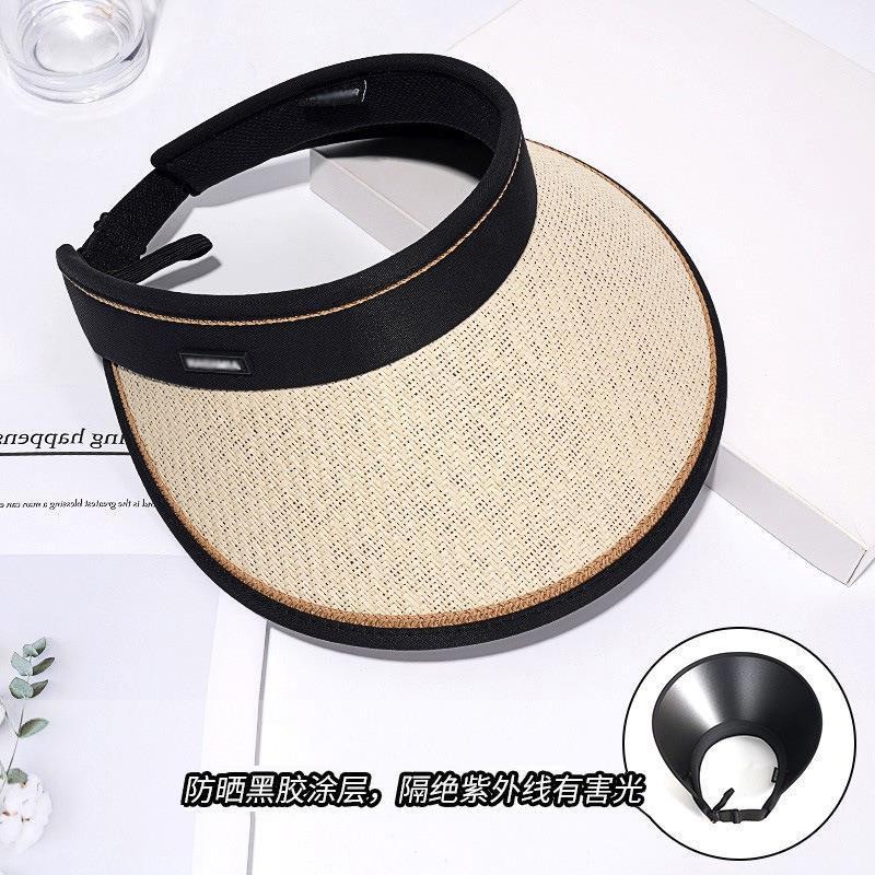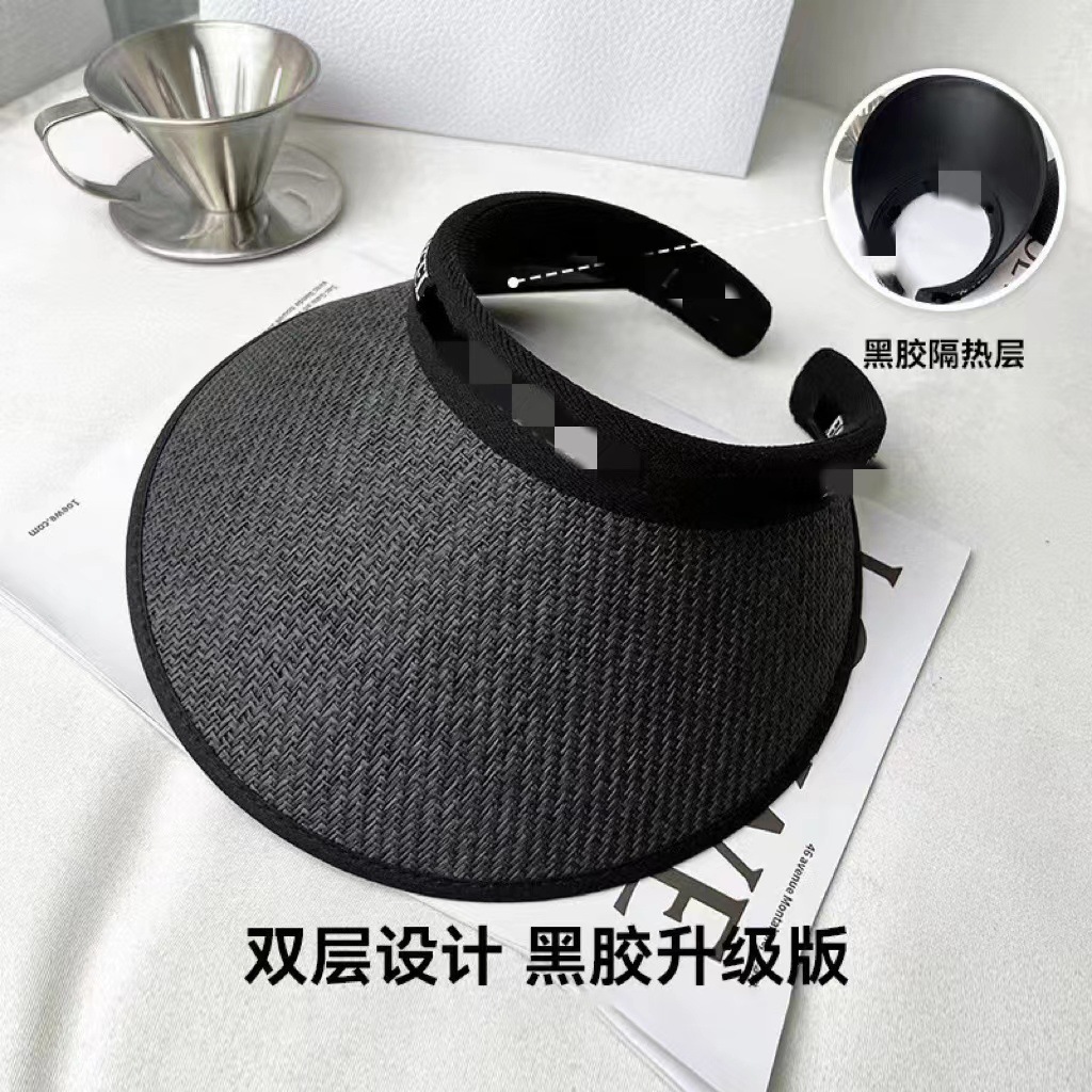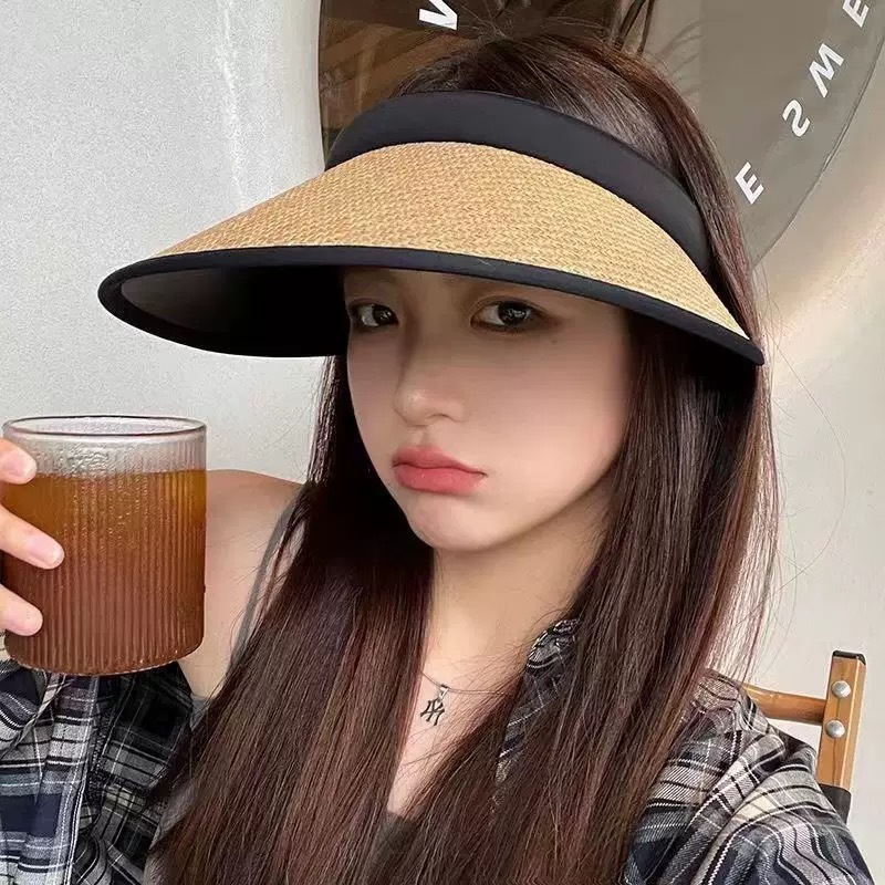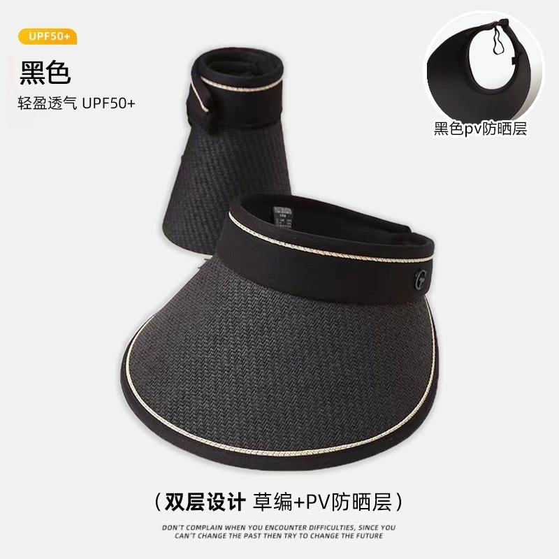 새로운 스타일의 여성용 햇빛 가리개 모자, 큰 챙, 검정색 비닐, 오픈탑, 자전거 라이딩용 얼굴 가리개, 패셔너블하고 캐주얼한 밀짚모자스토어 가기