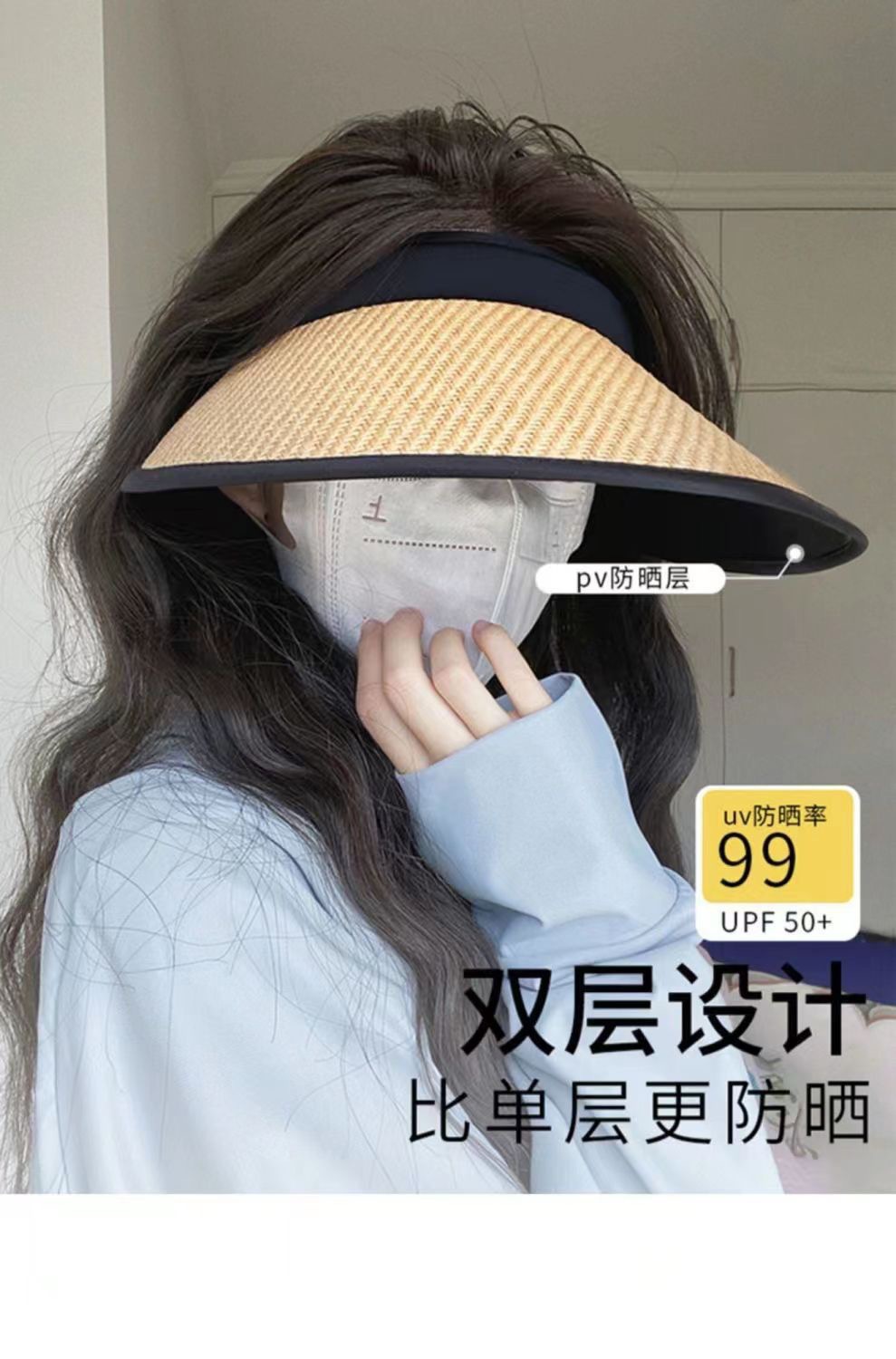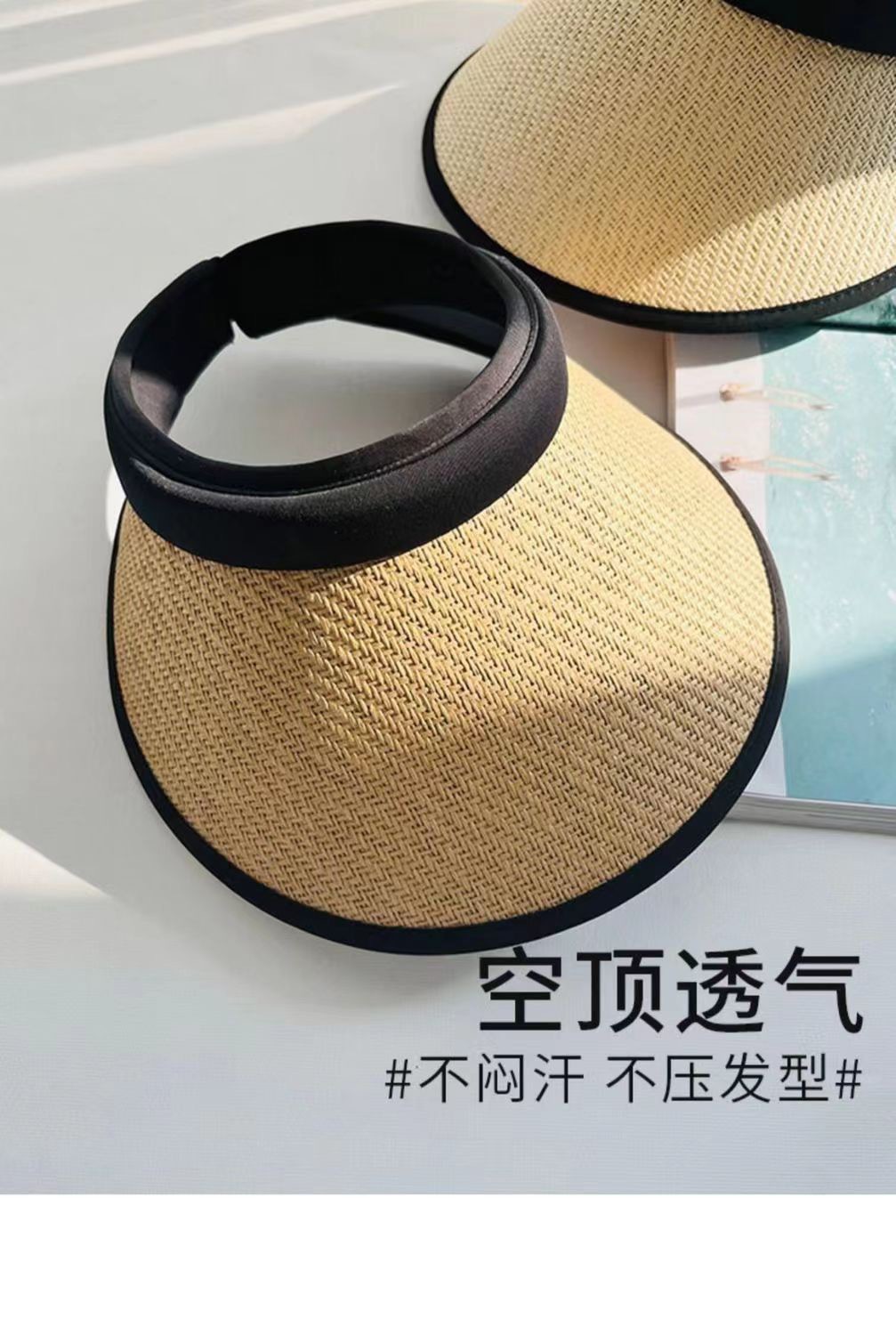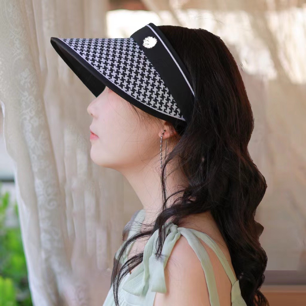 새로운 스타일의 여성용 햇빛 가리개 모자, 큰 챙, 검정색 비닐, 오픈탑, 자전거 라이딩용 얼굴 가리개, 패셔너블하고 캐주얼한 밀짚모자스토어 가기