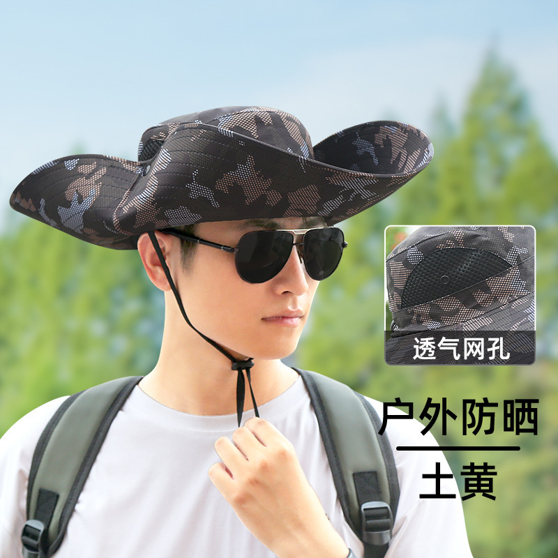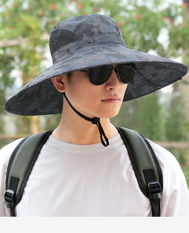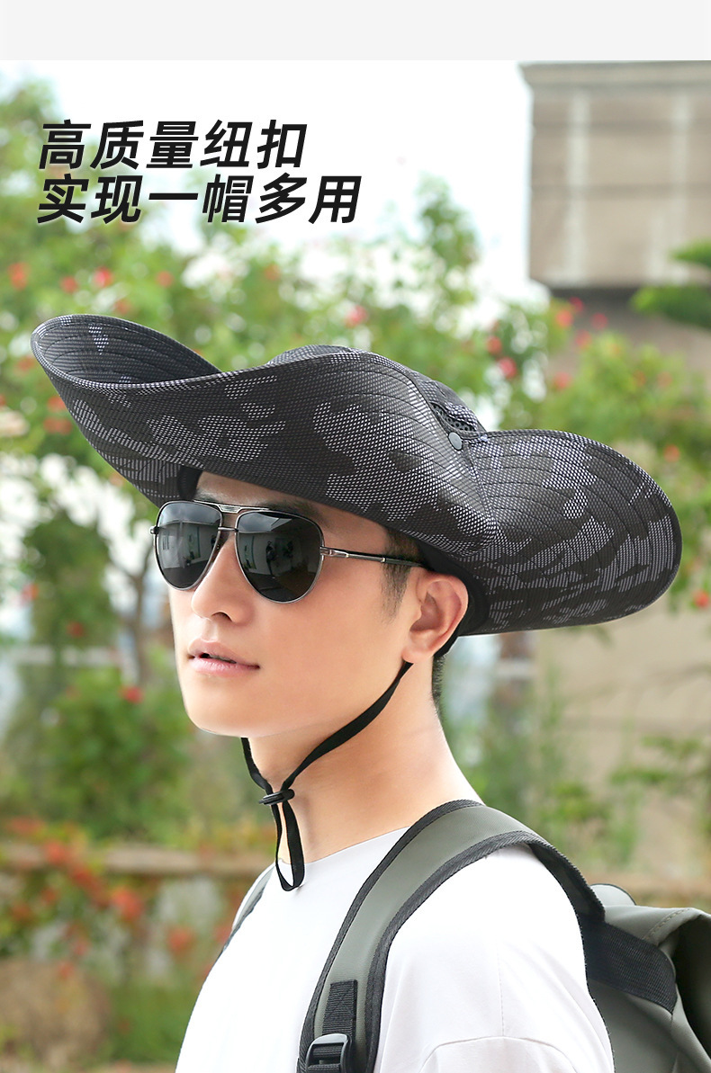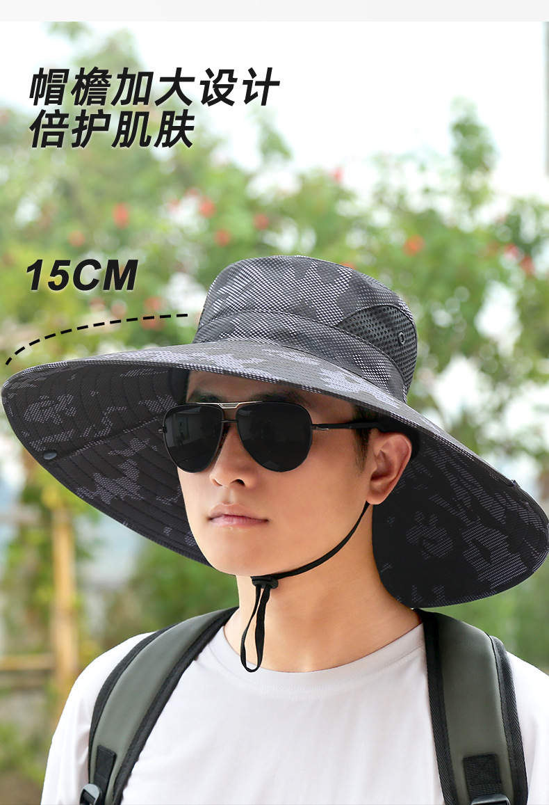 큰 테두리 모자 15cm 고급 어부 모자 낚시 모자 하이킹 캡 차양 선 스크린 남성 모자 양산 모자 위장 모자