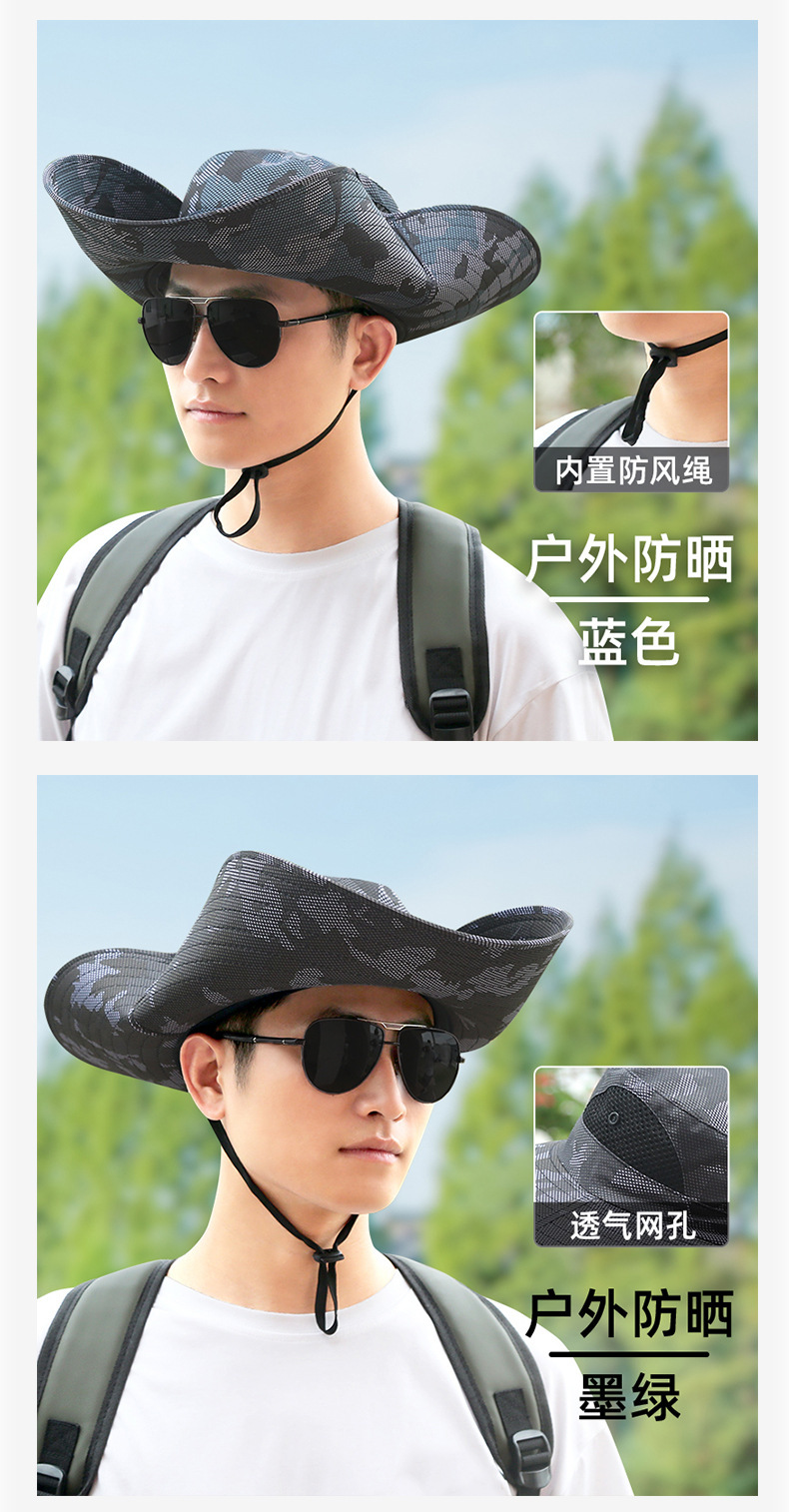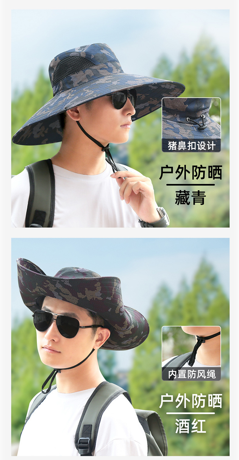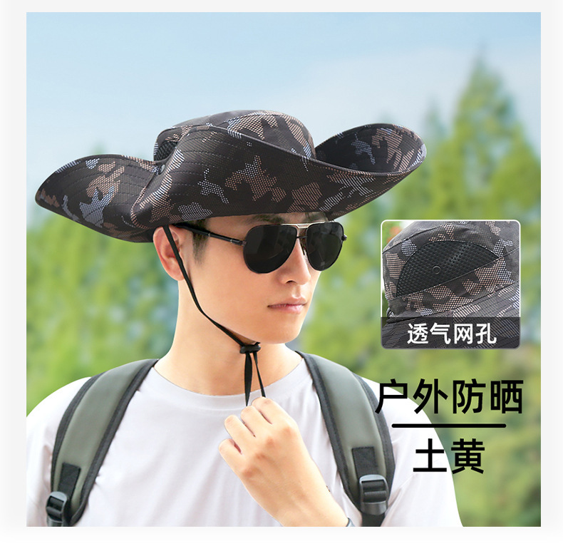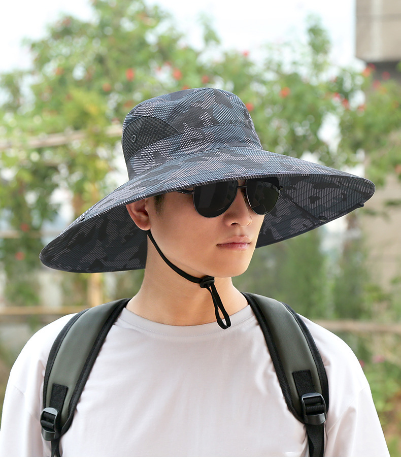 큰 테두리 모자 15cm 고급 어부 모자 낚시 모자 하이킹 캡 차양 선 스크린 남성 모자 양산 모자 위장 모자