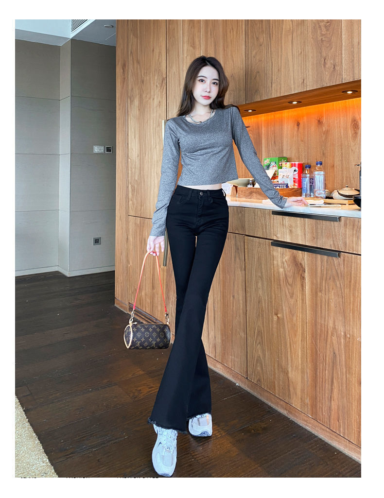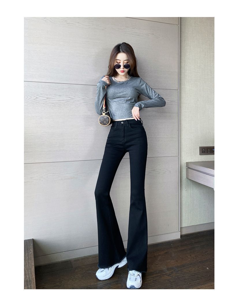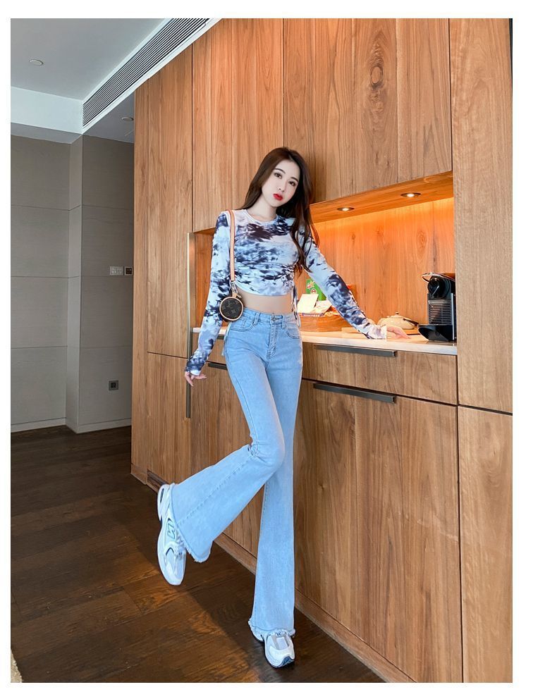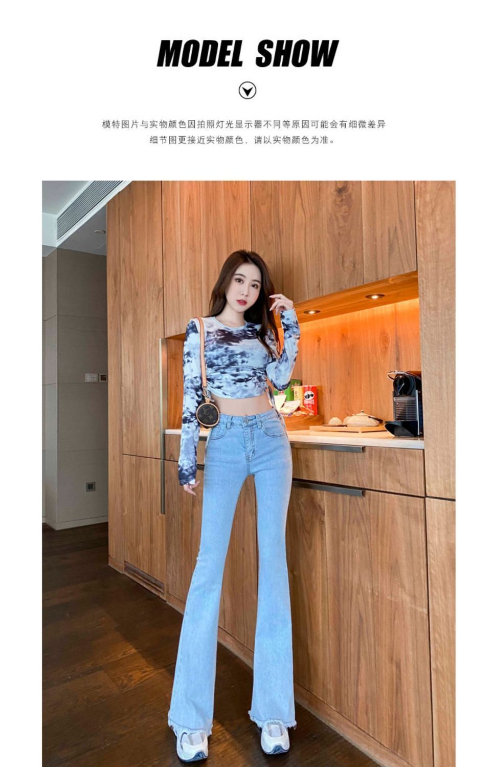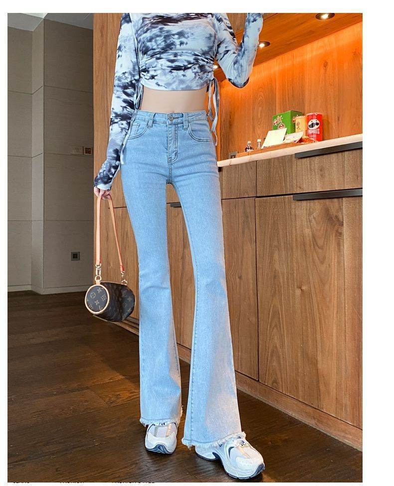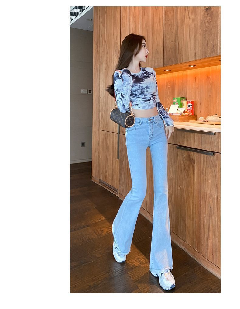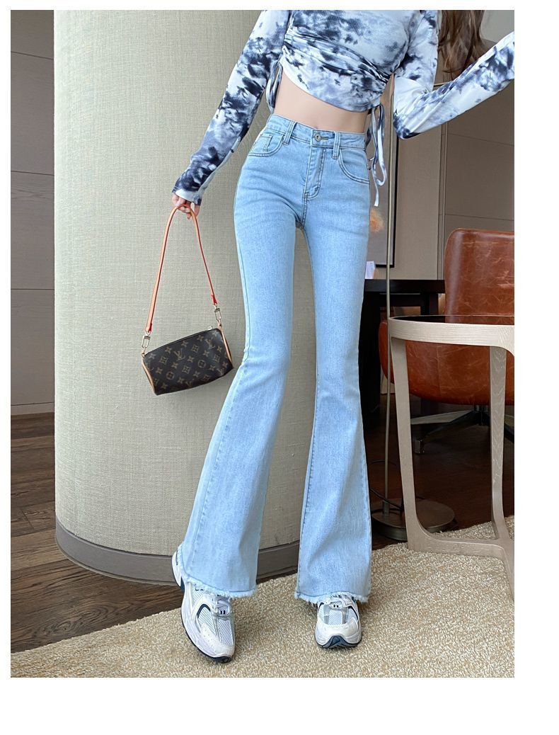 봄 2024 라이트 블루 마른 청바지 여성의 높은 허리 슬리밍 여성을위한 한국식 꽉 드레이핑 바지스토어 가기