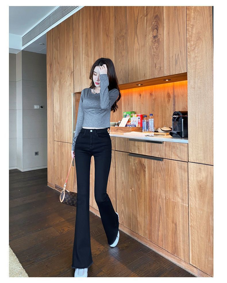 봄 2024 라이트 블루 마른 청바지 여성의 높은 허리 슬리밍 여성을위한 한국식 꽉 드레이핑 바지