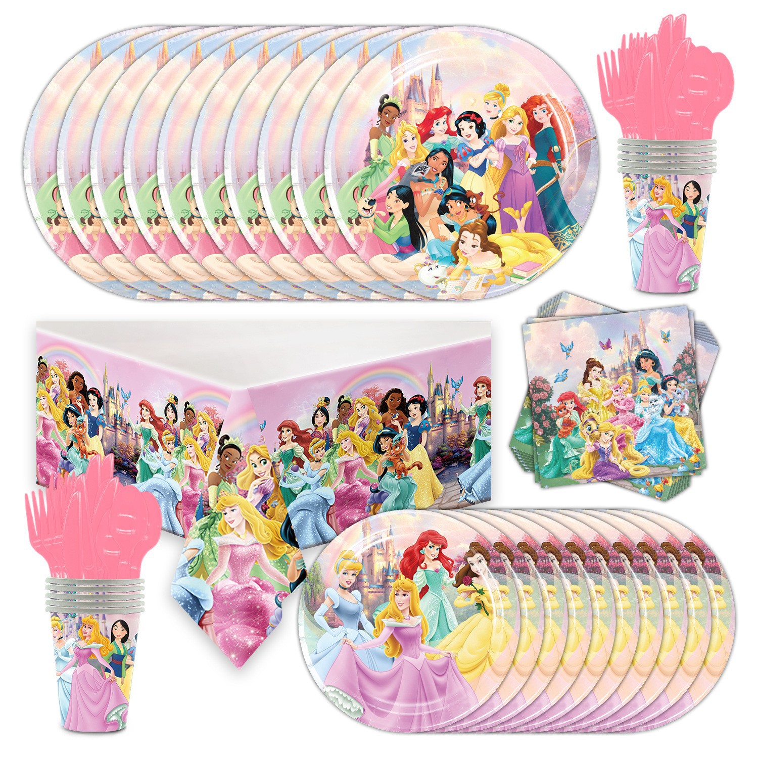 핑크 일곱 공주 생일 파티 만화 테마 소녀 생일 드림 파티 세트 종이 접시 수건 풍선스토어 가기
