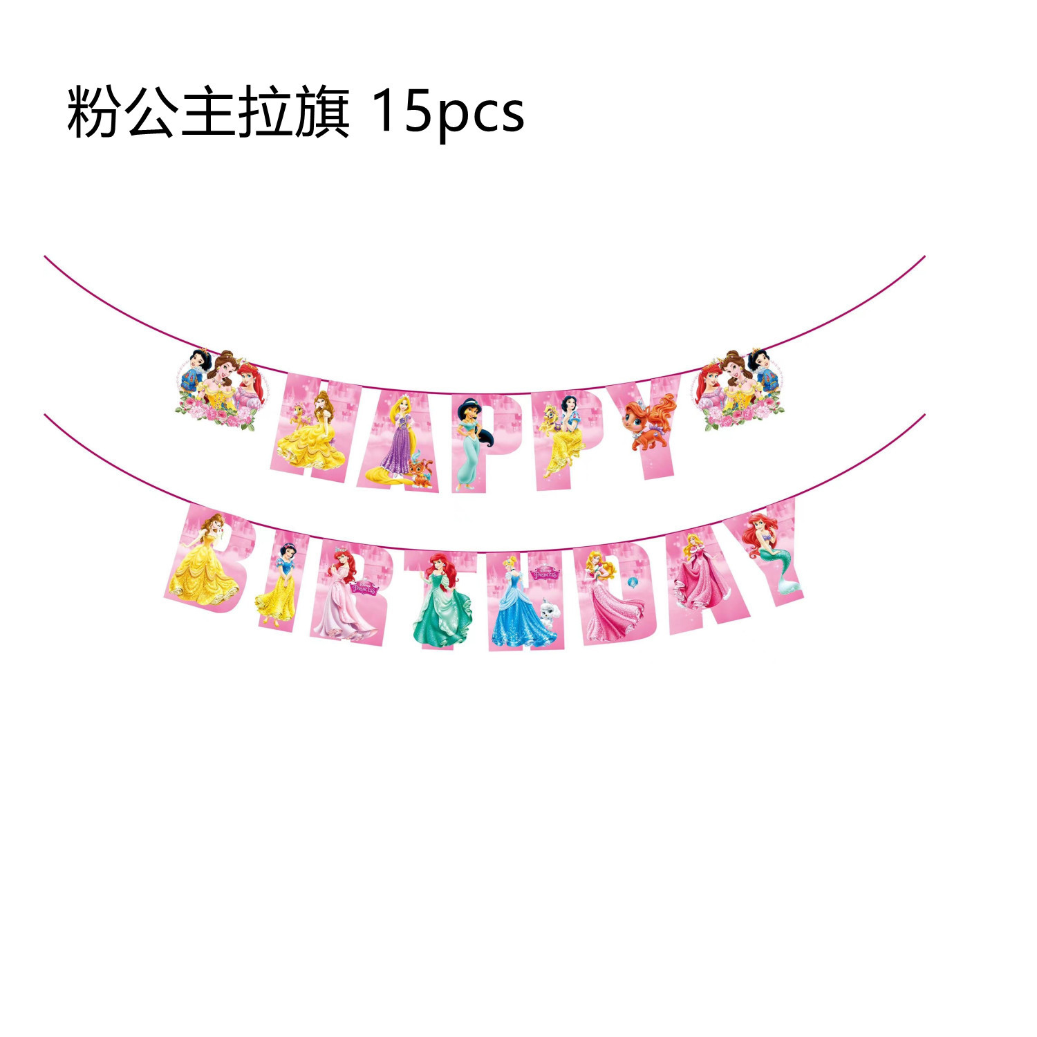 핑크 일곱 공주 생일 파티 만화 테마 소녀 생일 드림 파티 세트 종이 접시 수건 풍선