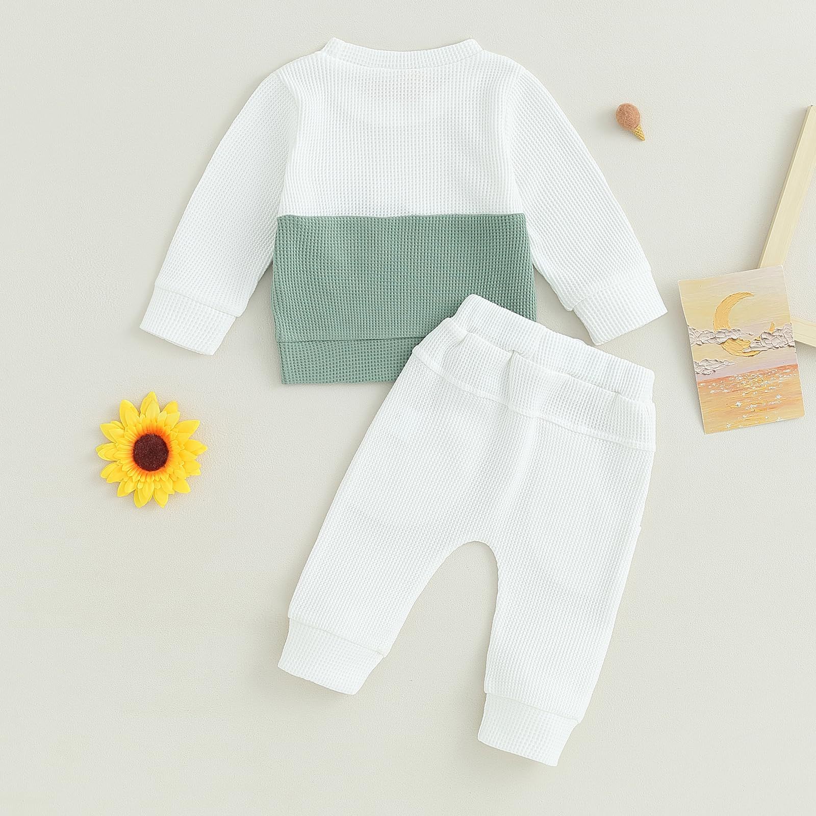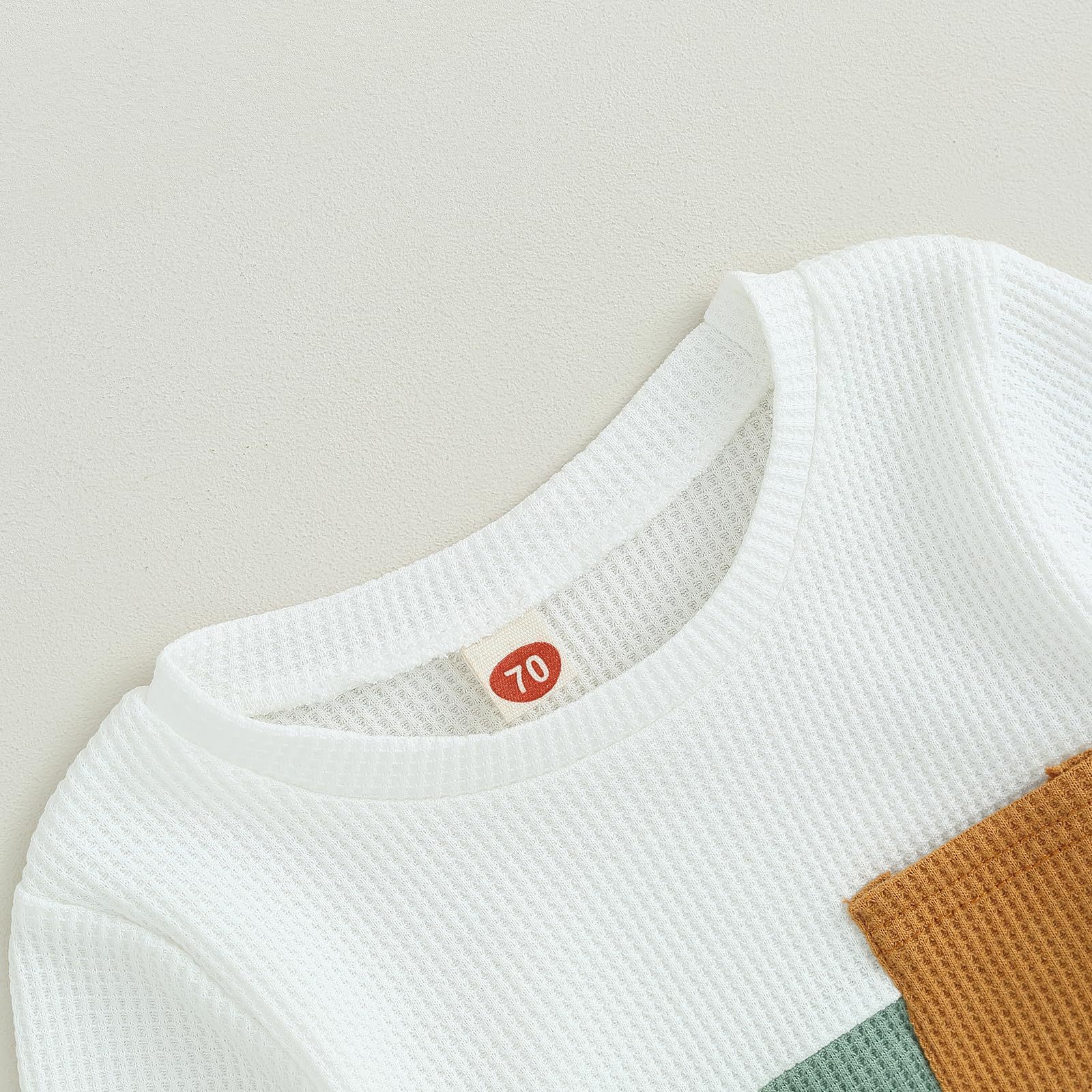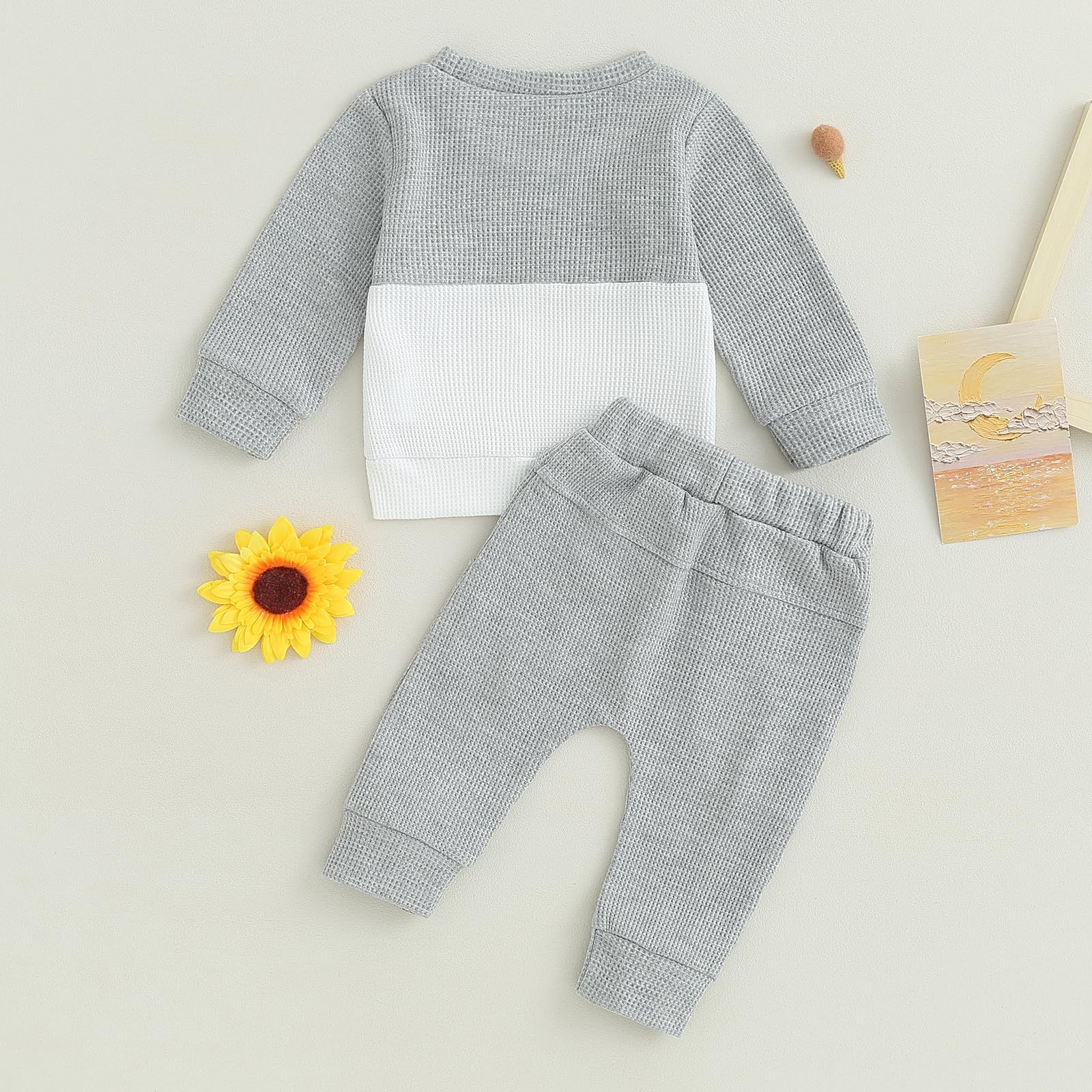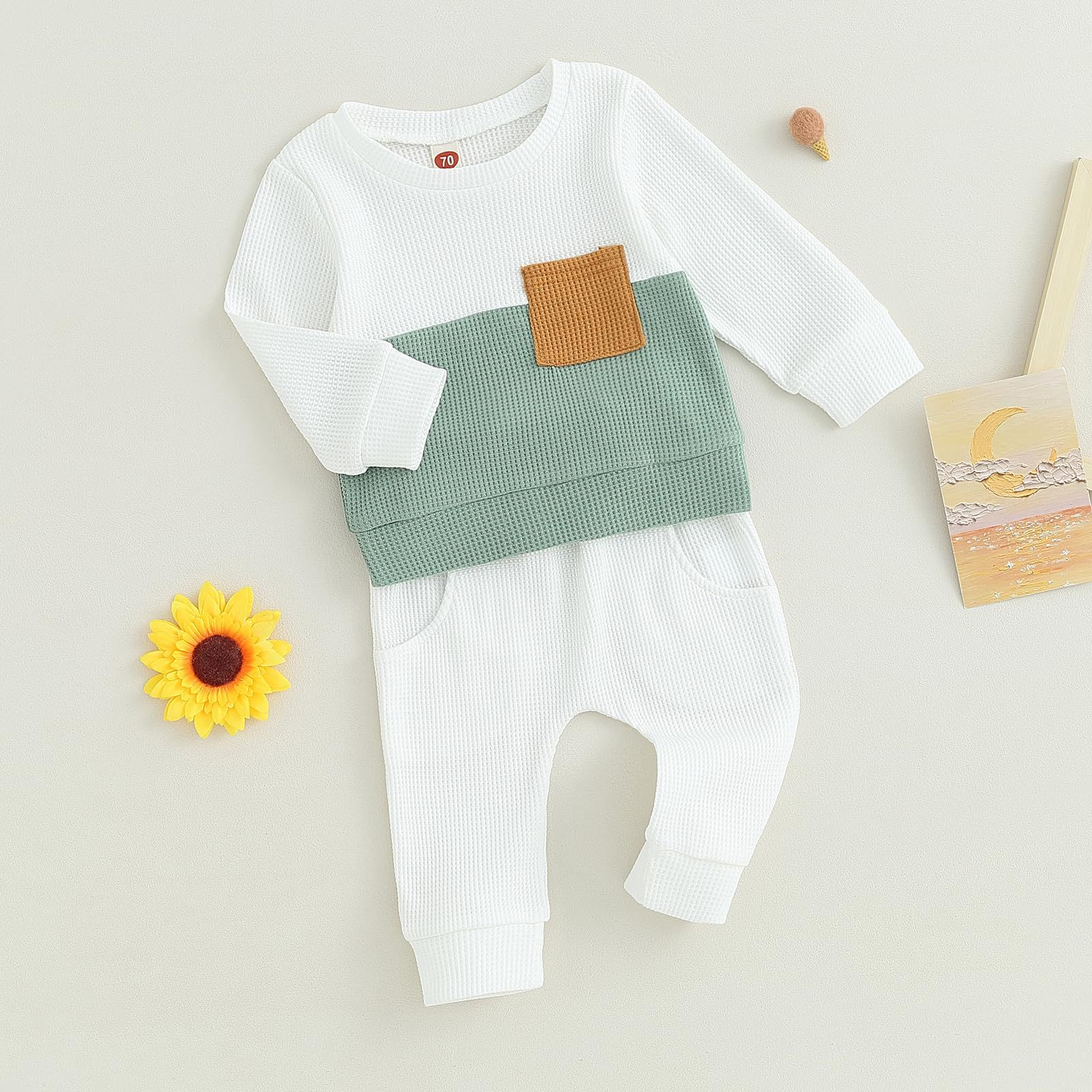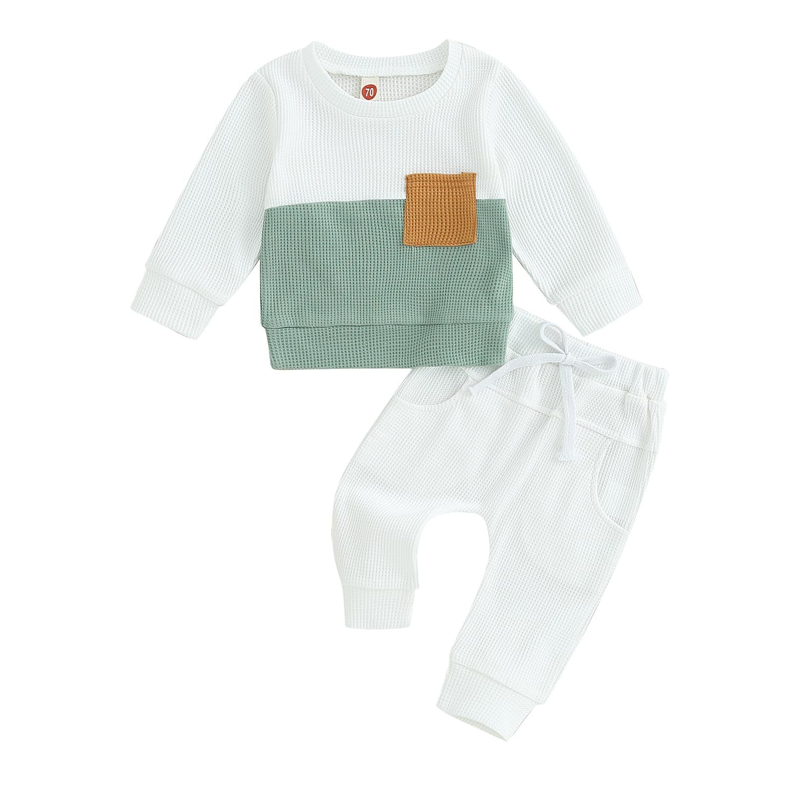 외국 무역 알리익스프레스 와플 패턴 포켓 긴팔 스웨트셔츠와 끈 조절 스웨트팬츠 2종 세트 아동용 T33719