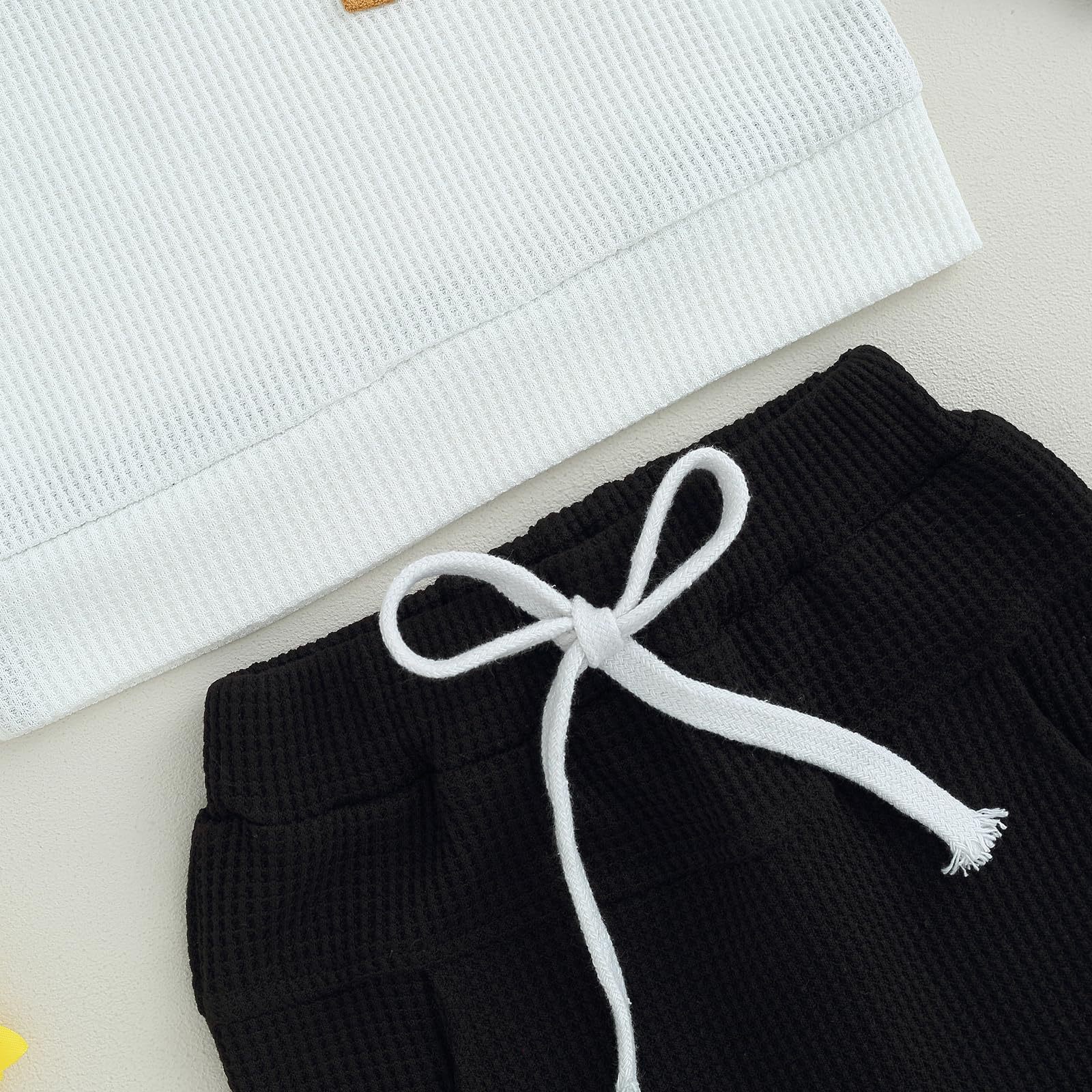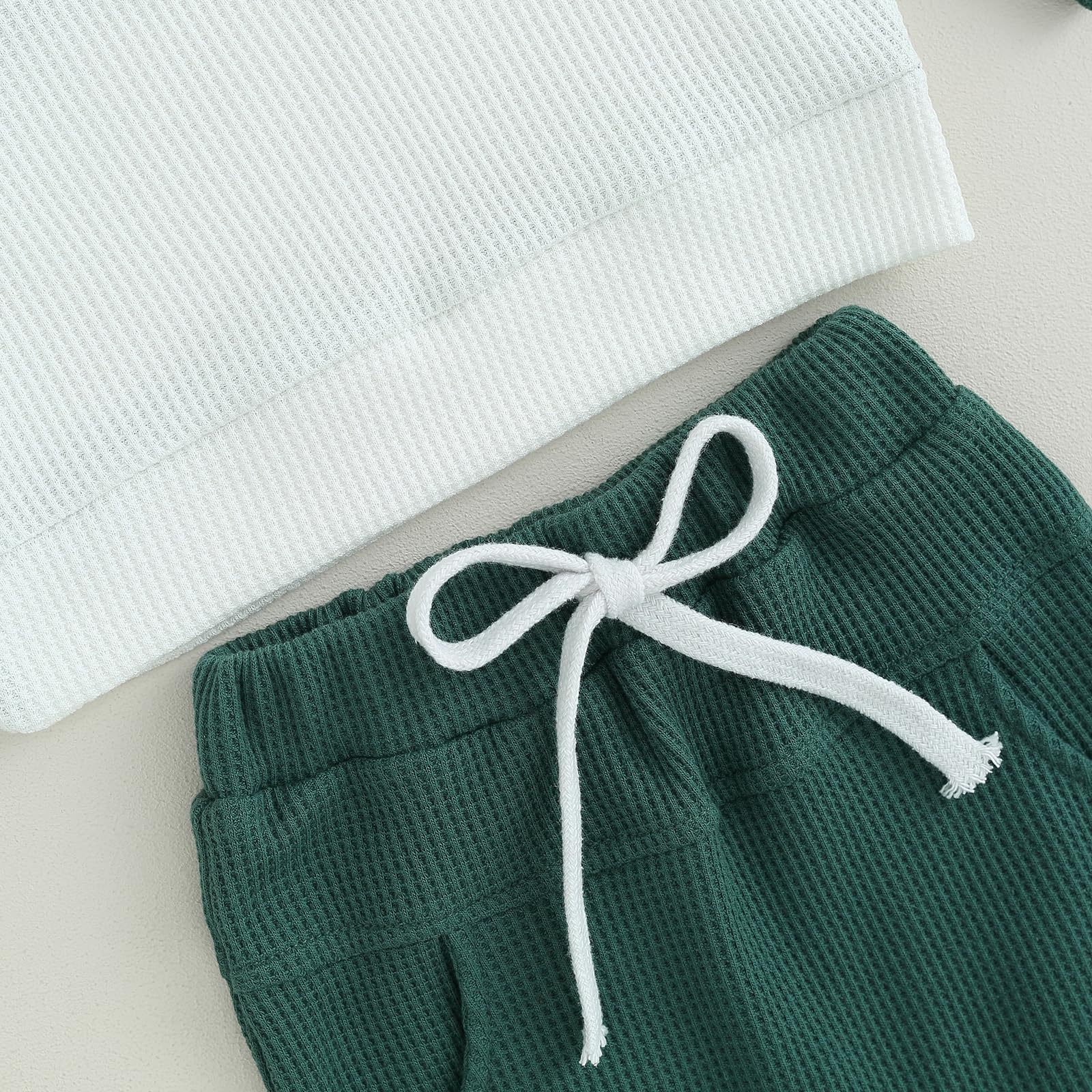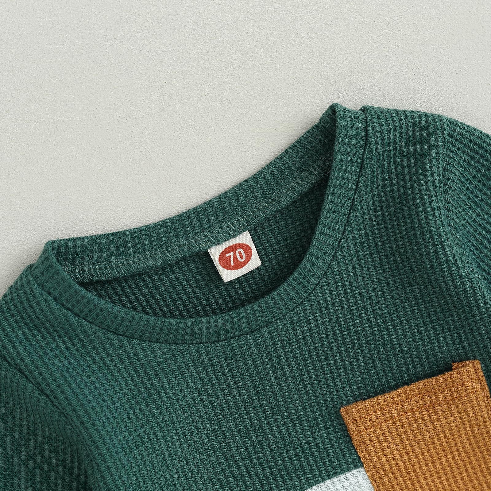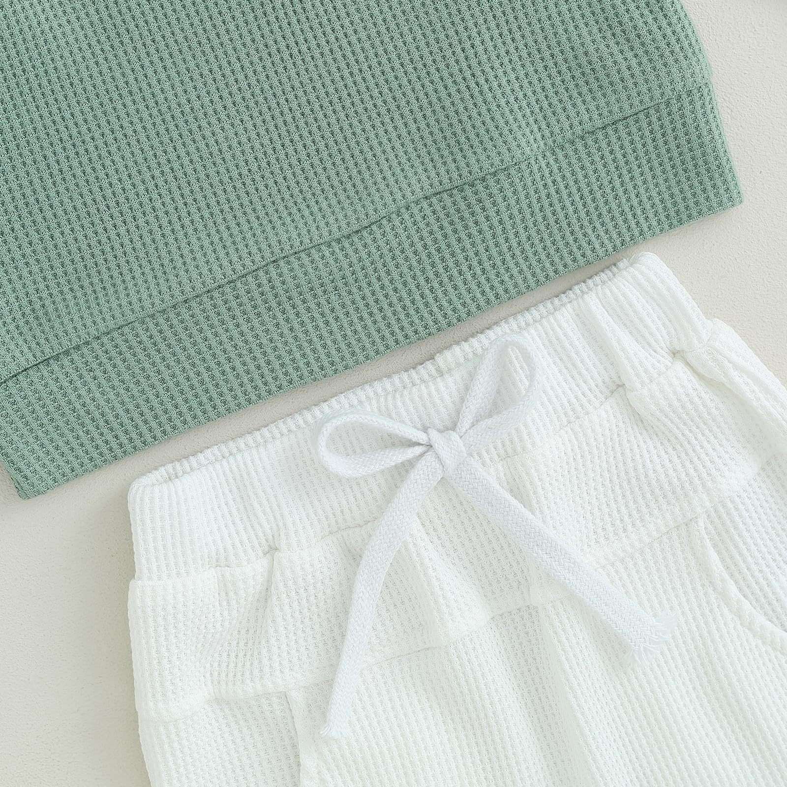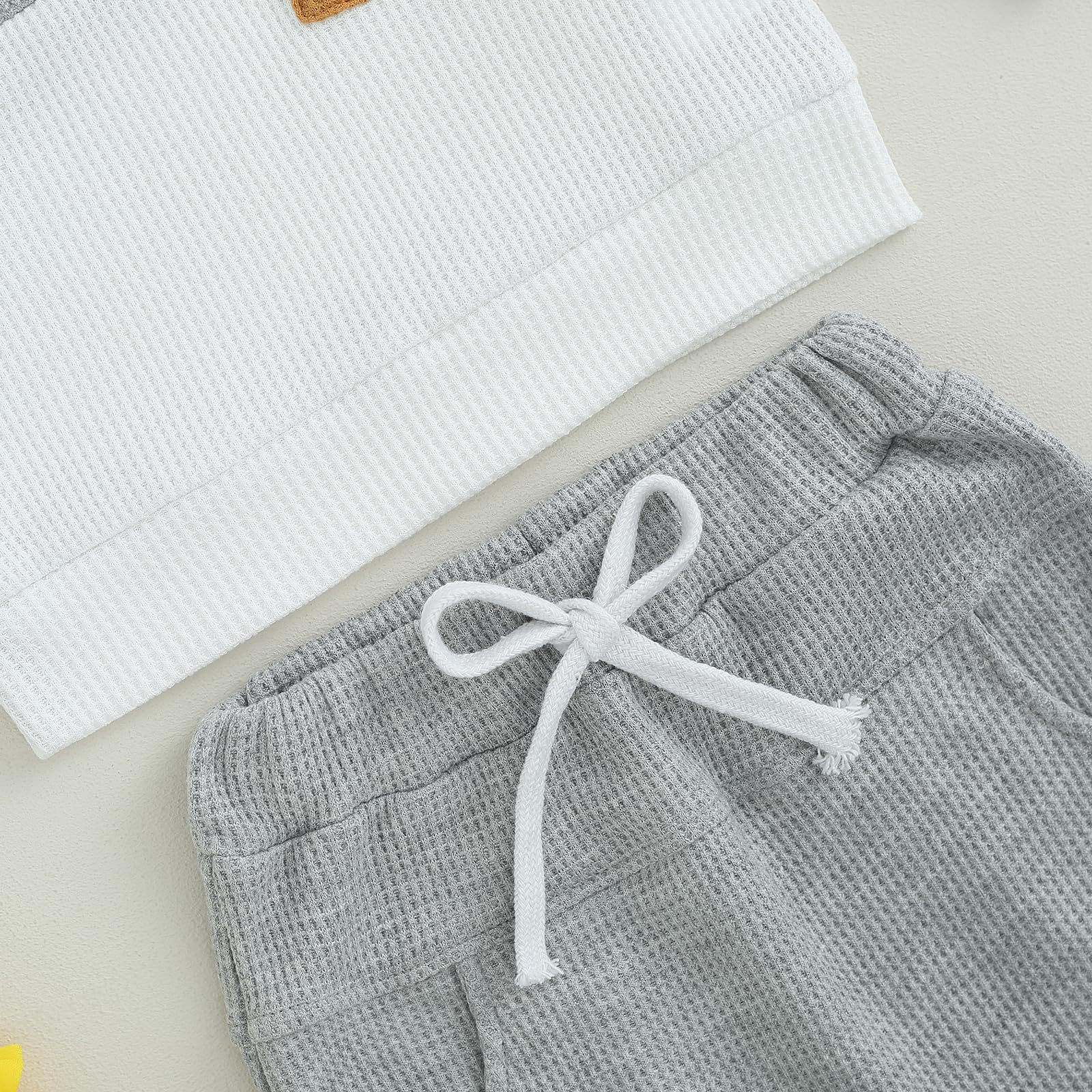 외국 무역 알리익스프레스 와플 패턴 포켓 긴팔 스웨트셔츠와 끈 조절 스웨트팬츠 2종 세트 아동용 T33719