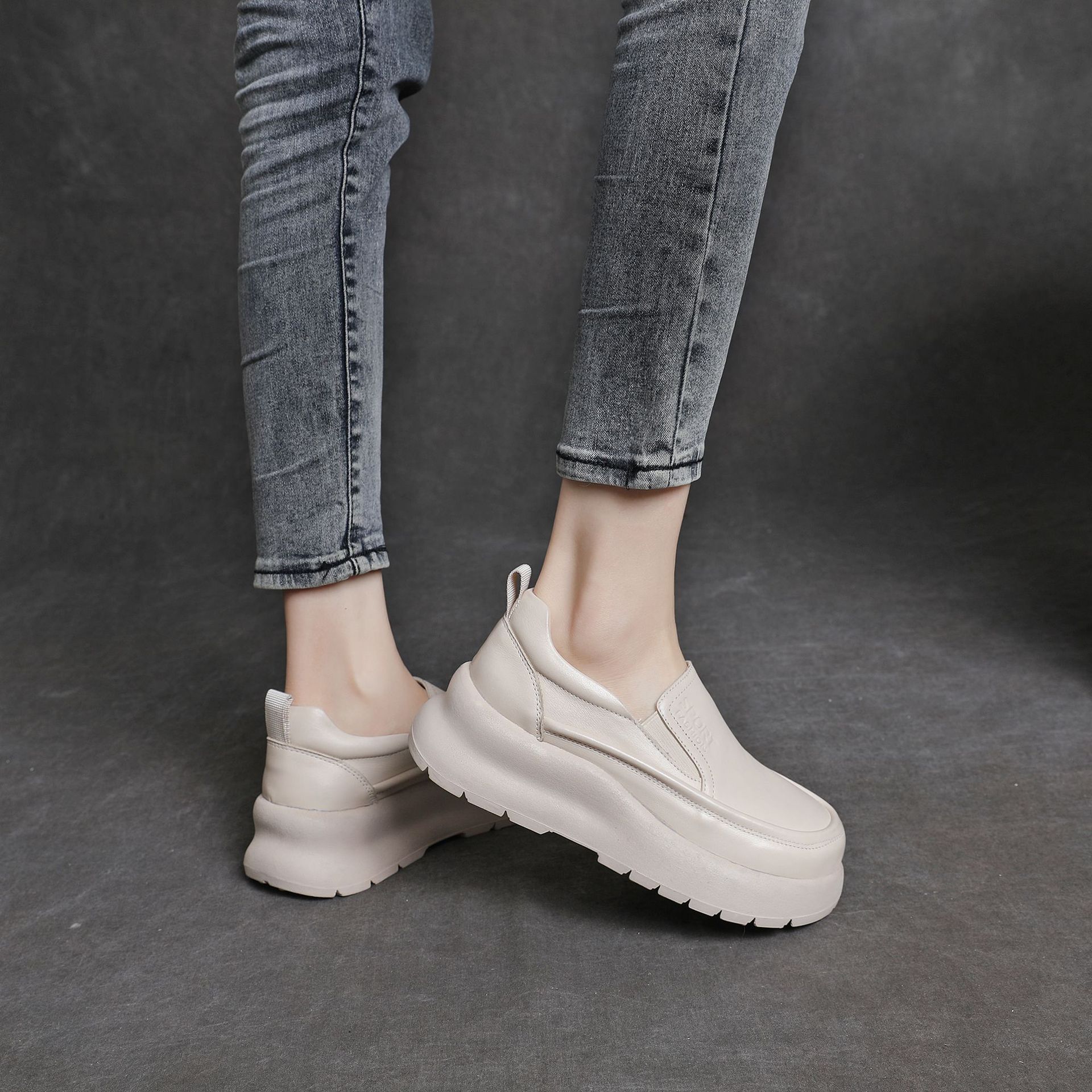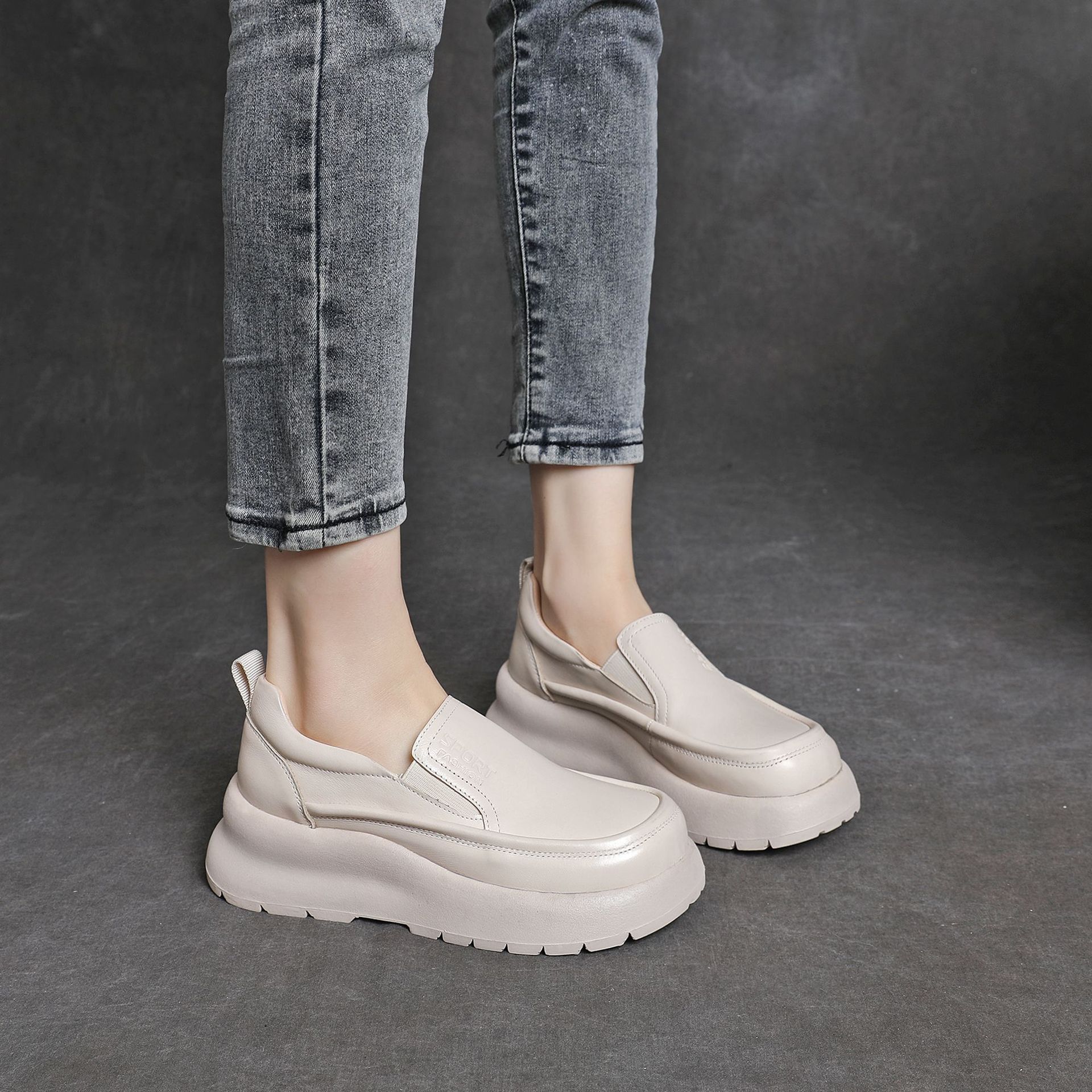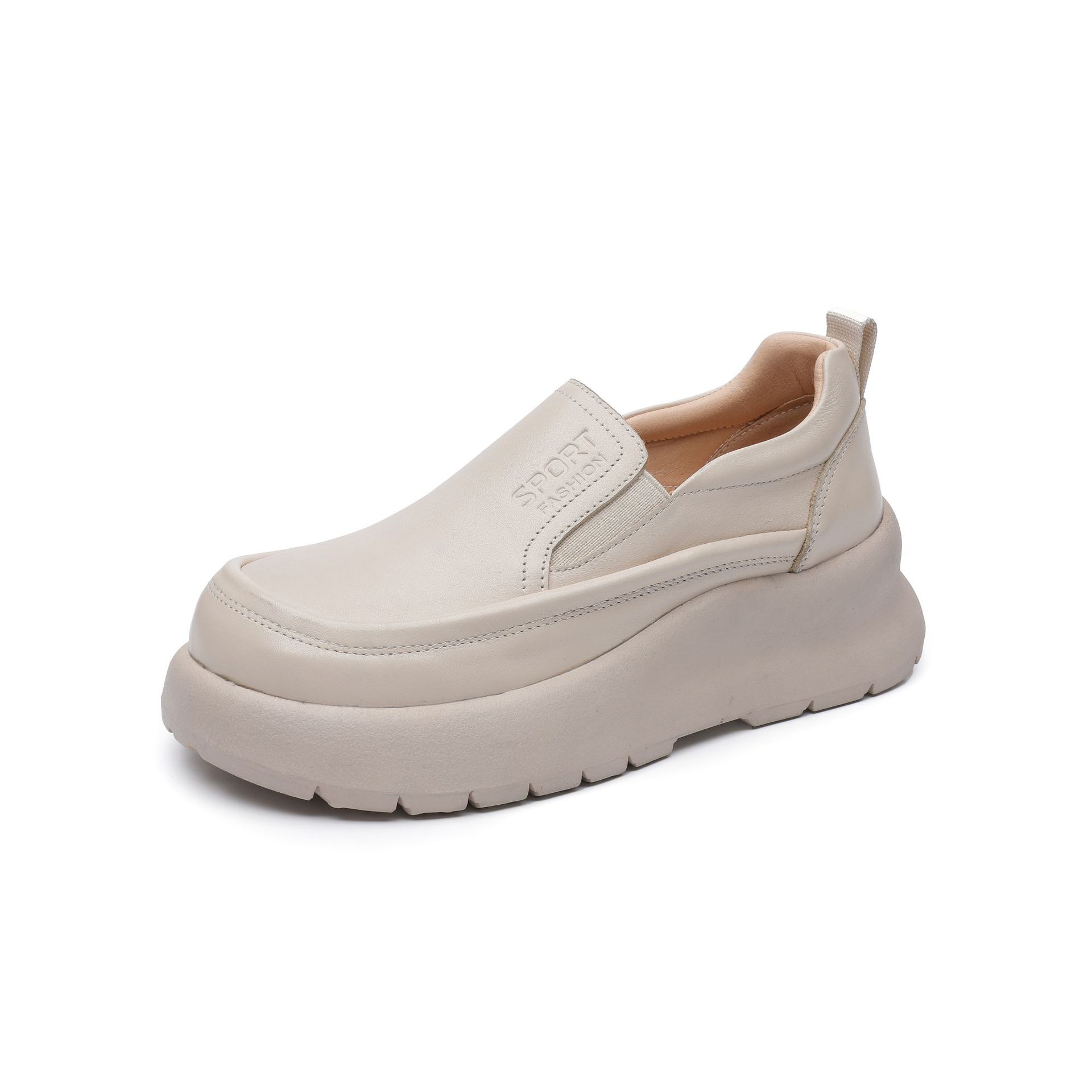 첫 번째 레이어 소 가죽 2024 봄 새로운 두꺼운 밑창 둥근 발가락 머핀 슬립 온 흰색 신발 로우 컷 싱글 레이어 신발 여성용