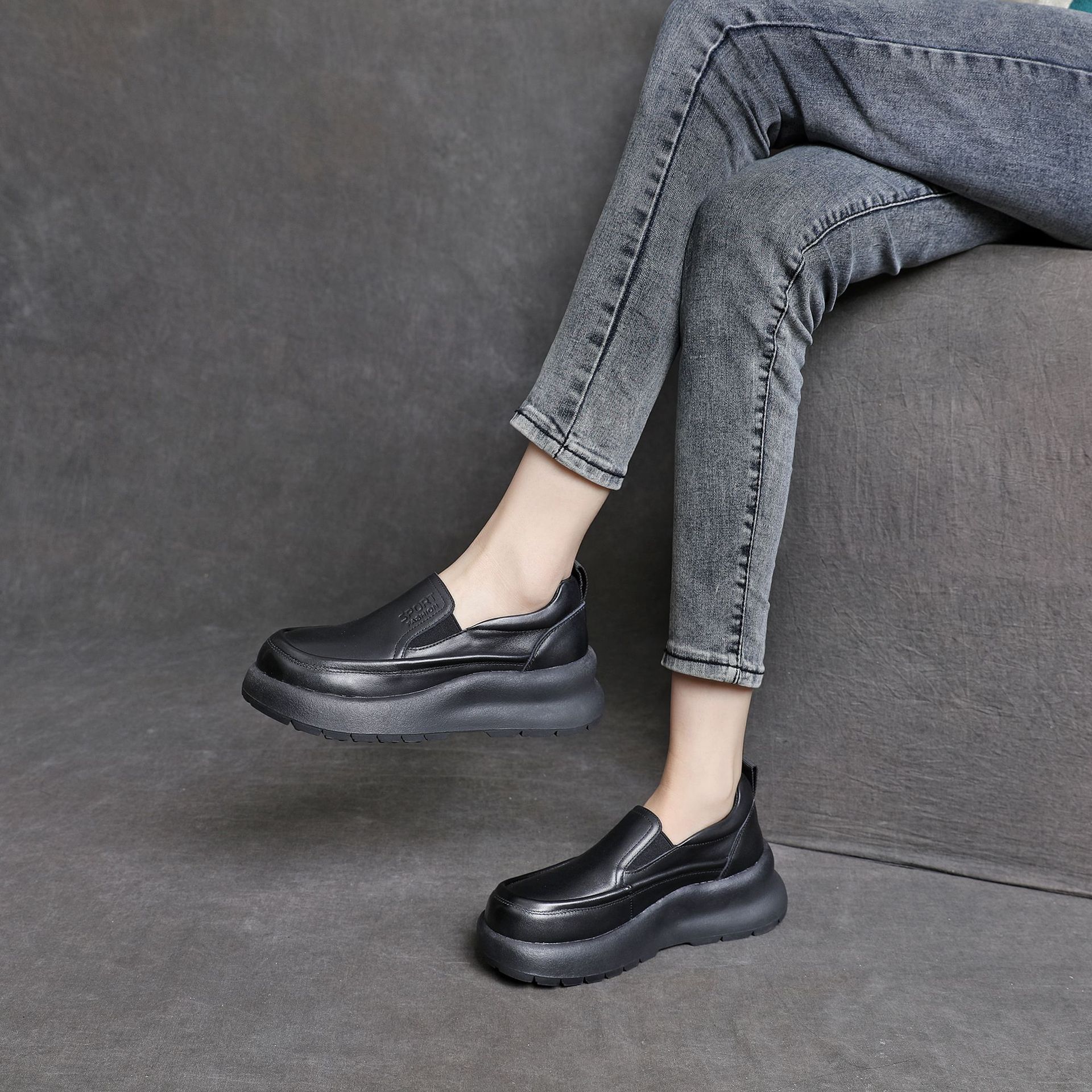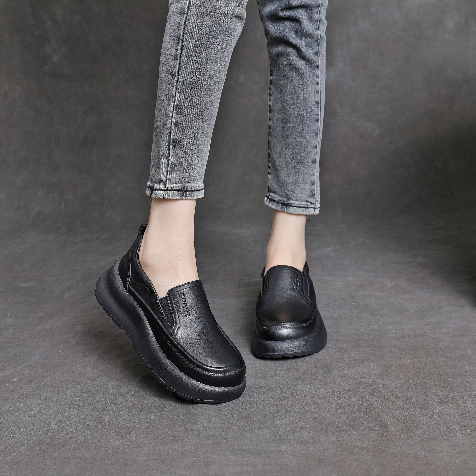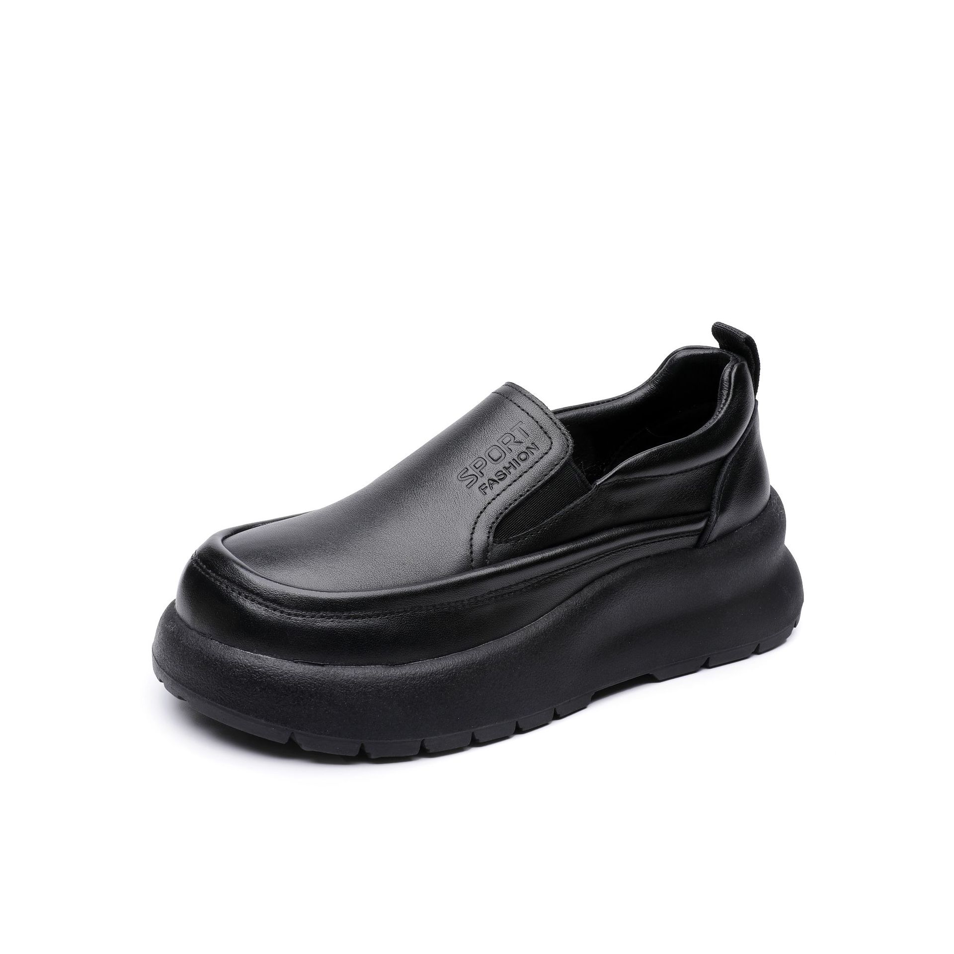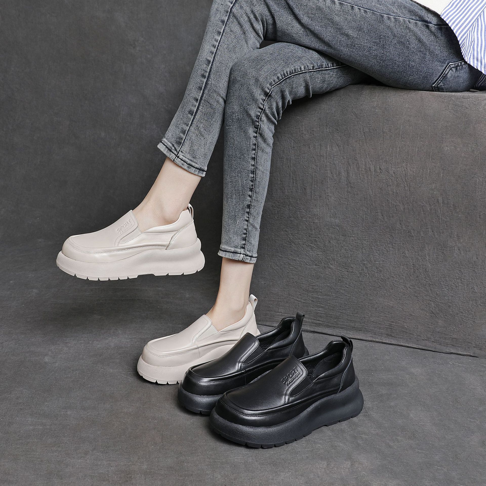 첫 번째 레이어 소 가죽 2024 봄 새로운 두꺼운 밑창 둥근 발가락 머핀 슬립 온 흰색 신발 로우 컷 싱글 레이어 신발 여성용