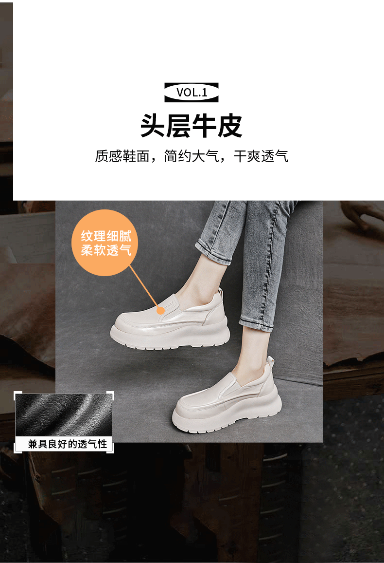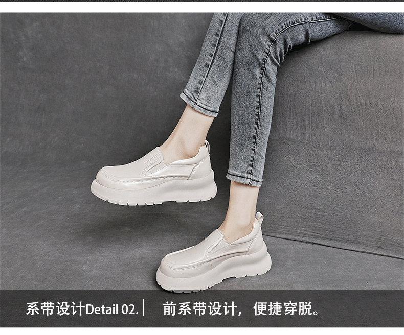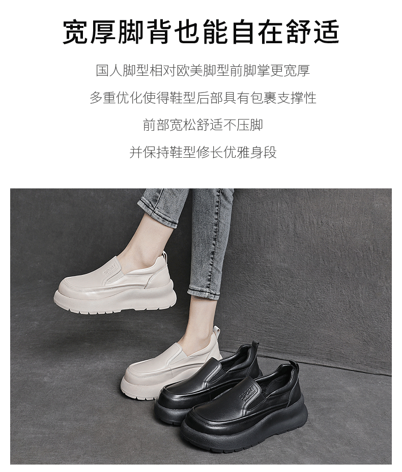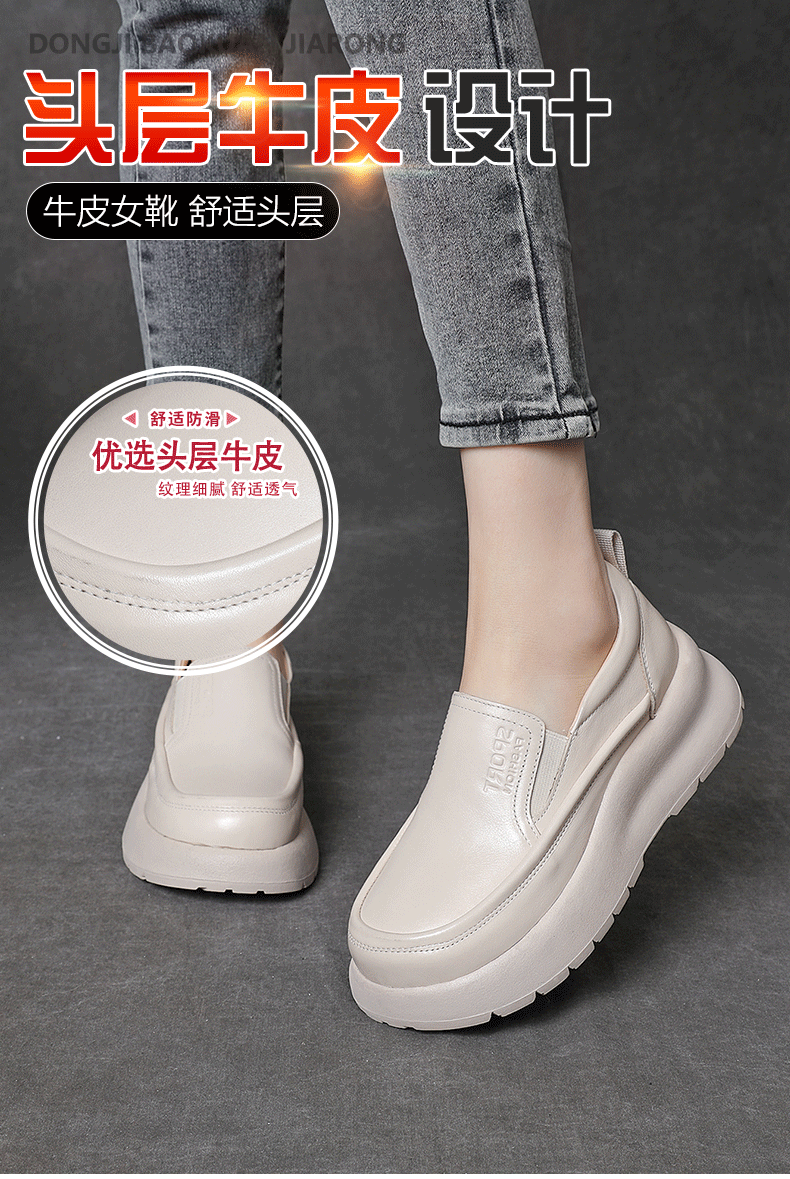 첫 번째 레이어 소 가죽 2024 봄 새로운 두꺼운 밑창 둥근 발가락 머핀 슬립 온 흰색 신발 로우 컷 싱글 레이어 신발 여성용스토어 가기