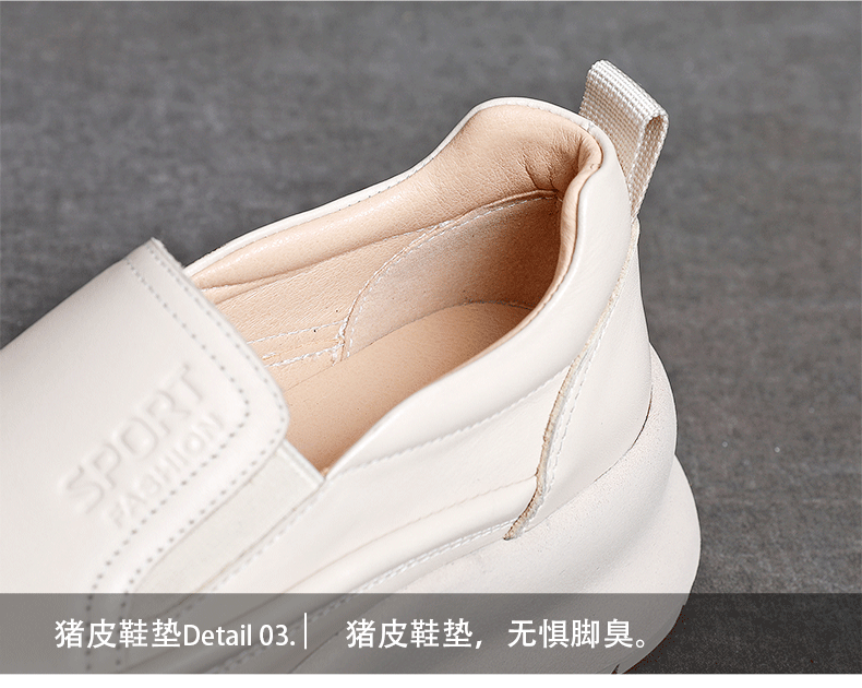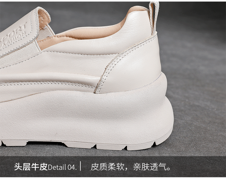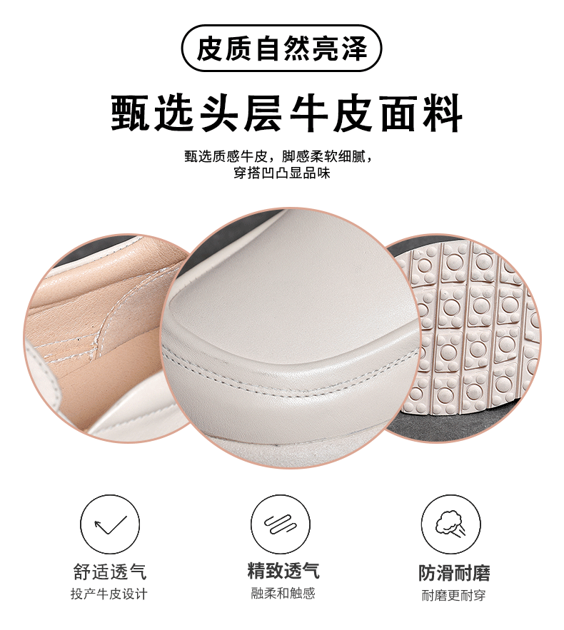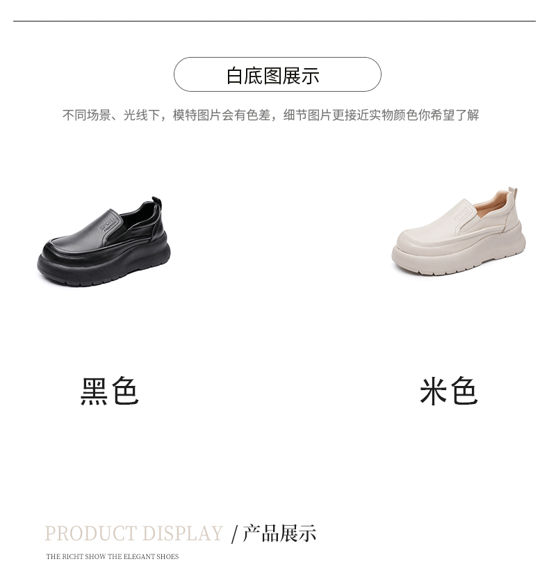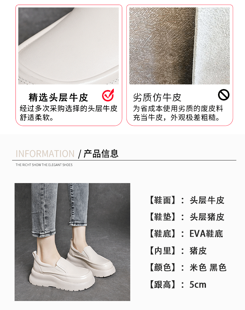 첫 번째 레이어 소 가죽 2024 봄 새로운 두꺼운 밑창 둥근 발가락 머핀 슬립 온 흰색 신발 로우 컷 싱글 레이어 신발 여성용스토어 가기
