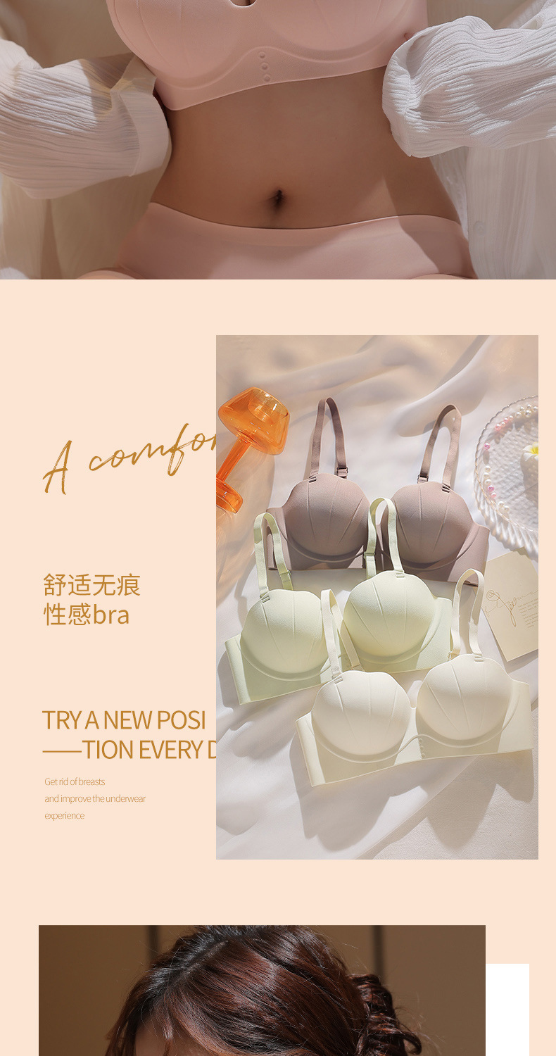 Glow Shell Palm Cup Traceless 속옷 여성용 푸시 업 캔디 간단한 통기성 편안한 원피스 브라스토어 가기