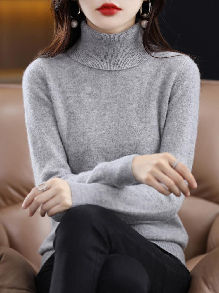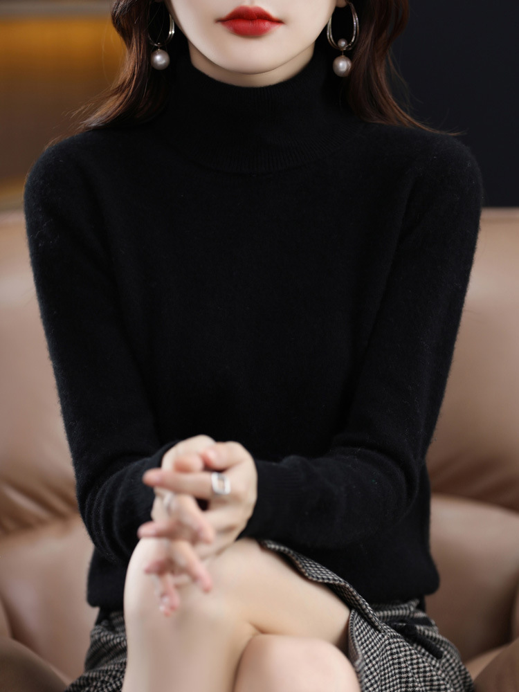 高领羊毛衫女士秋冬100纯羊毛打底衫宽松毛衣套头加厚羊绒针织衫