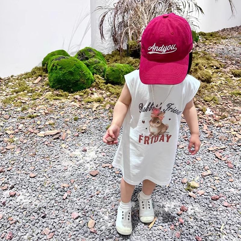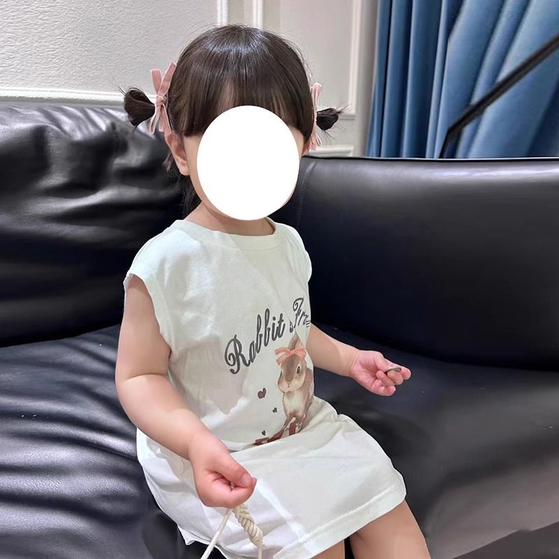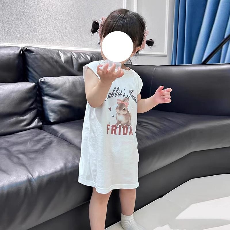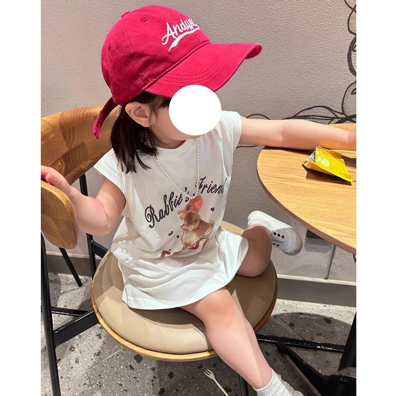 여자 여름 편안한 조끼 티셔츠 스커트 한국 민소매 만화 귀여운 어린이 원피스 패션 0075A020스토어 가기