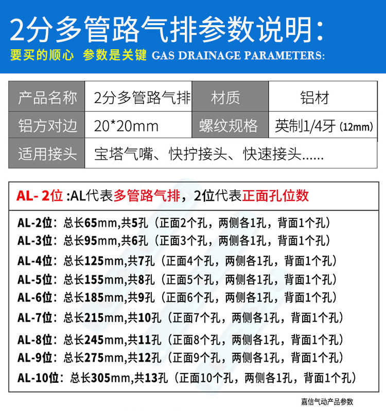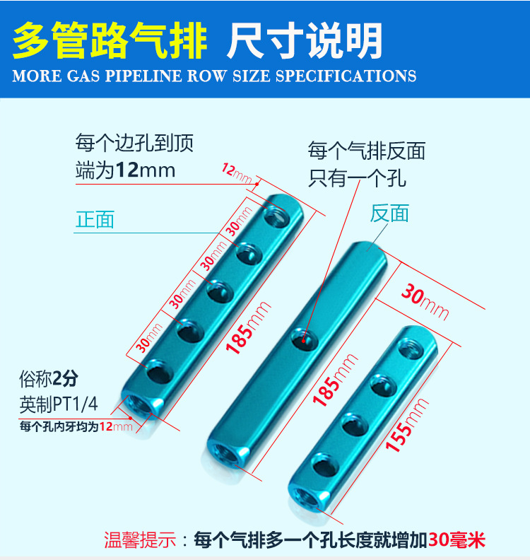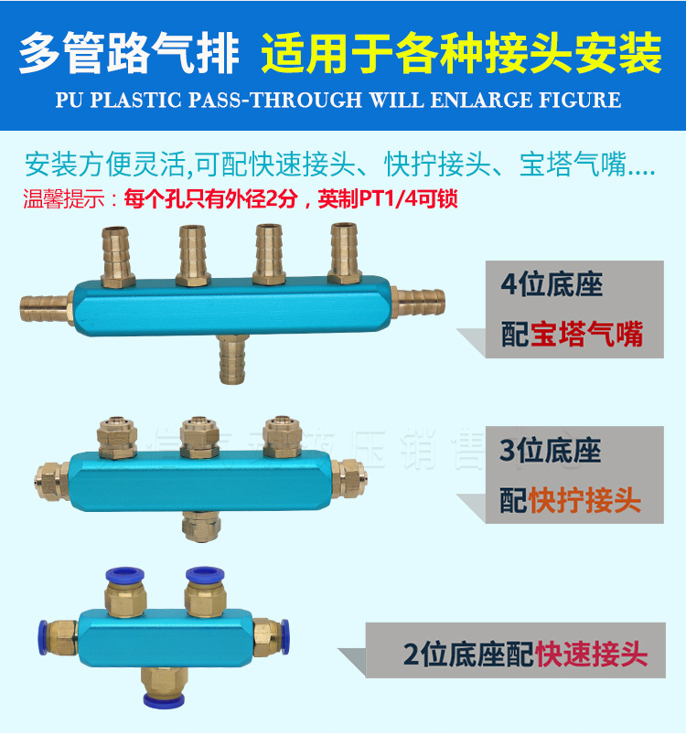 공압 다중 파이프 라인 가스 배기 파이프 빠른 커넥터 기본 다중 채널 수로 가스 분배기 알루미늄 스트립 2 점 가스 블록스토어 가기