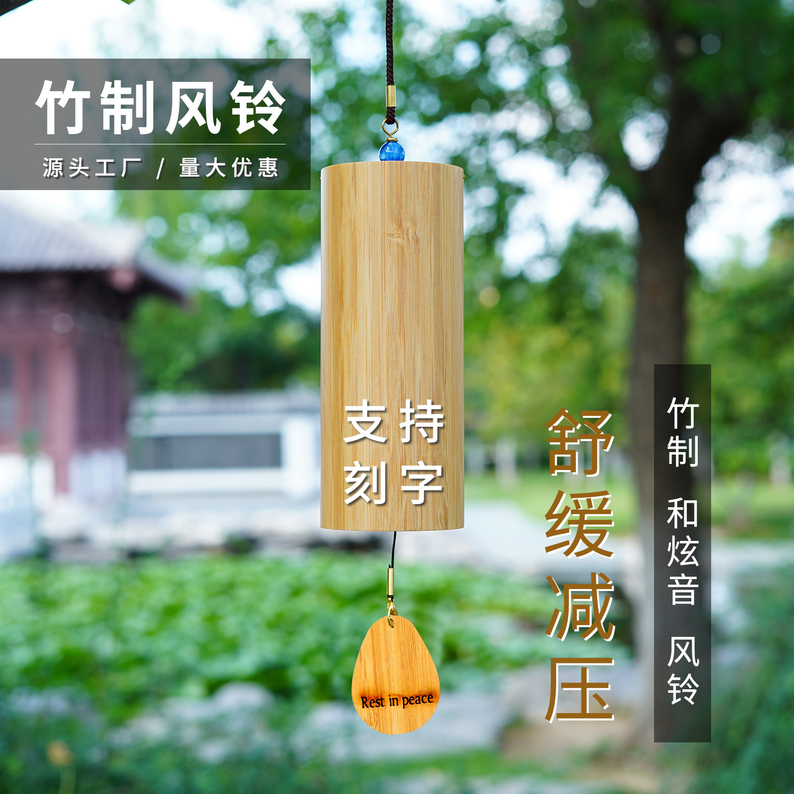 공장 재고 마당 바람 차임 일본 손 바람 차임 요가 치유 레트로 나무 화음 홈스테이 대나무 바람 차임스토어 가기