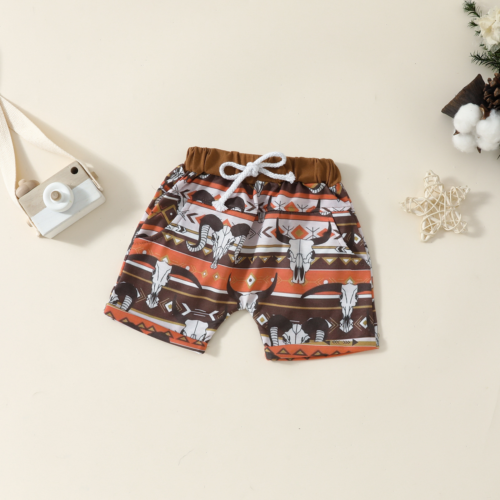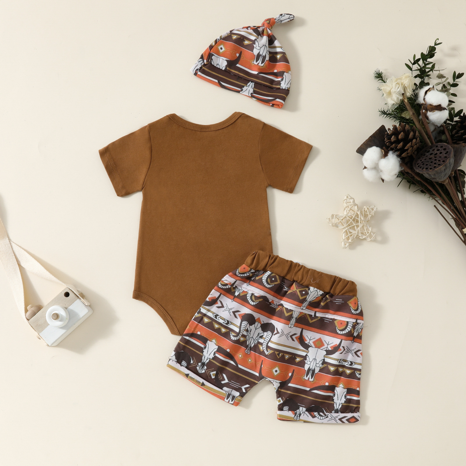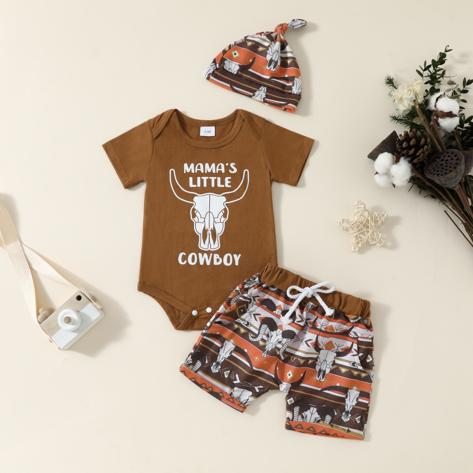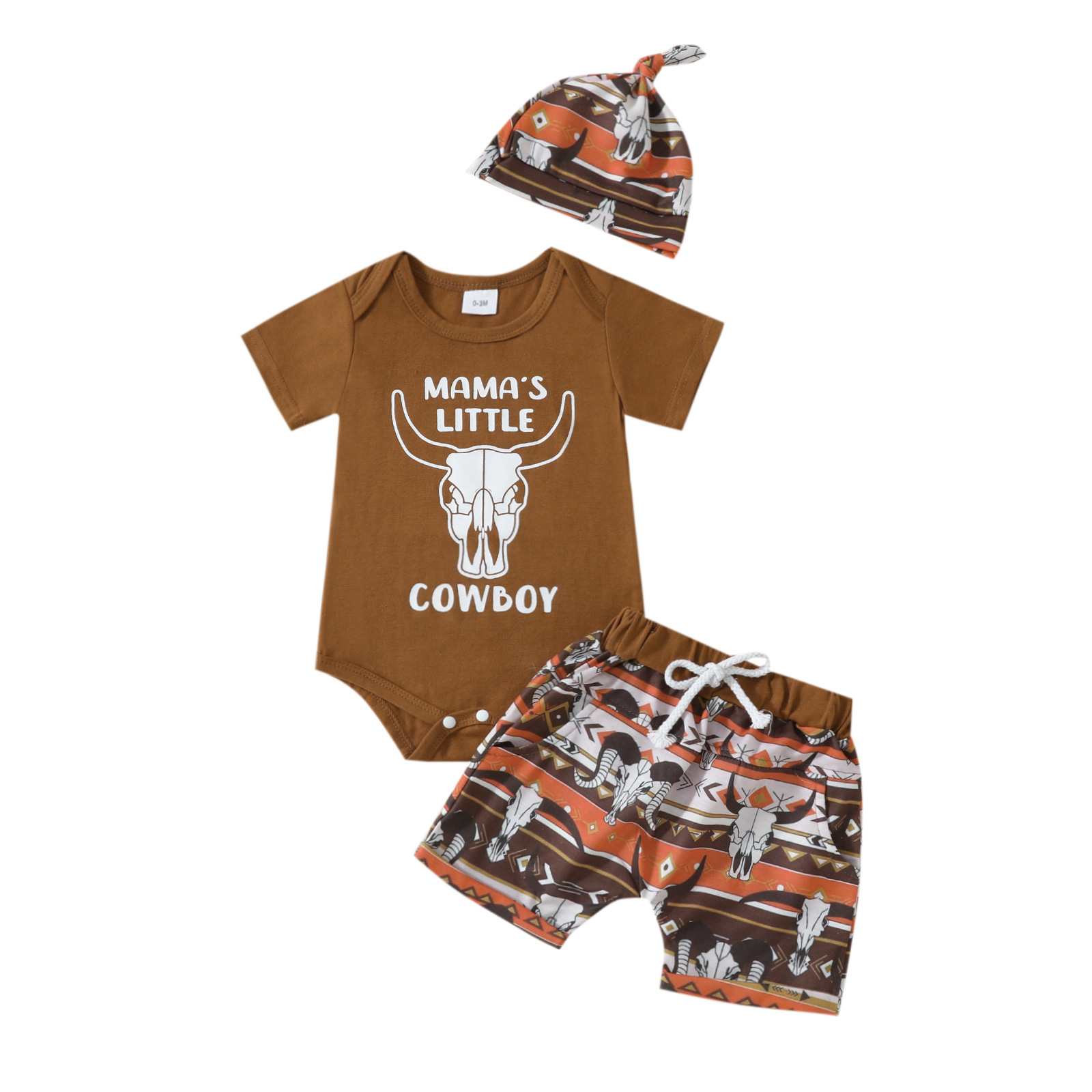 아마존 새로운 아기 편지 소 머리 인쇄 짧은 소매 romper 소 머리 인쇄 반바지 소년 세트