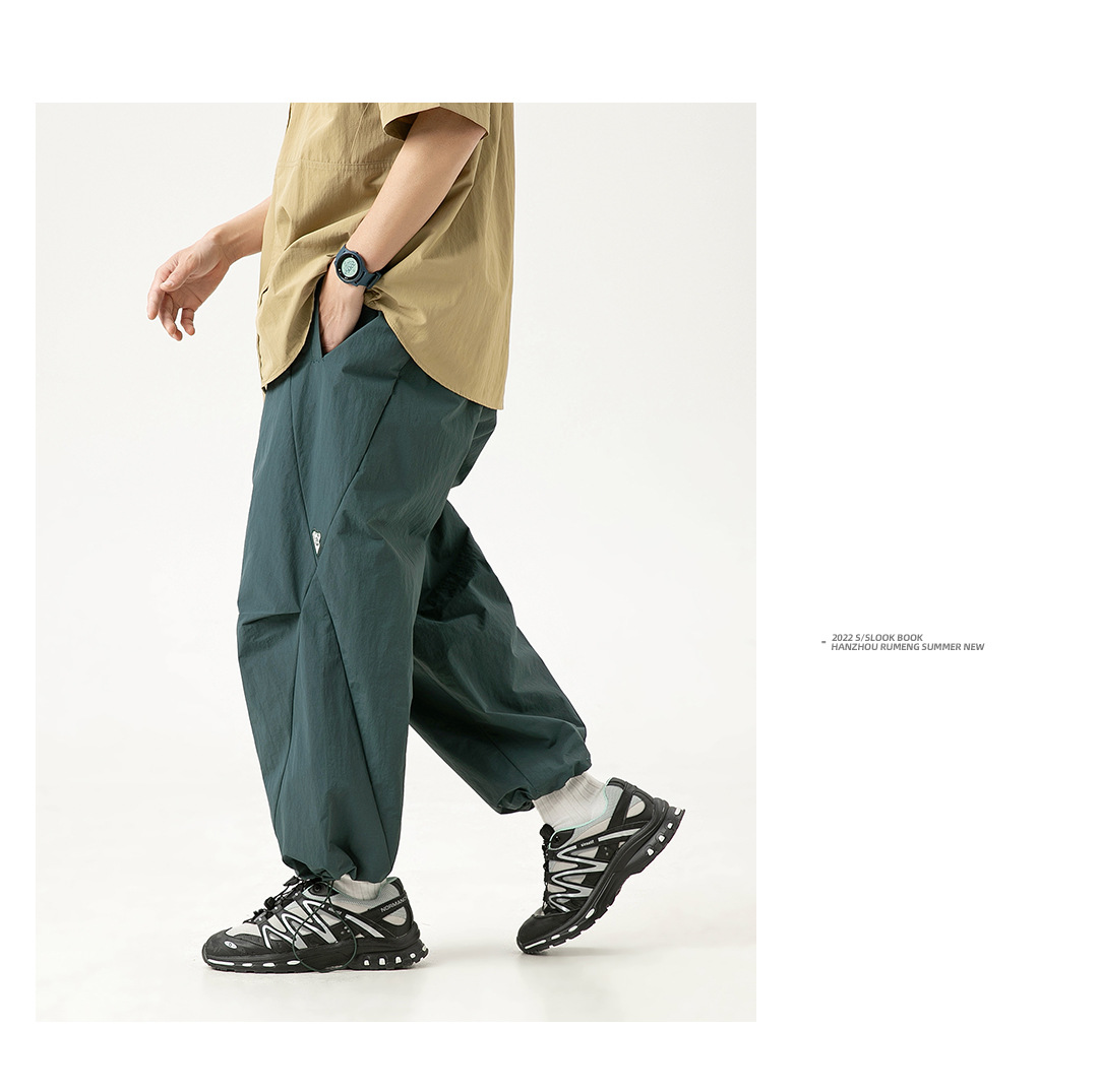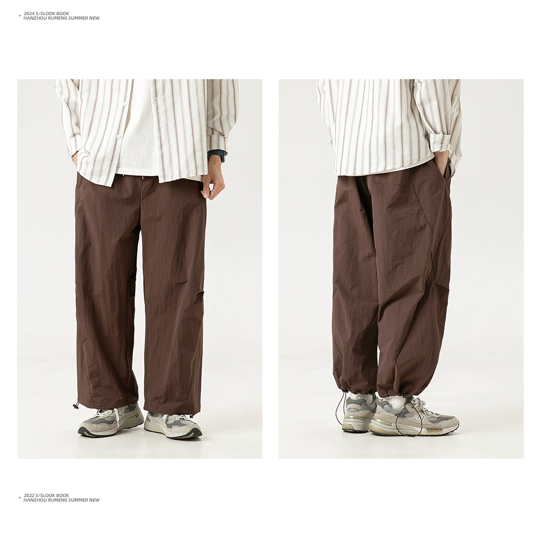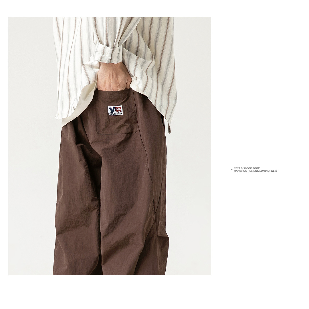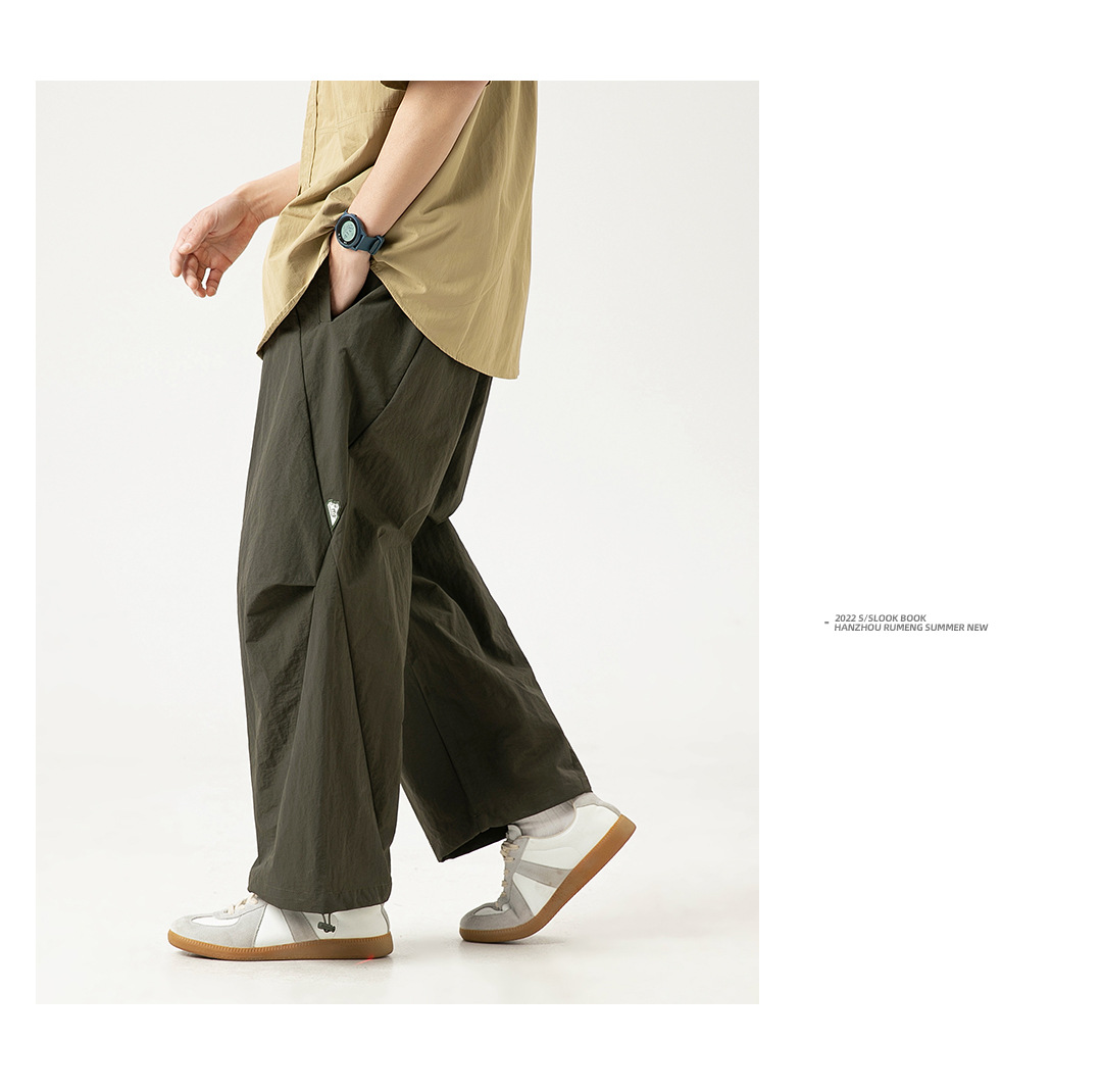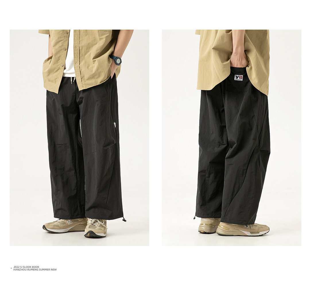 Ru-Meng-일본 패션 브랜드 야외 스포츠 솔리드 컬러 와이드 레그 크라우드 라인 바지 남성 레트로 스트리트 루즈 스트레이트 올 매치 바지스토어 가기