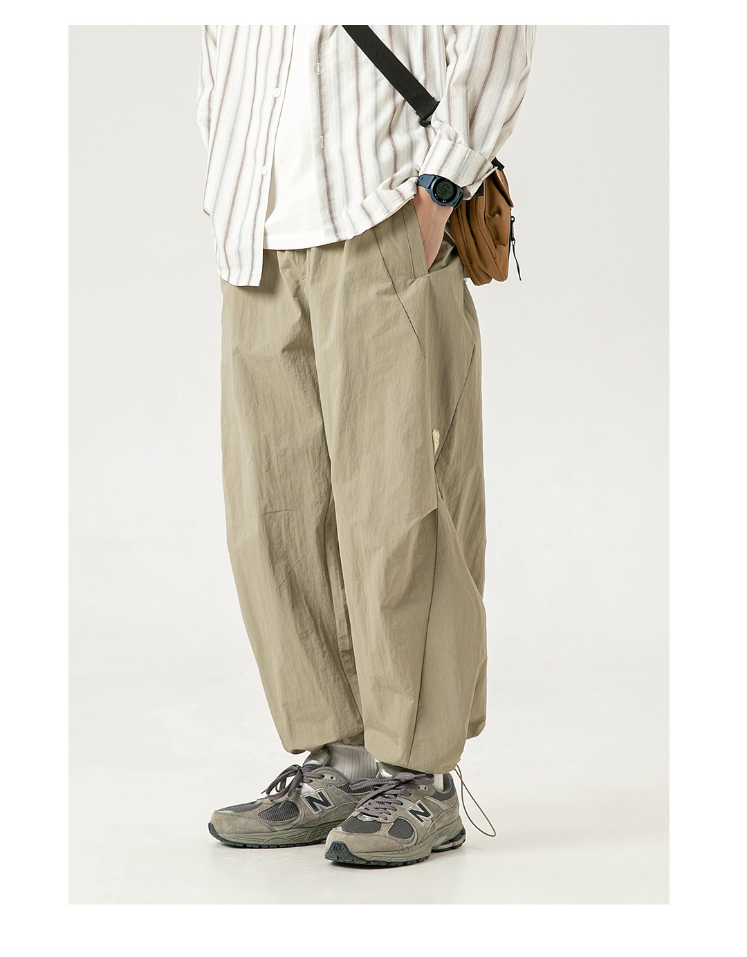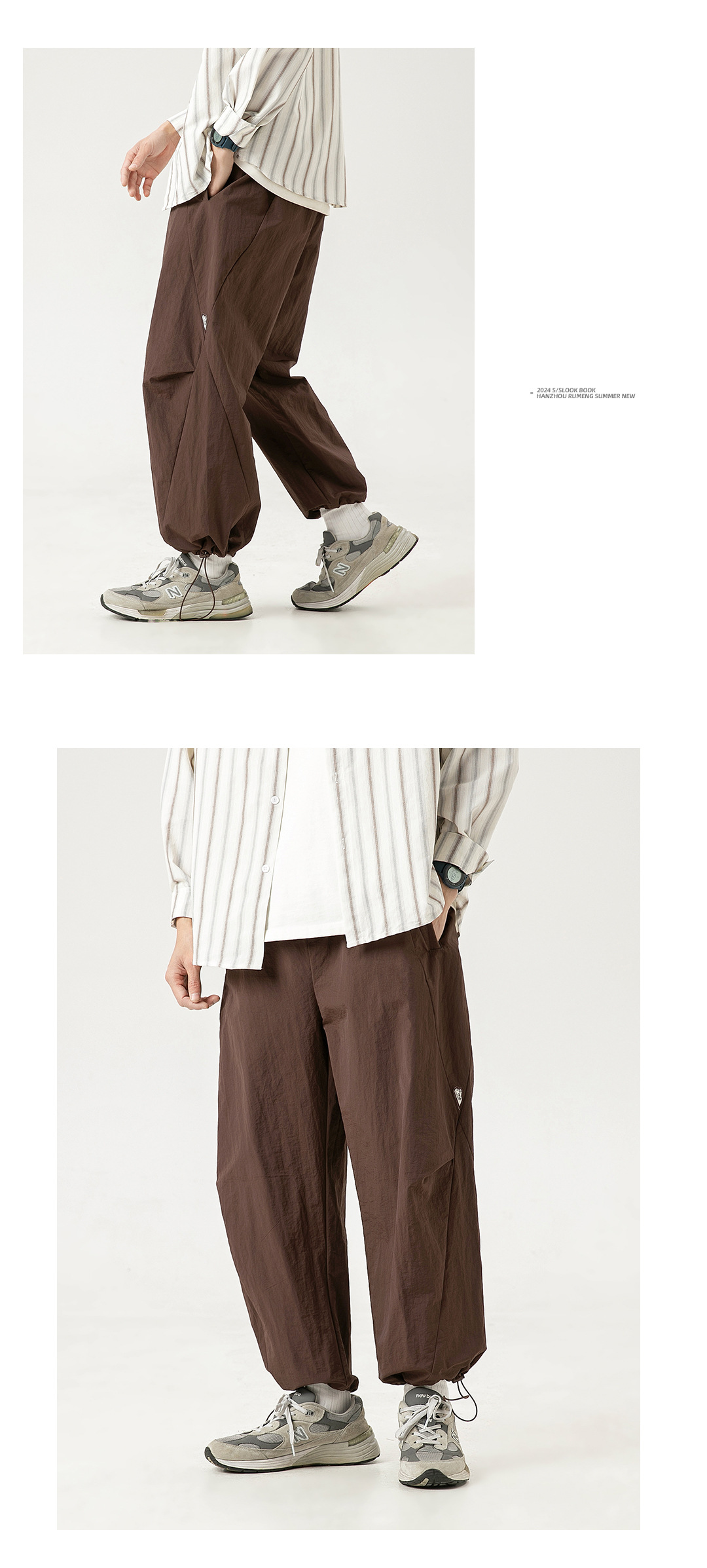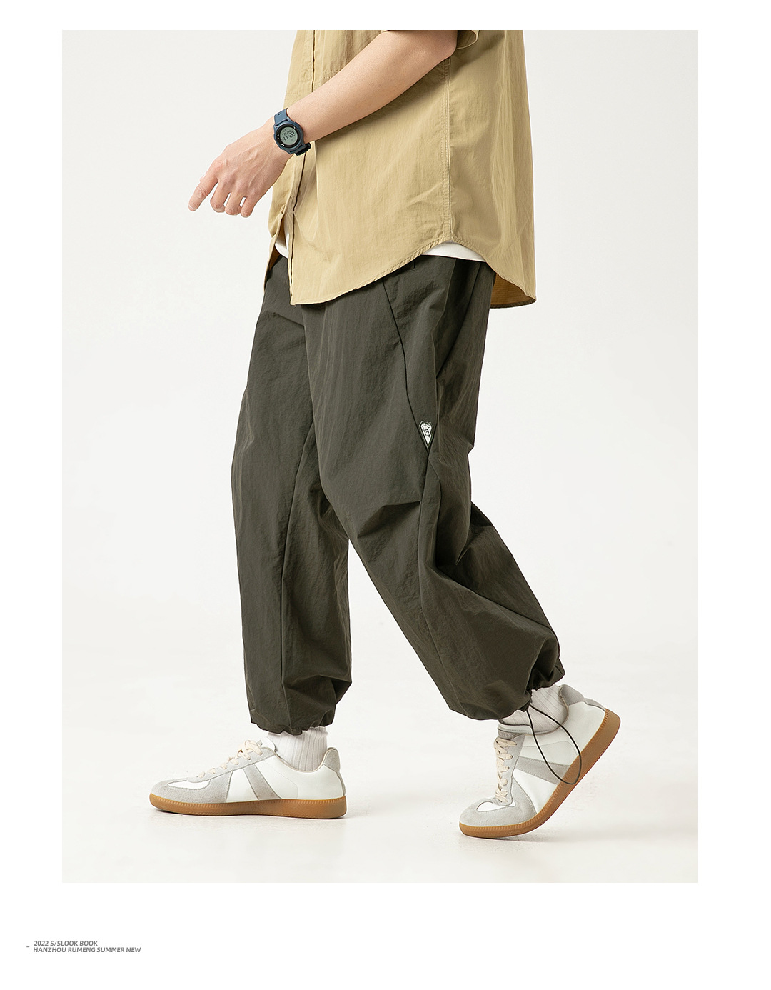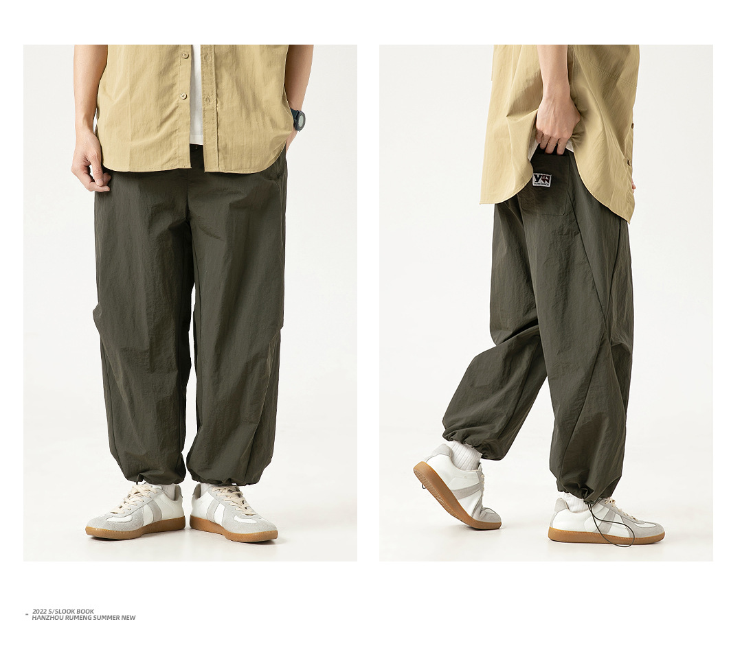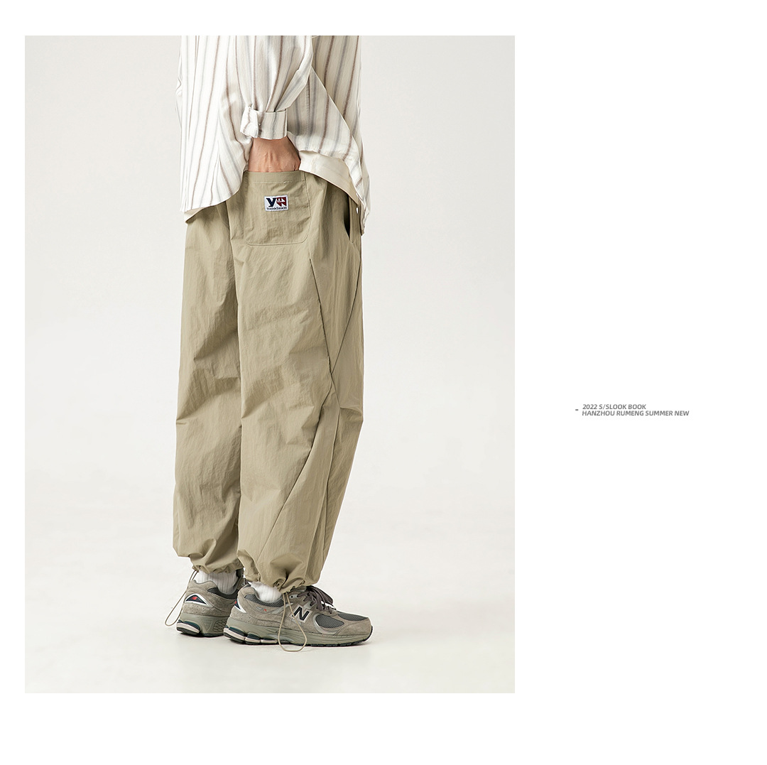 Ru-Meng-일본 패션 브랜드 야외 스포츠 솔리드 컬러 와이드 레그 크라우드 라인 바지 남성 레트로 스트리트 루즈 스트레이트 올 매치 바지스토어 가기