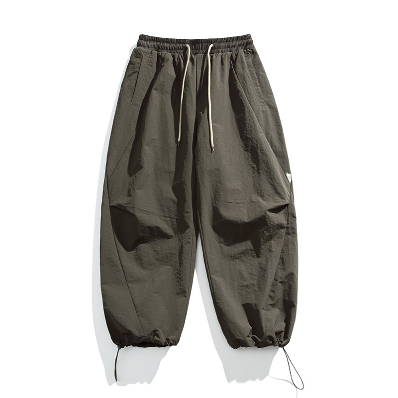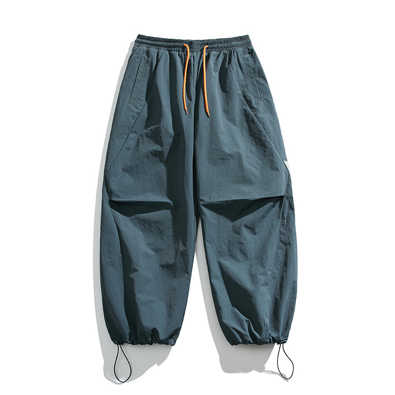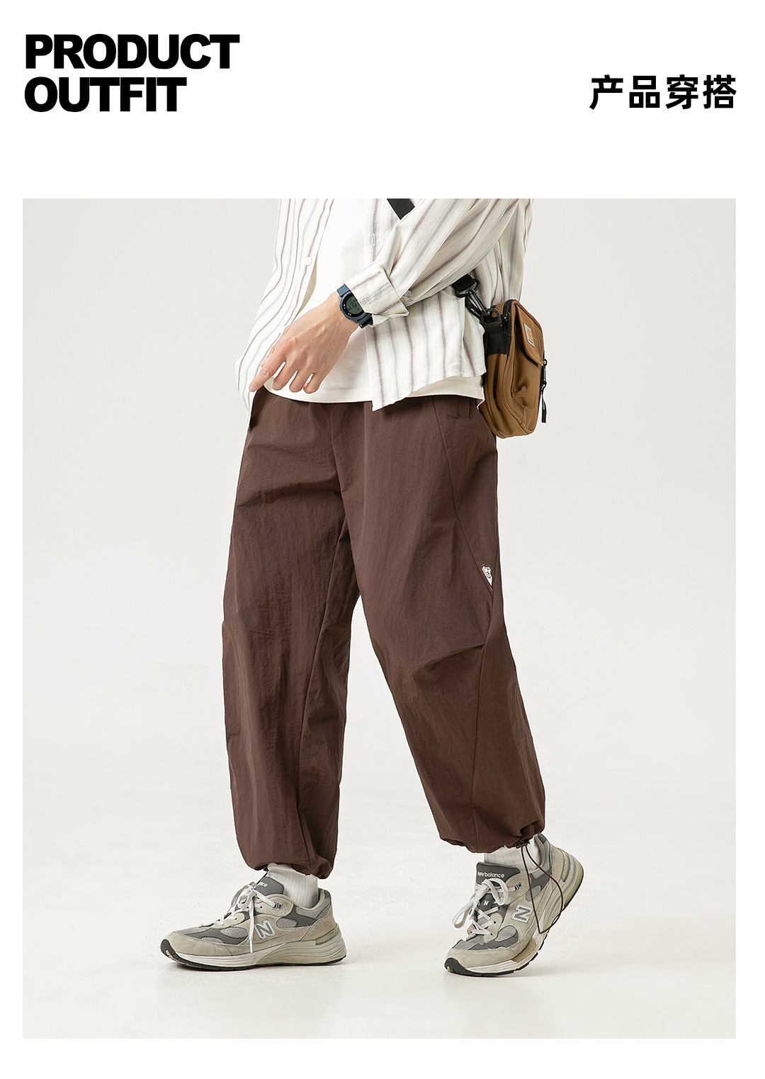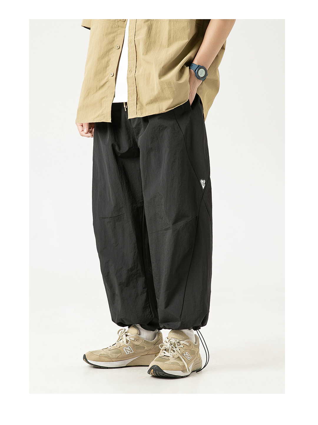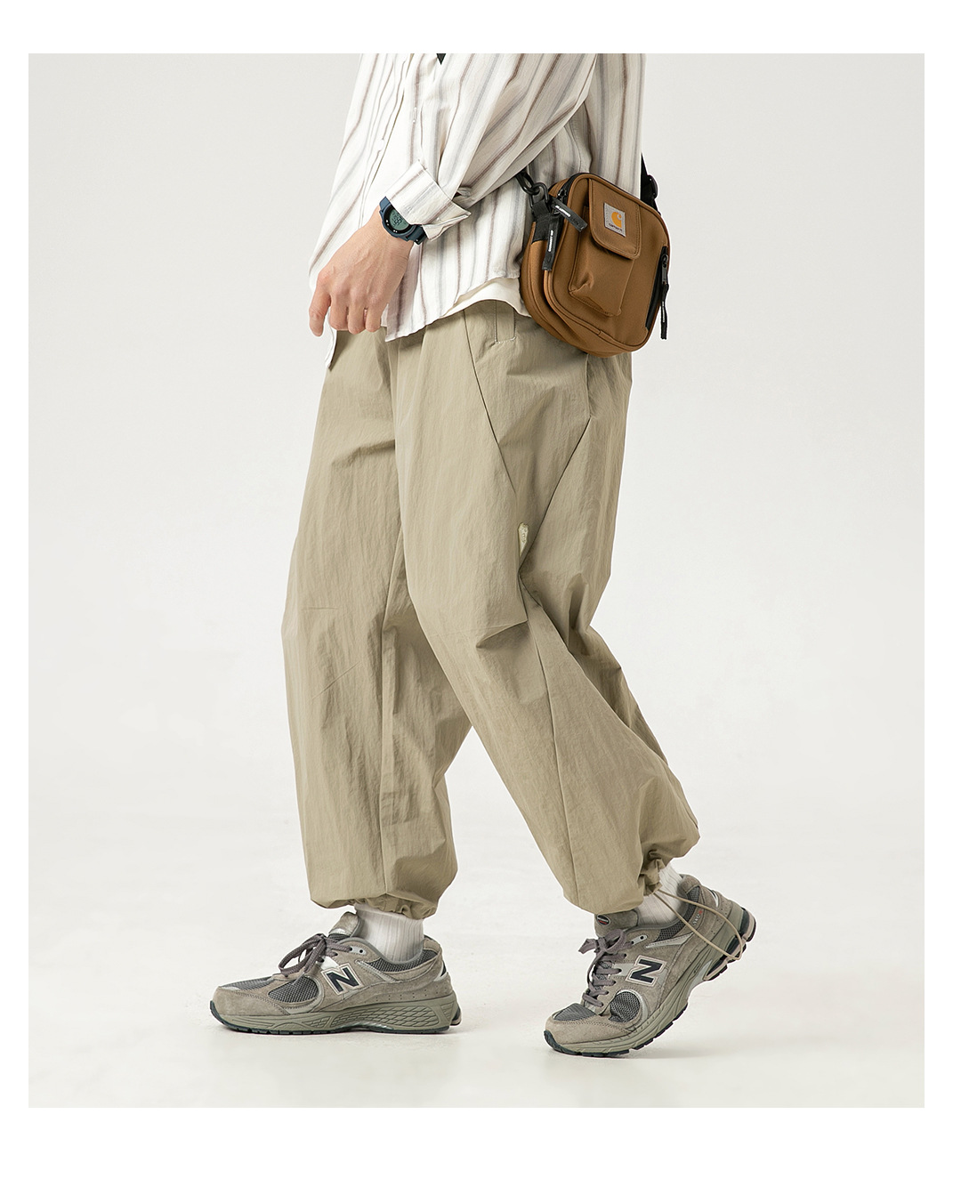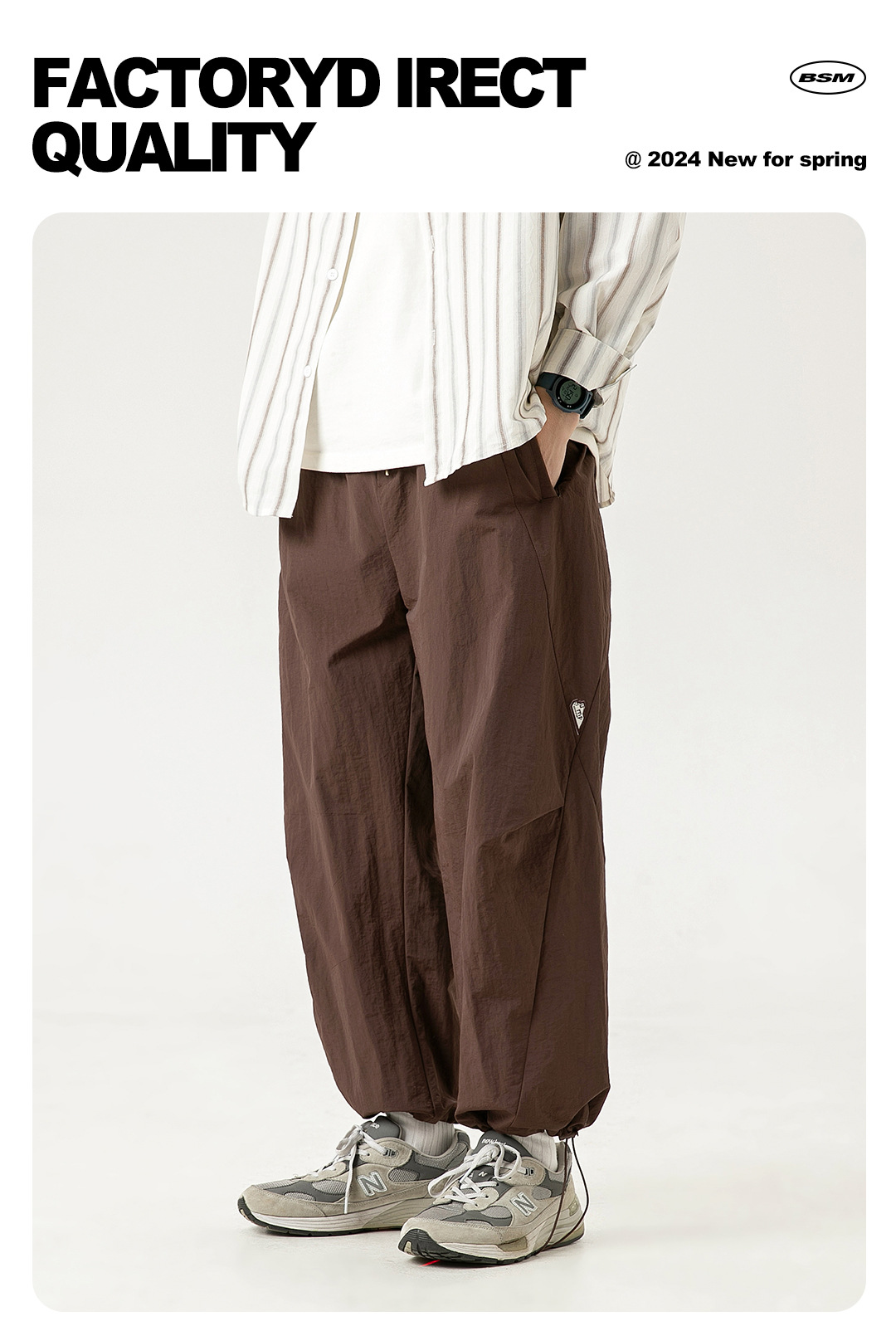 Ru-Meng-일본 패션 브랜드 야외 스포츠 솔리드 컬러 와이드 레그 크라우드 라인 바지 남성 레트로 스트리트 루즈 스트레이트 올 매치 바지스토어 가기