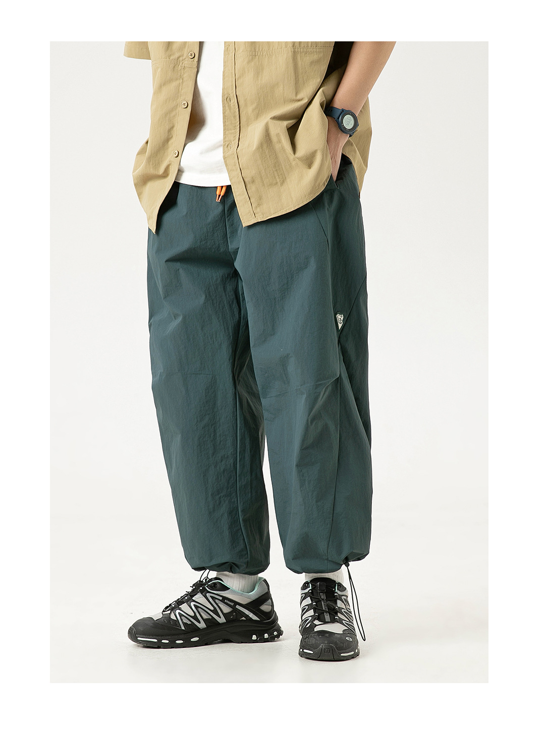 Ru-Meng-일본 패션 브랜드 야외 스포츠 솔리드 컬러 와이드 레그 크라우드 라인 바지 남성 레트로 스트리트 루즈 스트레이트 올 매치 바지