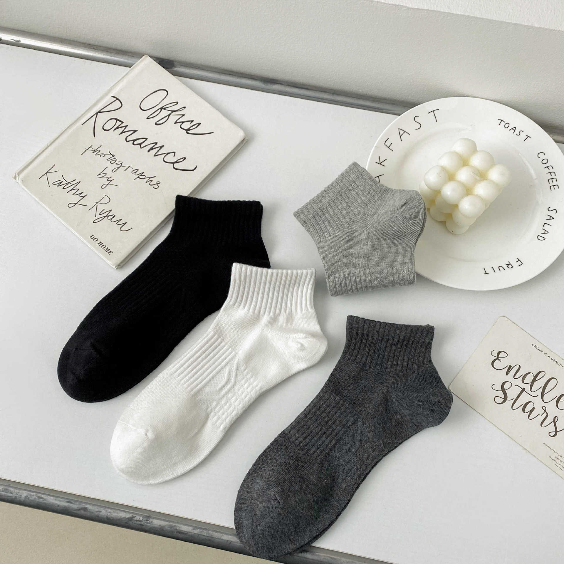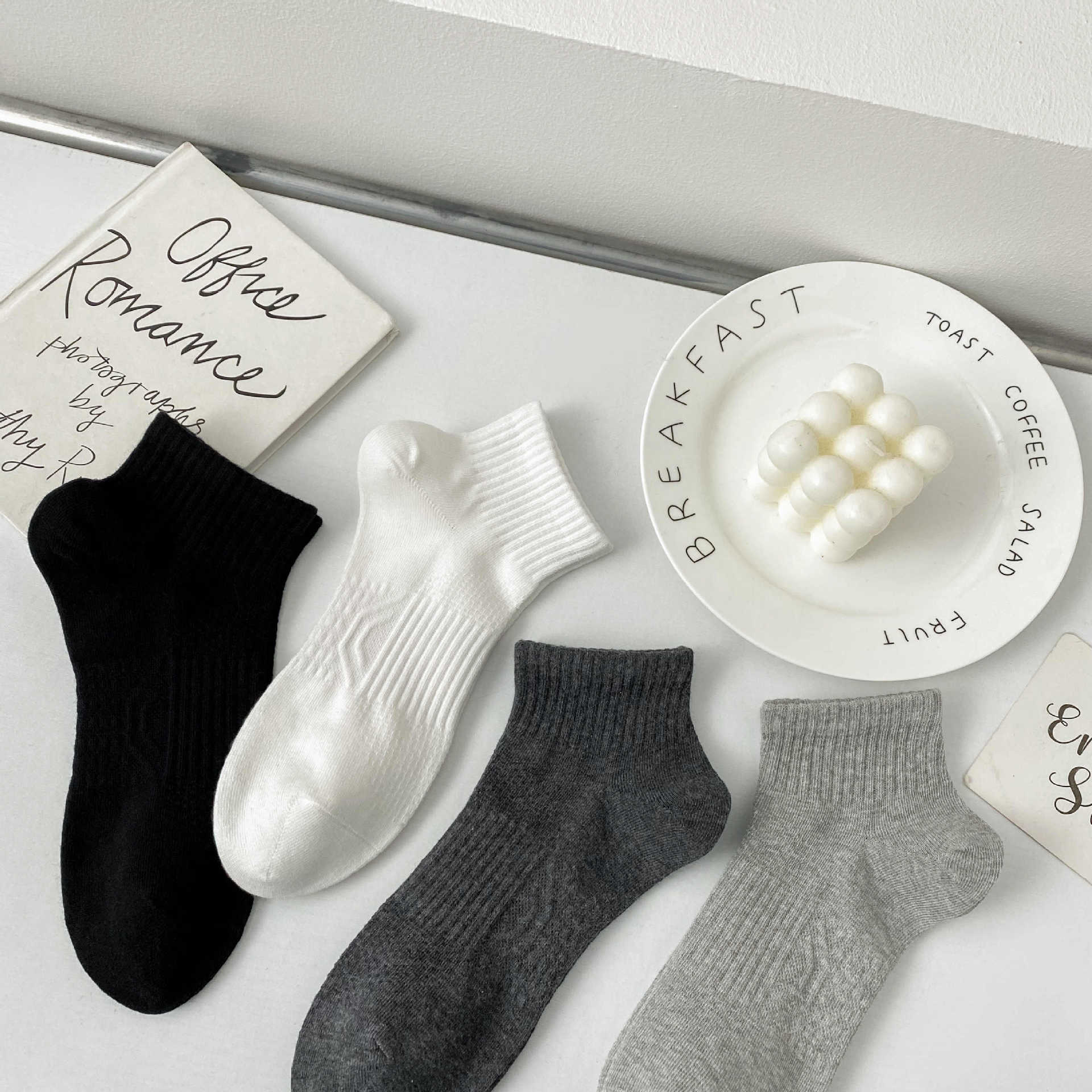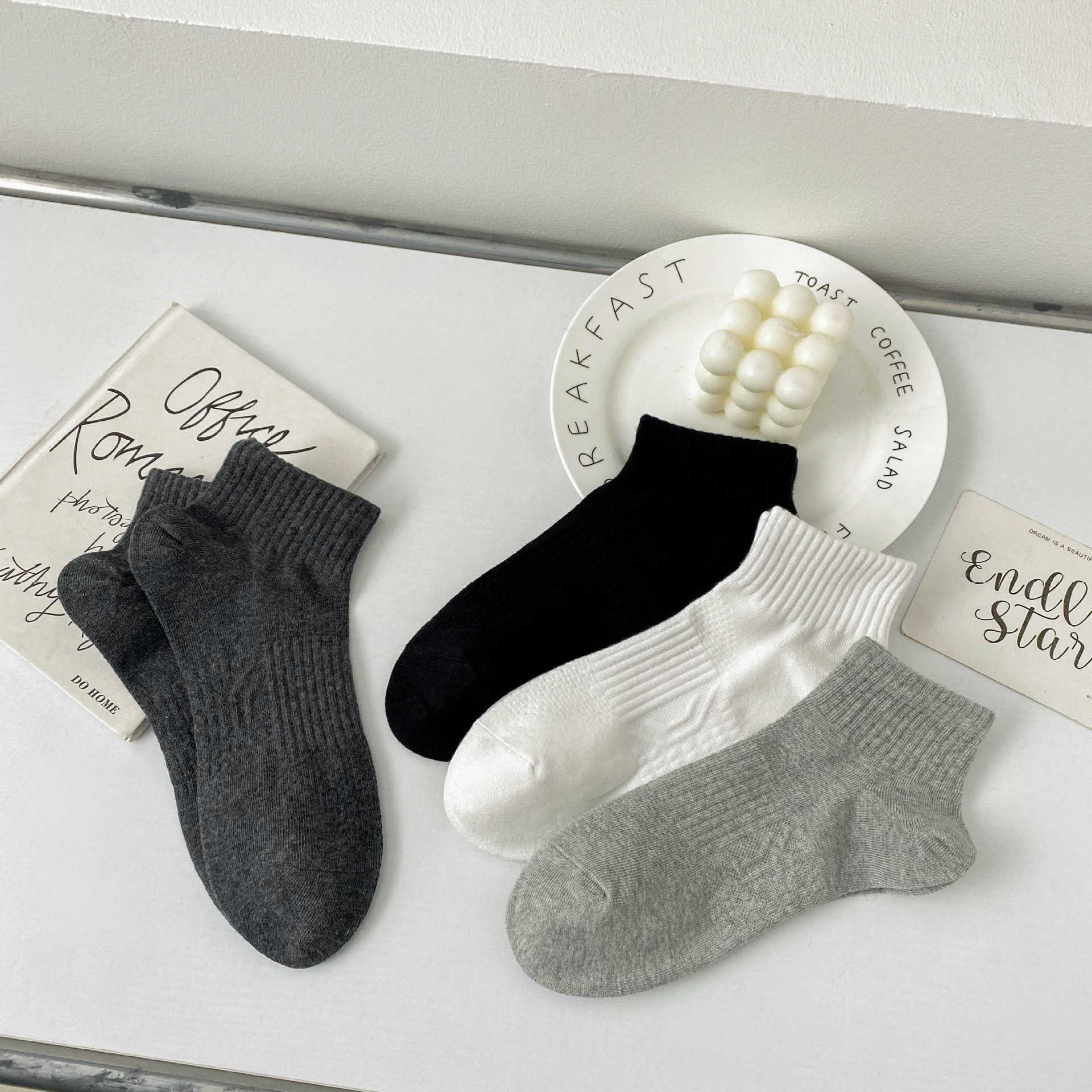 2024 남성 양말 봄과 여름 새로운 빗질 코튼 단색 허리에 묶인 기본 땀 흡수성 통기성 남성 스포츠 양말 보트 양말