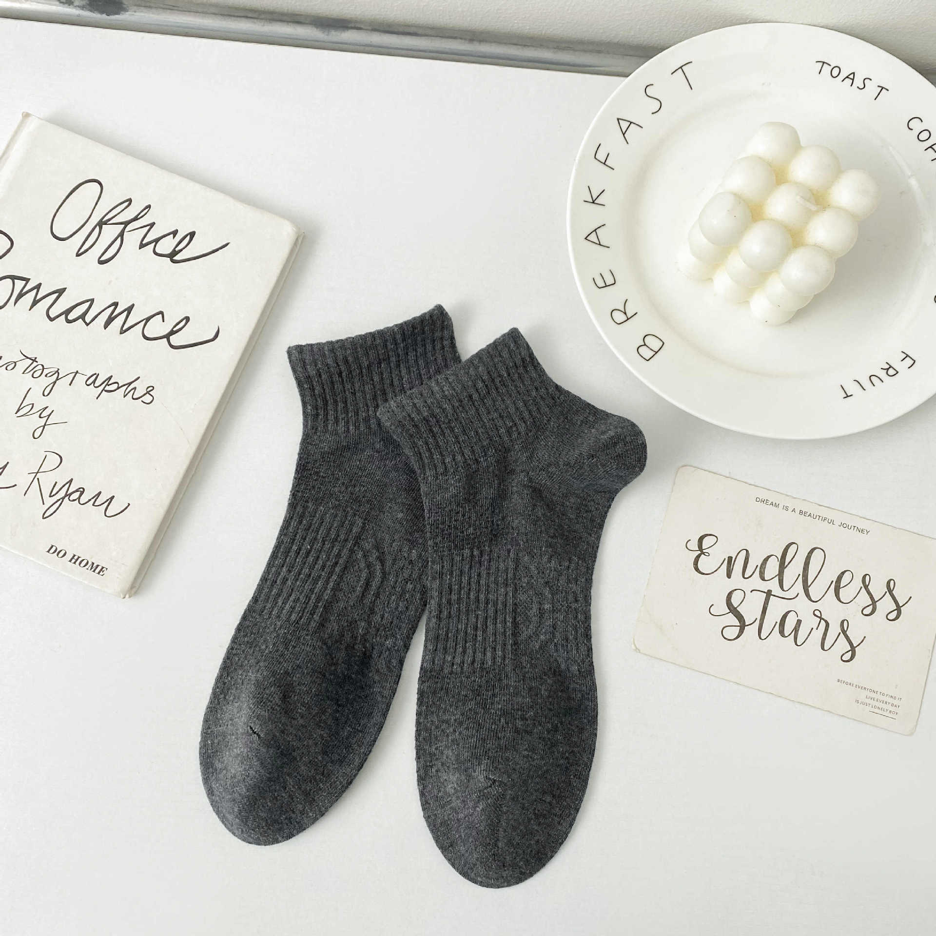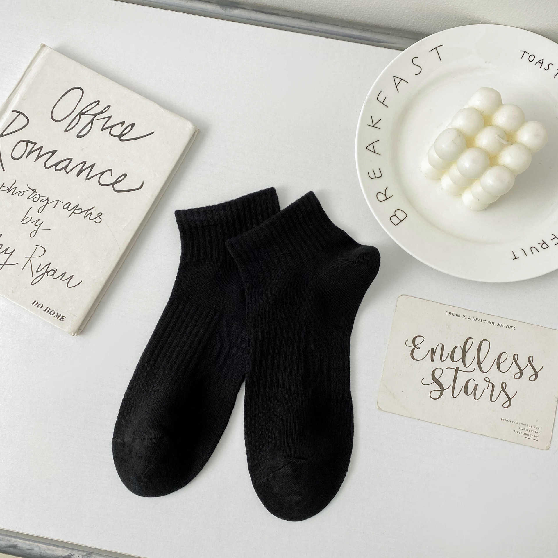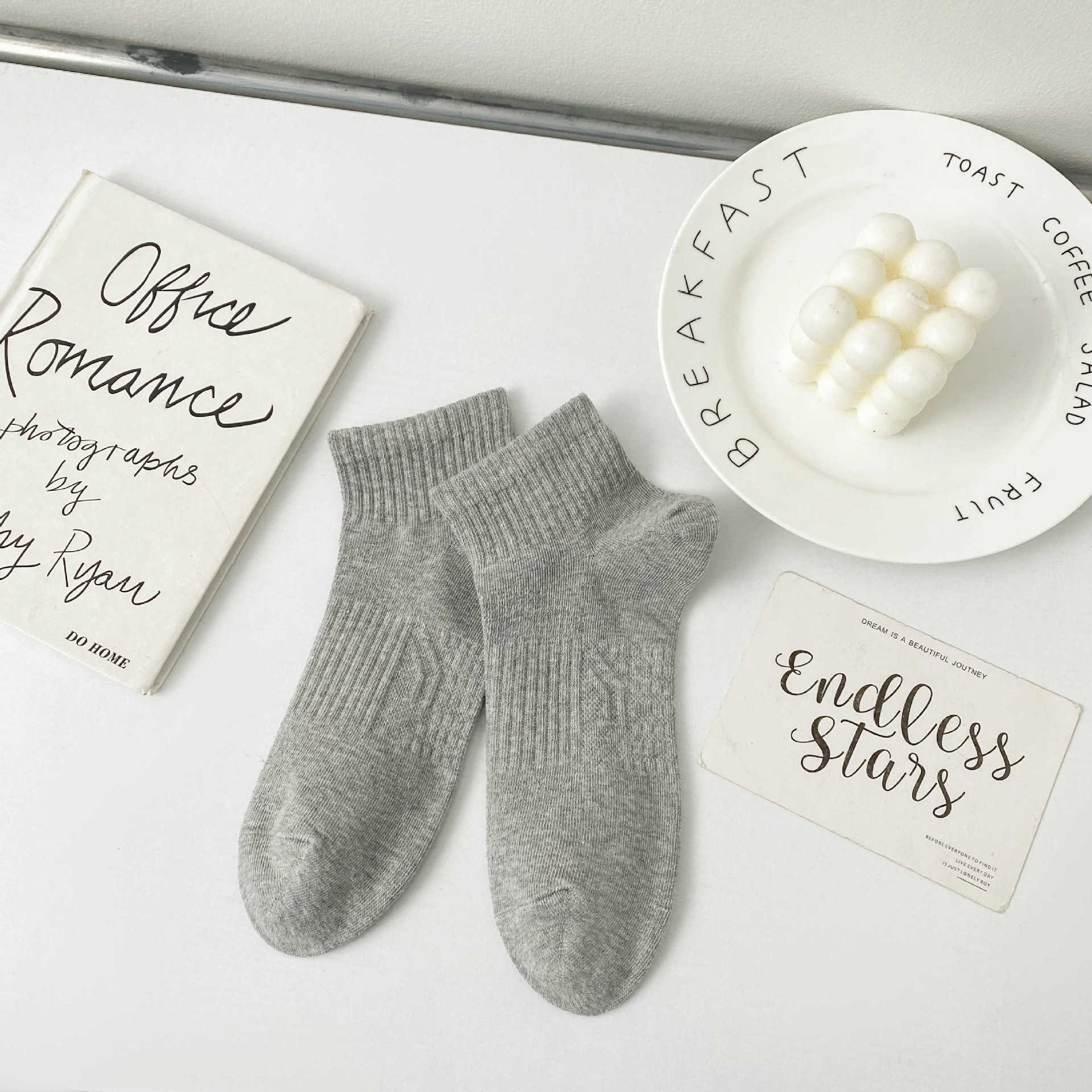 2024 남성 양말 봄과 여름 새로운 빗질 코튼 단색 허리에 묶인 기본 땀 흡수성 통기성 남성 스포츠 양말 보트 양말