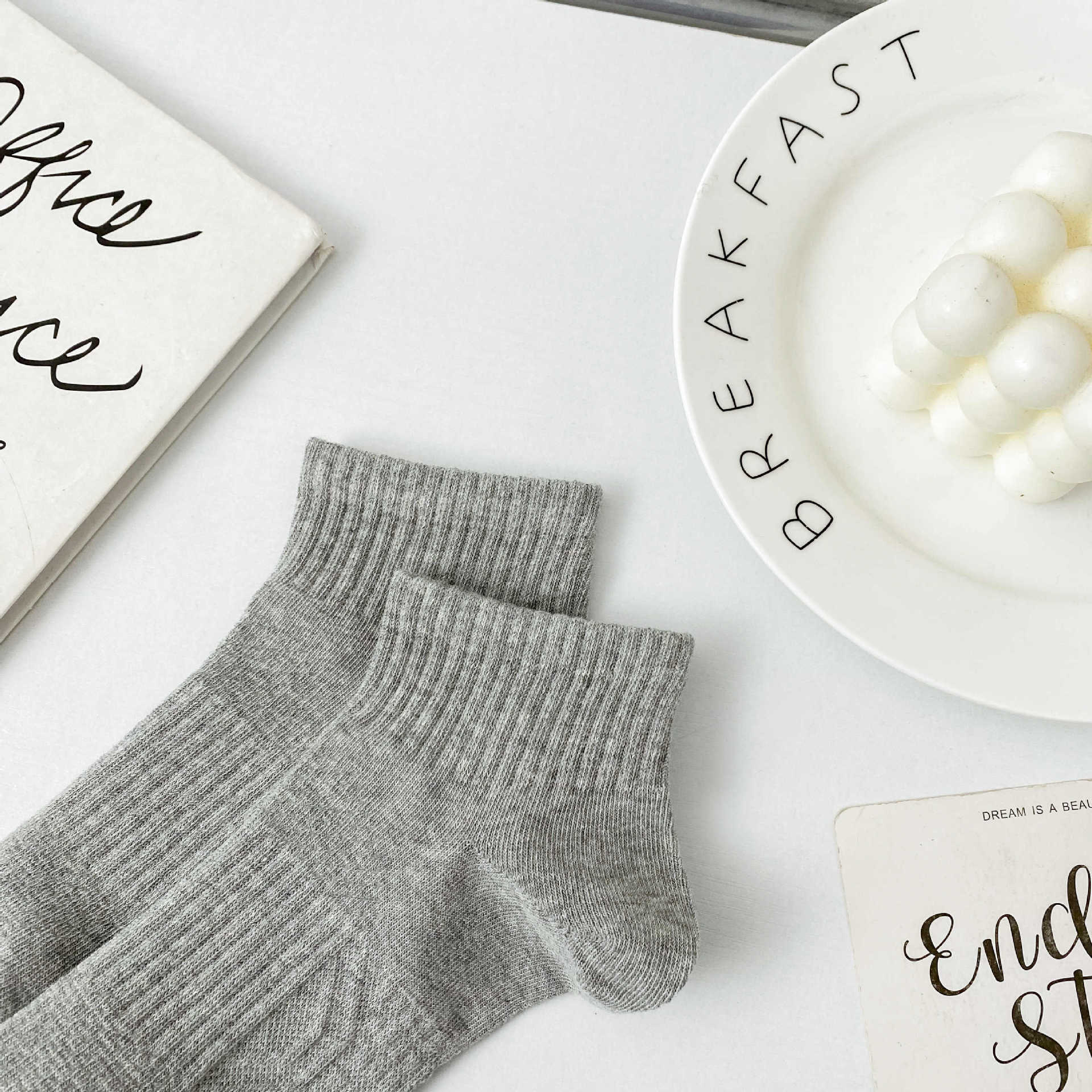 2024 남성 양말 봄과 여름 새로운 빗질 코튼 단색 허리에 묶인 기본 땀 흡수성 통기성 남성 스포츠 양말 보트 양말스토어 가기