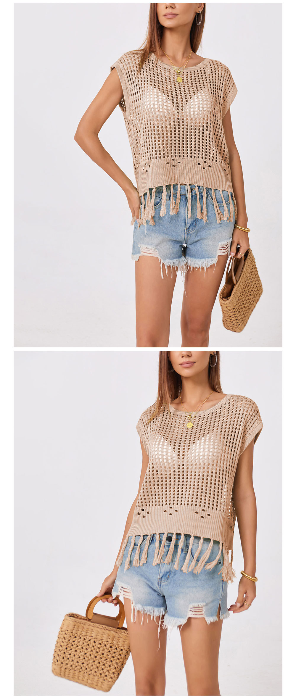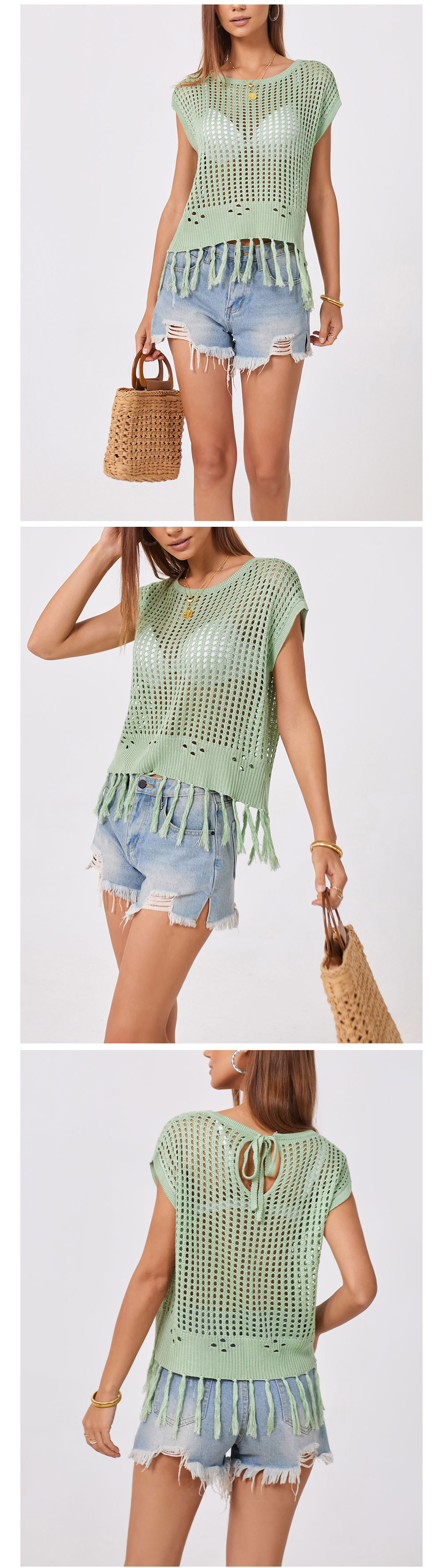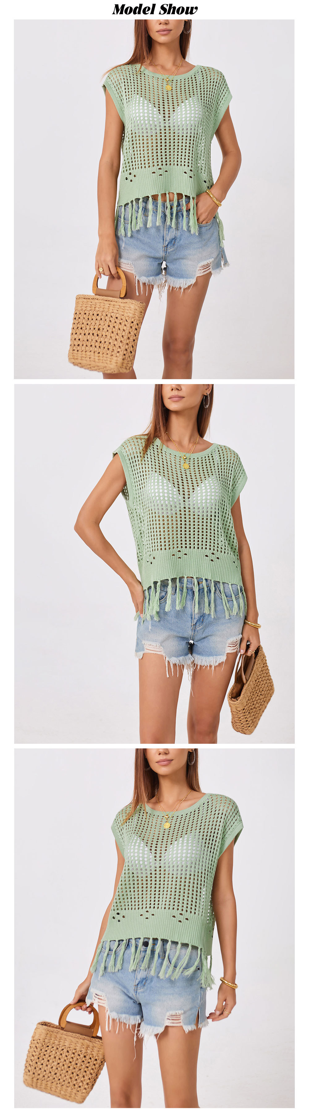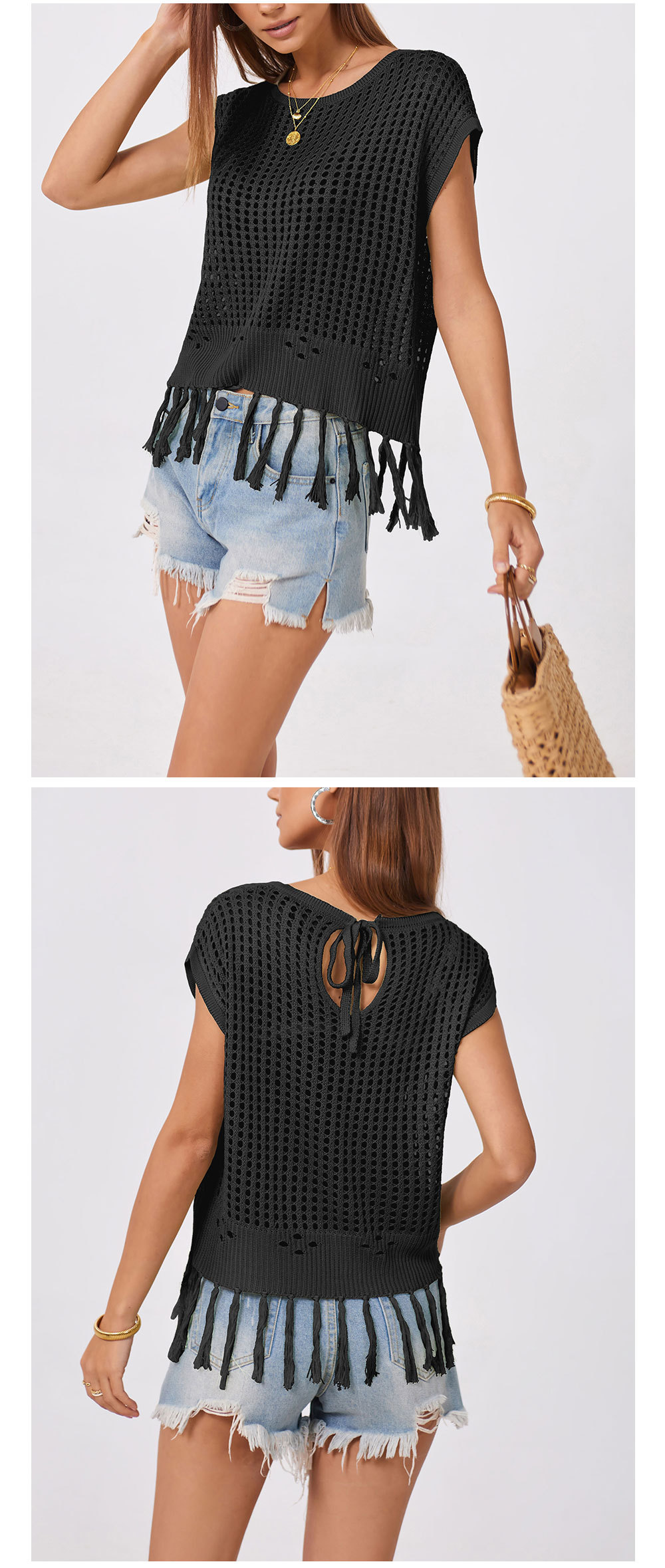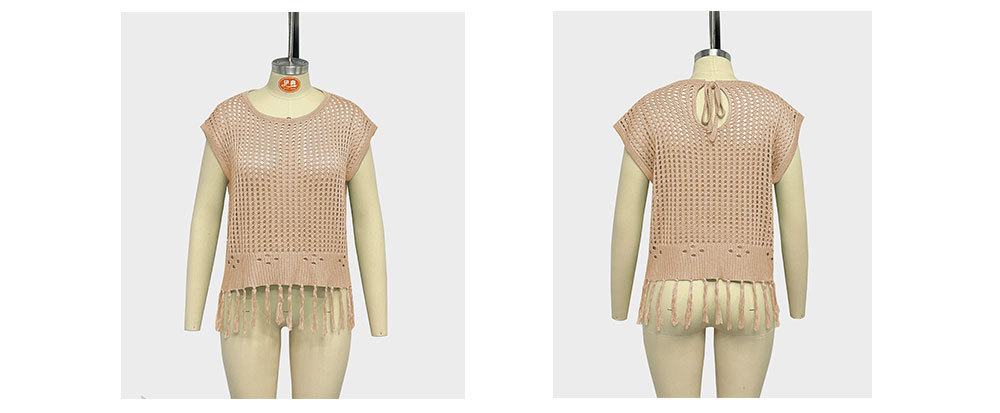 2024 국경 간 여름 아마존 새로운 유럽과 미국의 휴가 수제 술 느슨한 둥근 목 속이 빈 여성용 스웨터스토어 가기