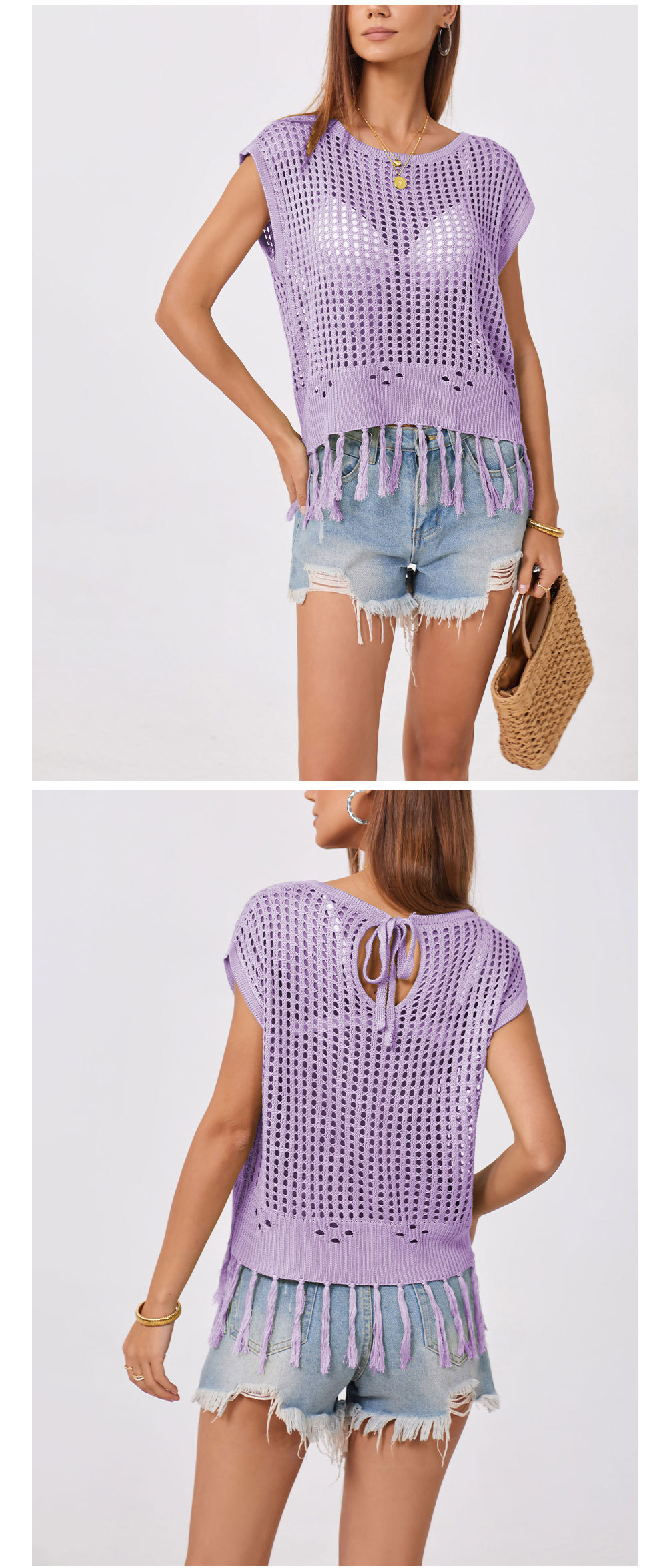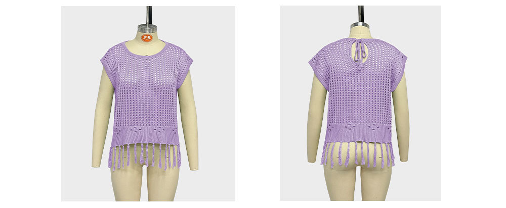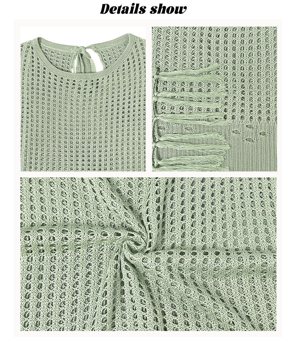 2024 국경 간 여름 아마존 새로운 유럽과 미국의 휴가 수제 술 느슨한 둥근 목 속이 빈 여성용 스웨터