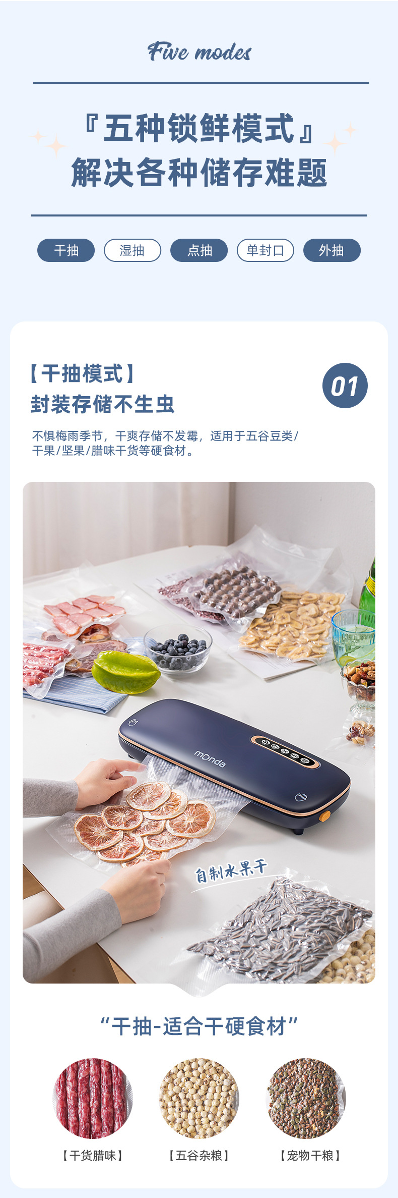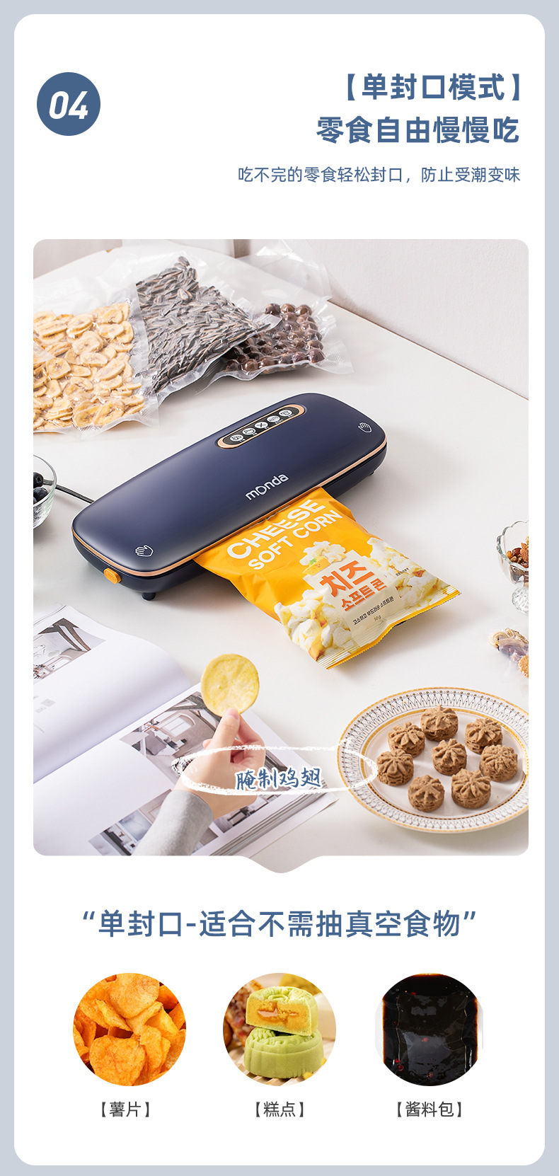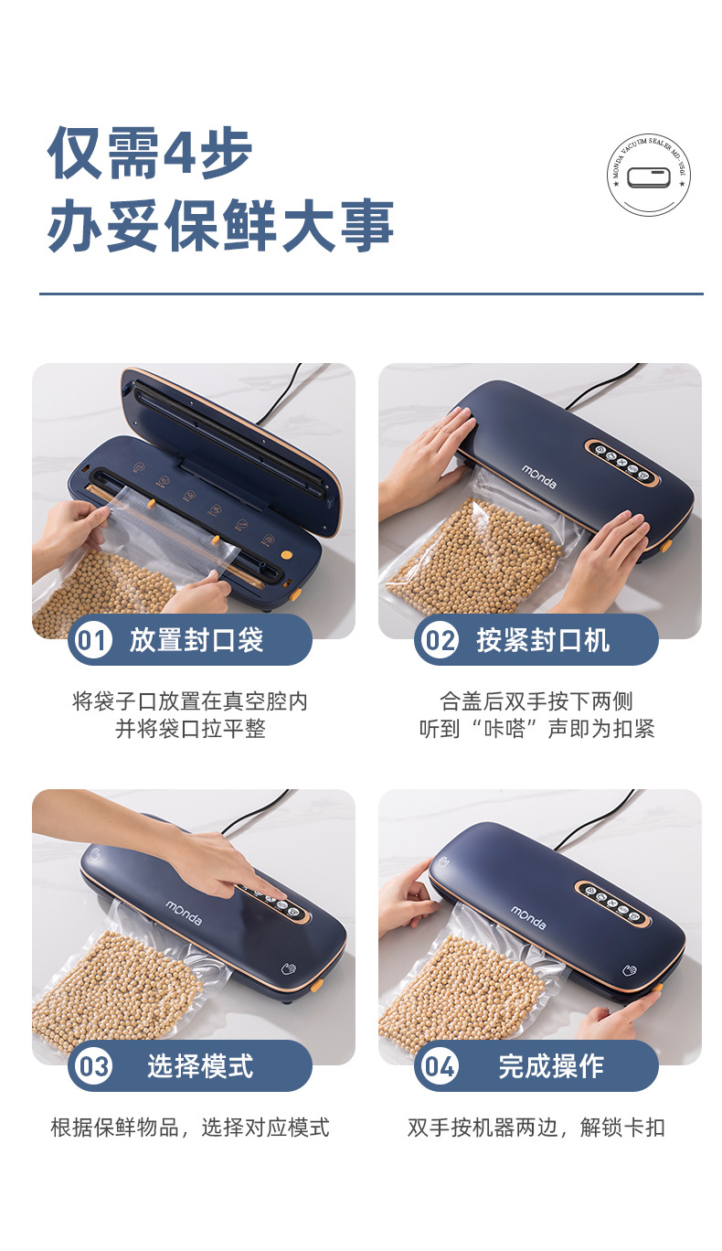 monda monda 진공 밀봉 기계 소형 가정용 신선 유지 플라스틱 밀봉 압축 진공 식품 포장 완전 자동스토어 가기
