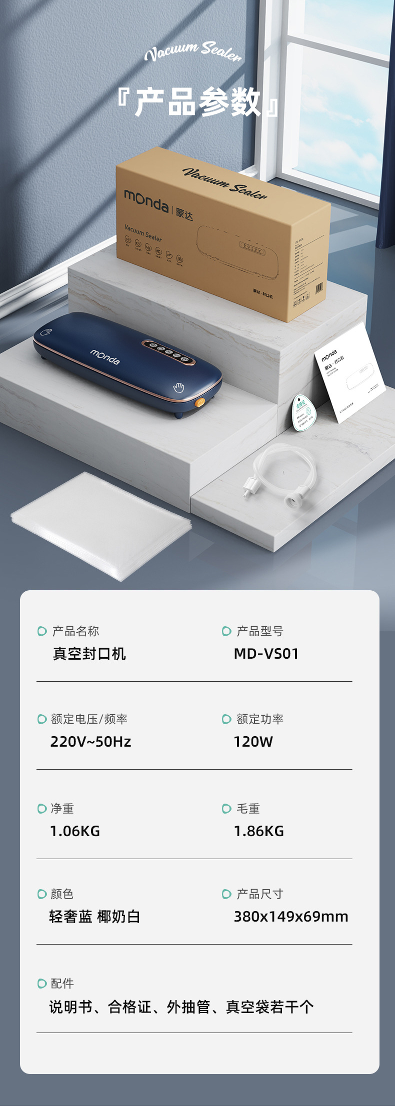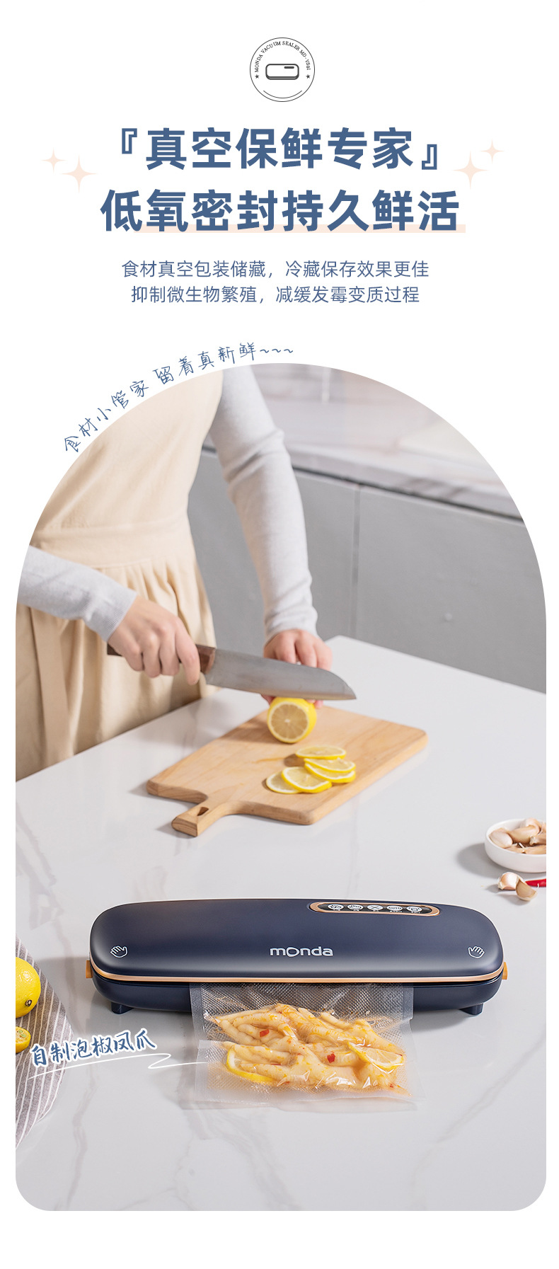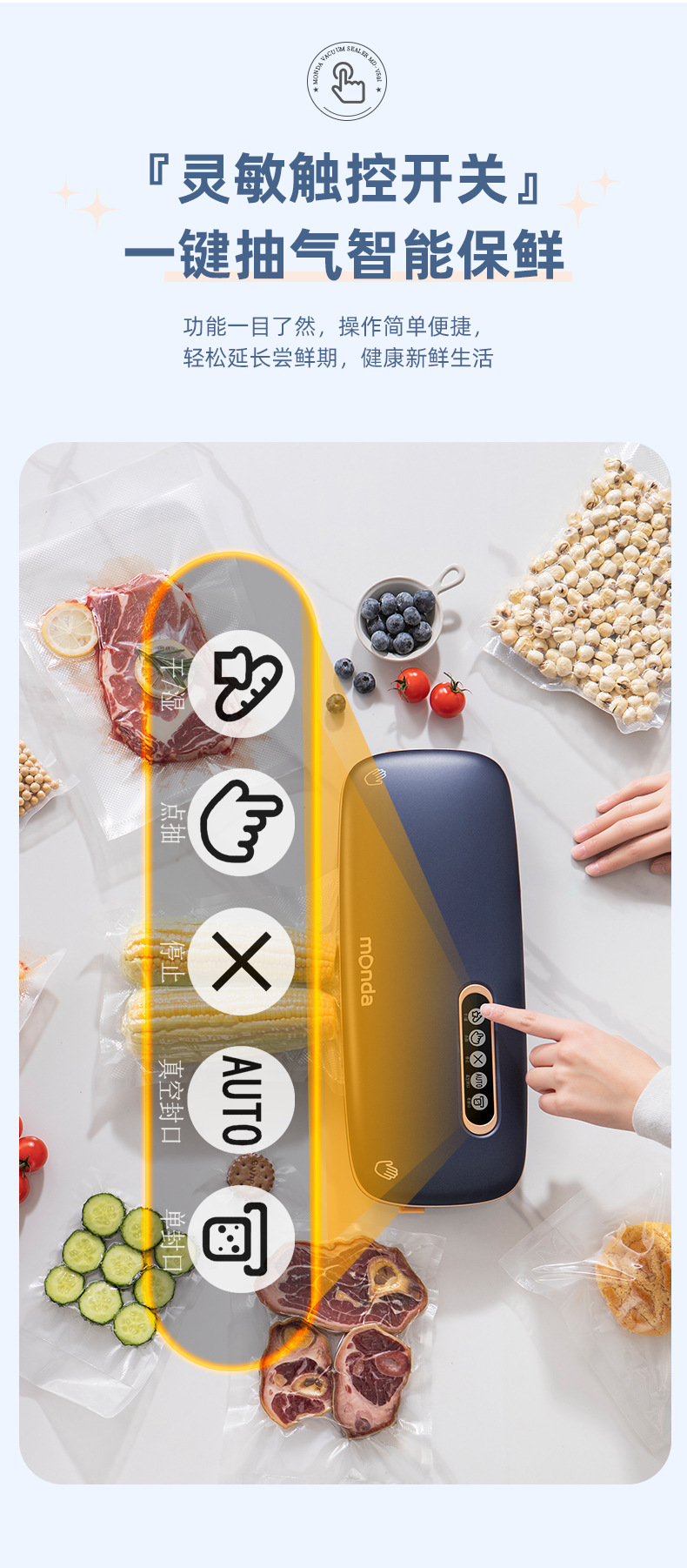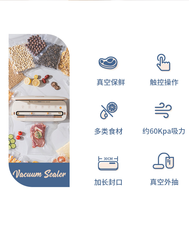 monda monda 진공 밀봉 기계 소형 가정용 신선 유지 플라스틱 밀봉 압축 진공 식품 포장 완전 자동