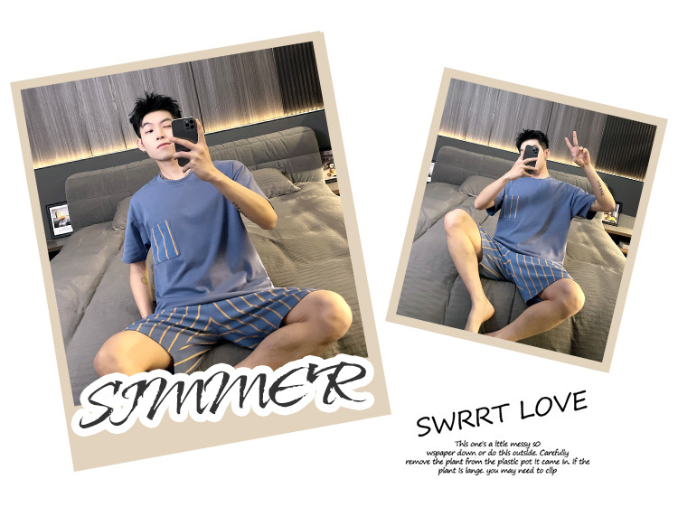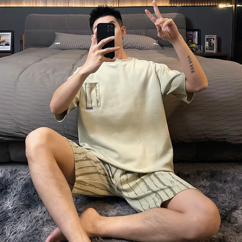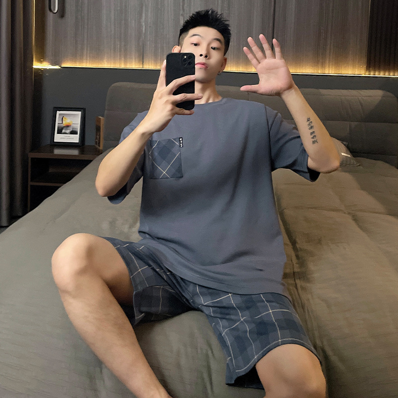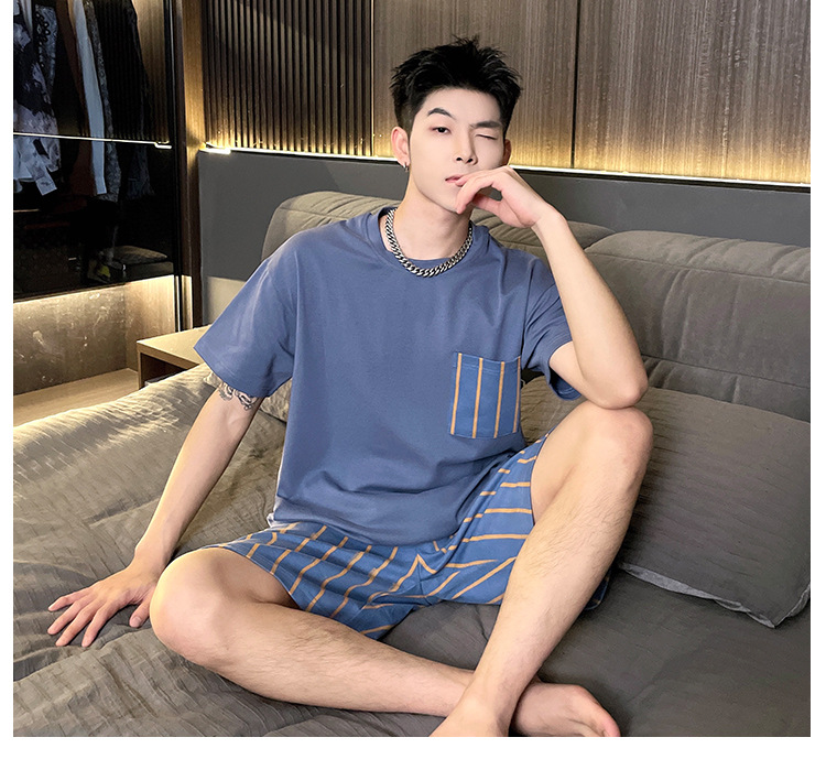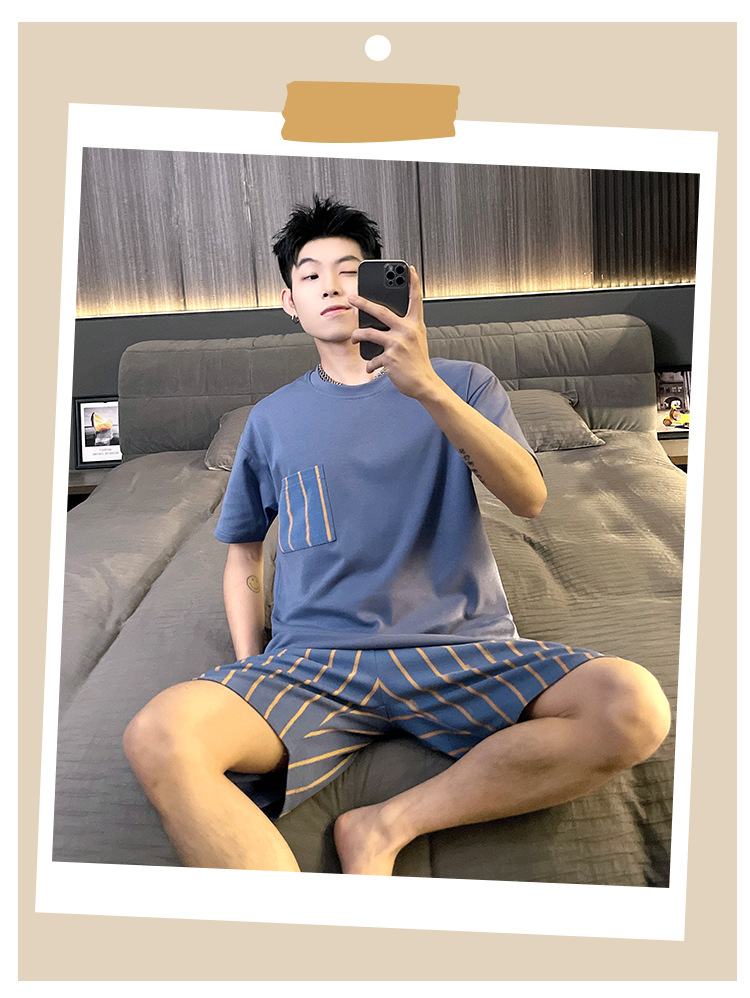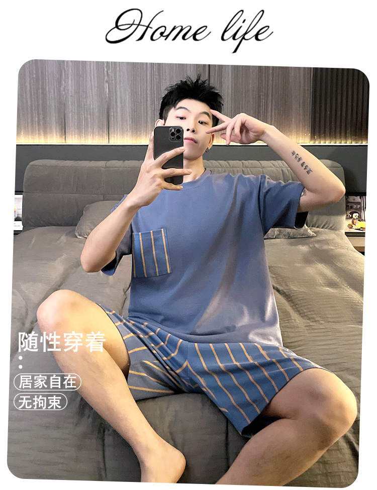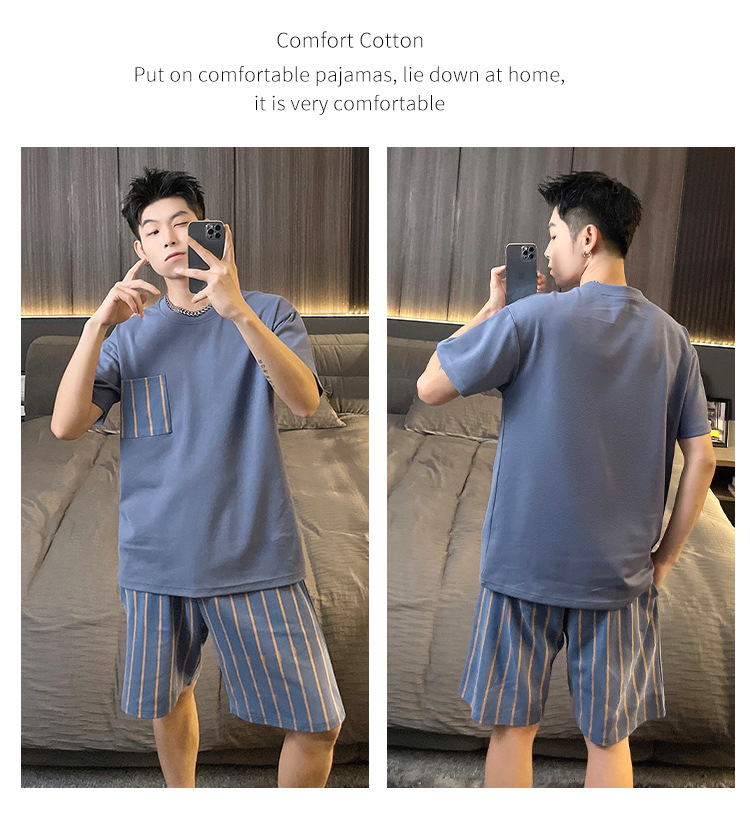 여름 남자 잠옷 고급 여름 코튼 반팔 반바지 플러스 사이즈 청소년 소년 캐주얼 홈웨어스토어 가기