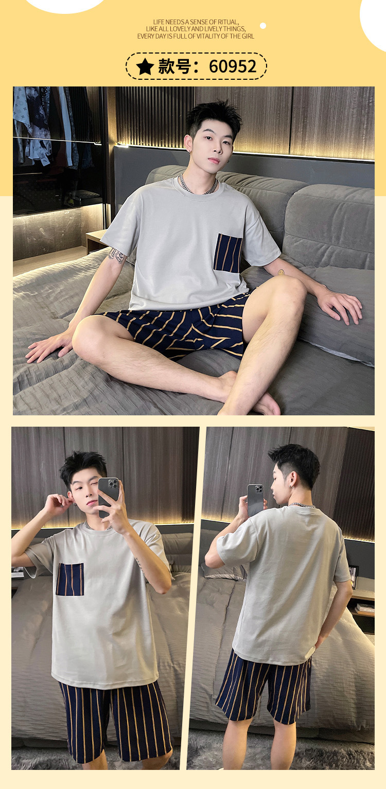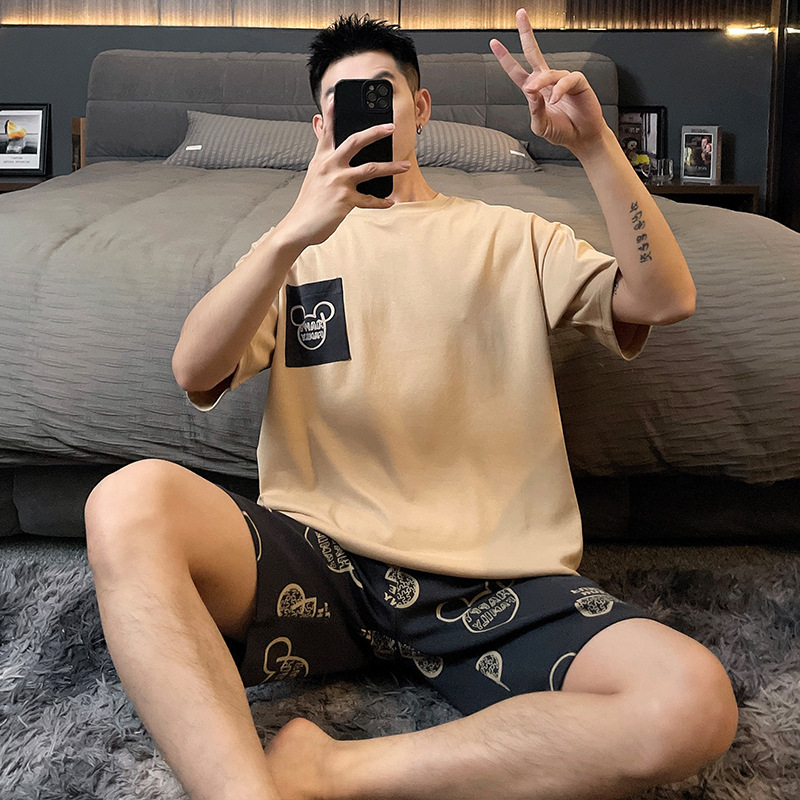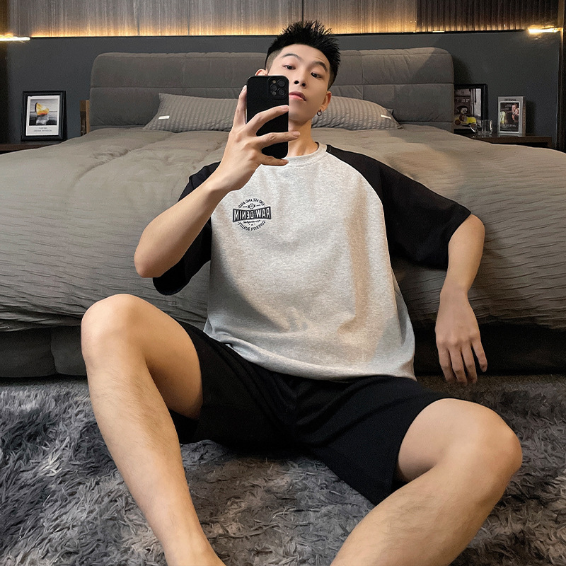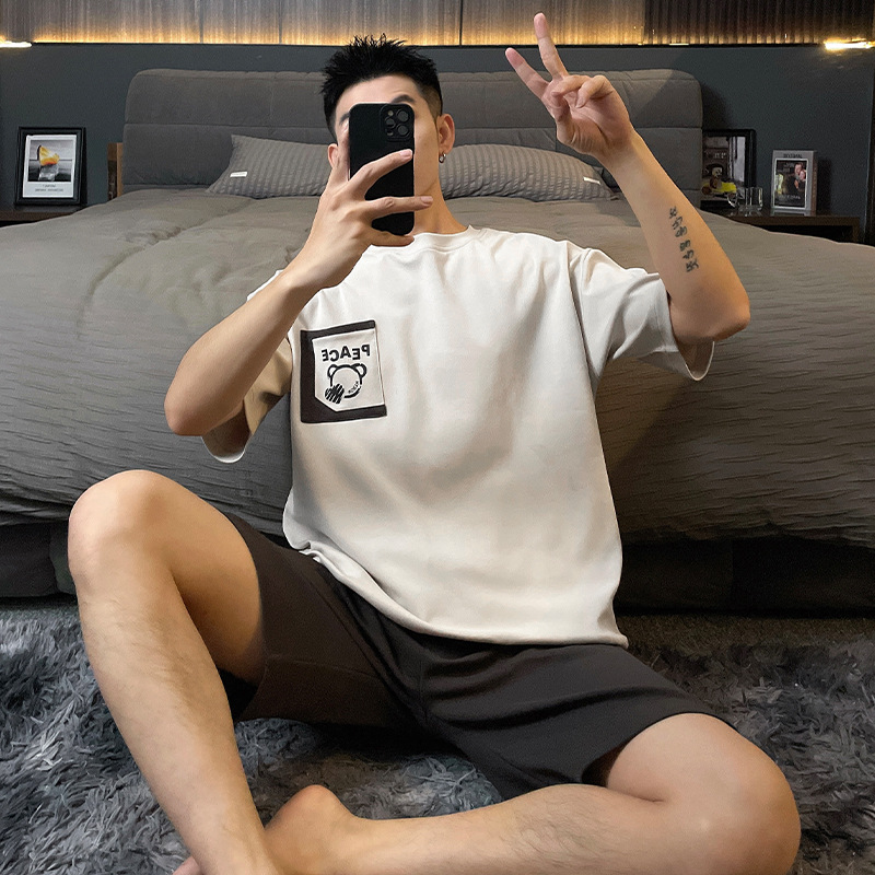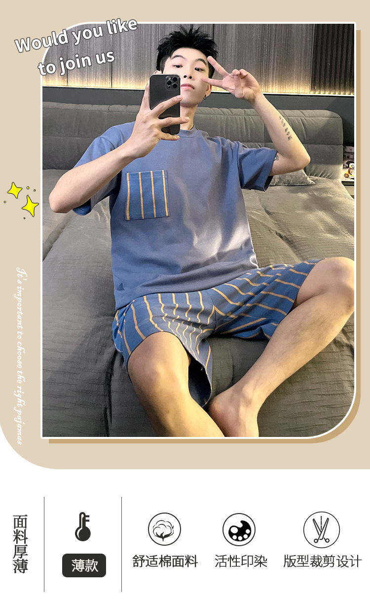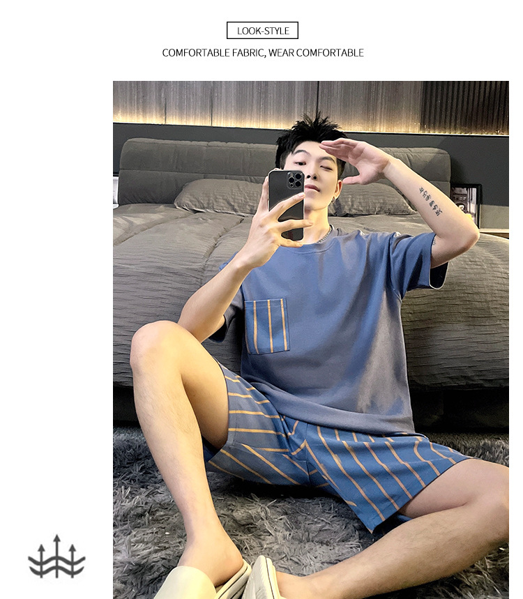 여름 남자 잠옷 고급 여름 코튼 반팔 반바지 플러스 사이즈 청소년 소년 캐주얼 홈웨어스토어 가기