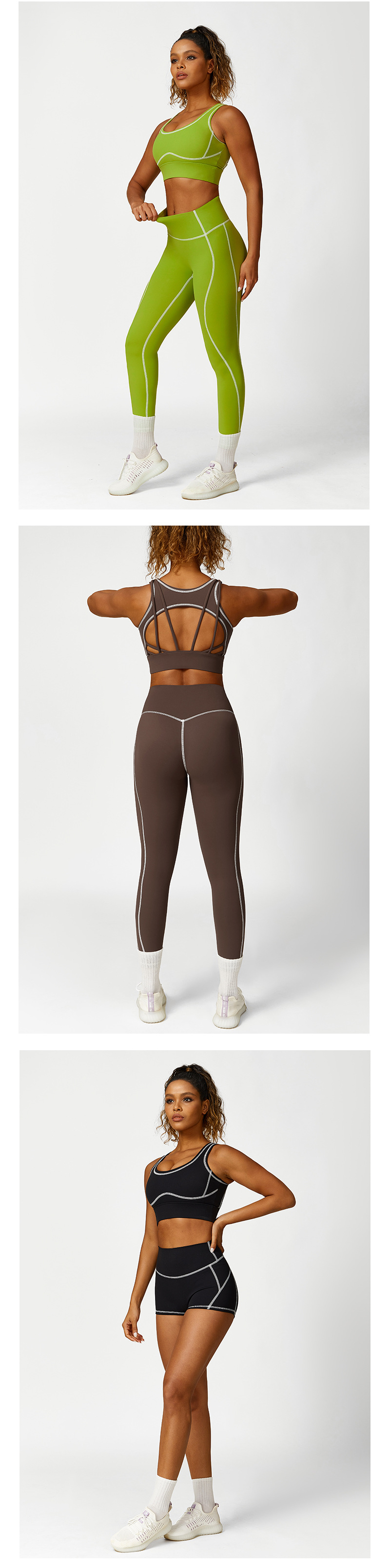 국경을 넘는 새로운 요가복 세트, 하이웨이스트 힙업, 편안한 핏, 신축성 있는 타이트 팬츠, 스포츠 백리스 브라