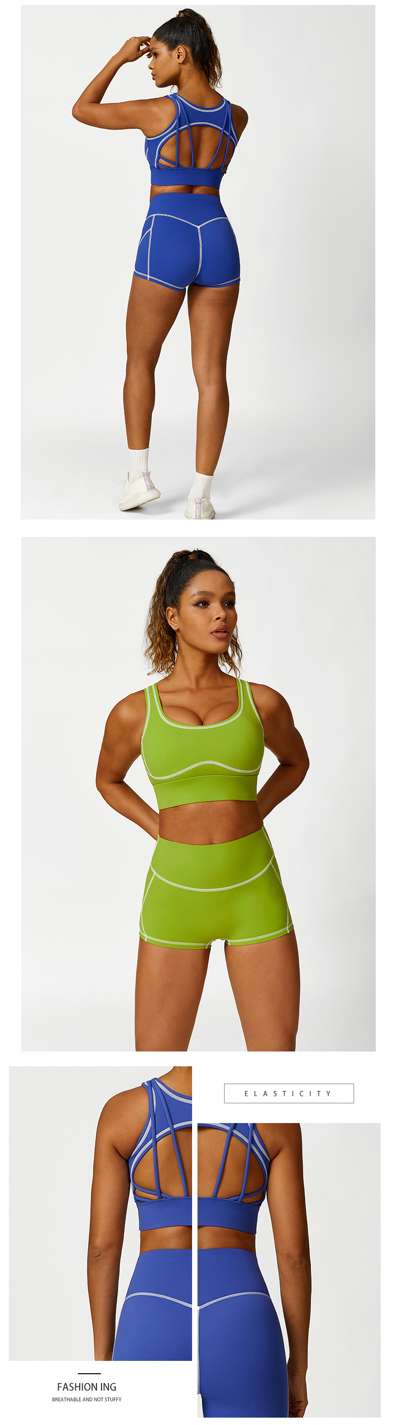 국경을 넘는 새로운 요가복 세트, 하이웨이스트 힙업, 편안한 핏, 신축성 있는 타이트 팬츠, 스포츠 백리스 브라스토어 가기