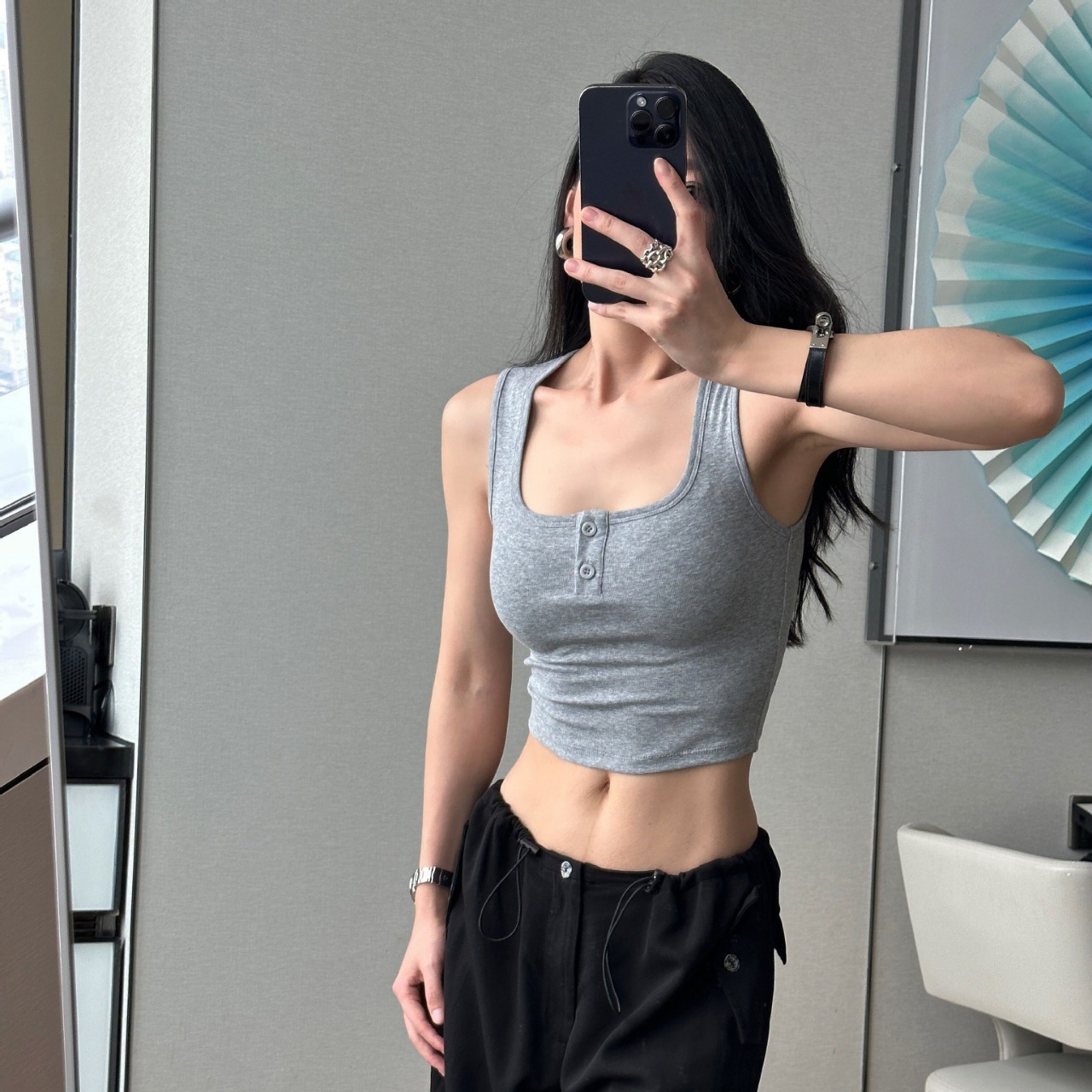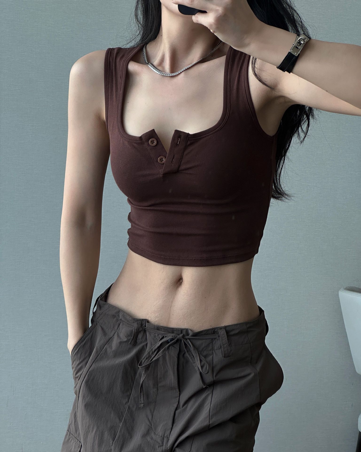 2024 새로운 온라인 핫 걸 스트리트 스타일 와이드 숄더 스트랩 조끼 가슴 패드 슬림핏 편안한 피겨 겉옷 탑스토어 가기
